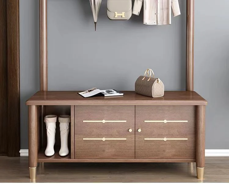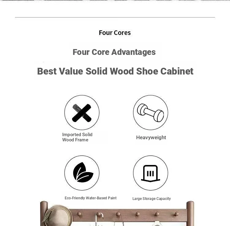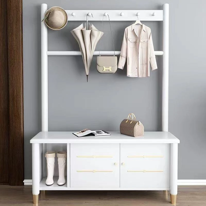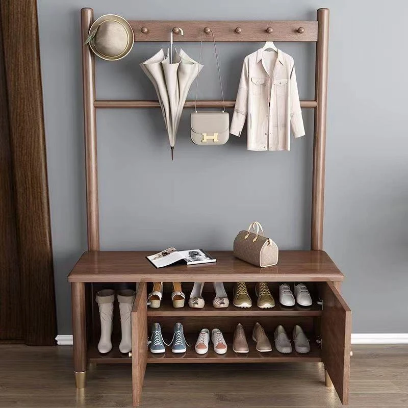 Solid Wood Shoe Cabinet and Coat Rack Combo with Bench - Stylish Entryway Shoe Storage Solution with Double Doors for Home Use