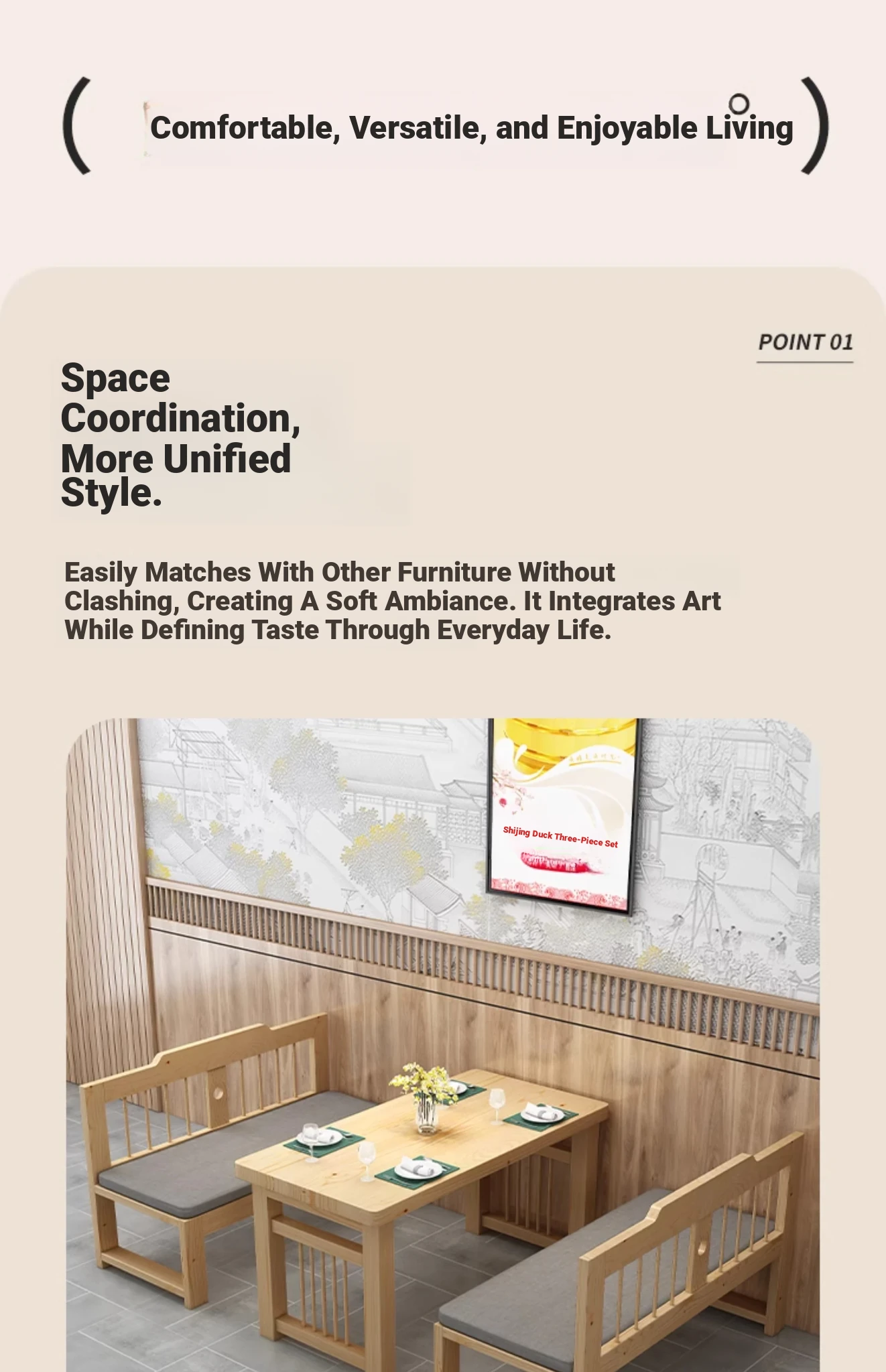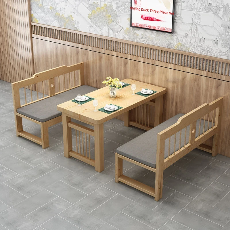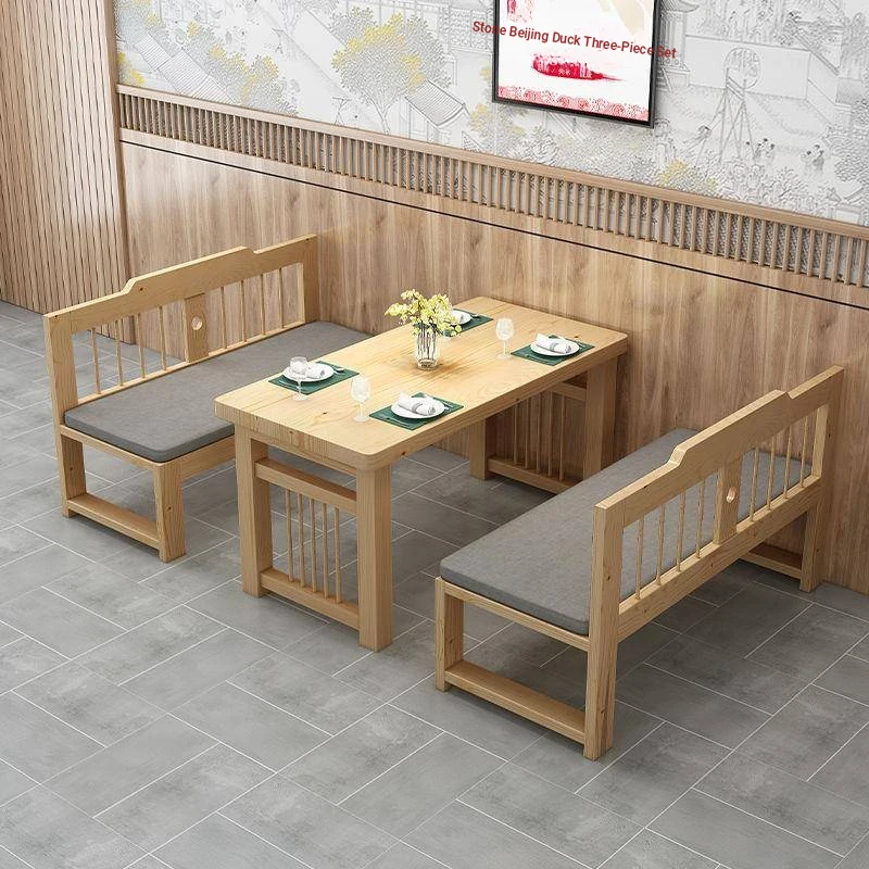 Stylish 7K1226 Solid Wood Sofa Set - Modern Minimalist 3-Piece Dining Chair and Table Combo with Backrest, Perfect for Small Spaces
