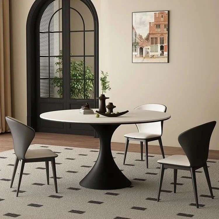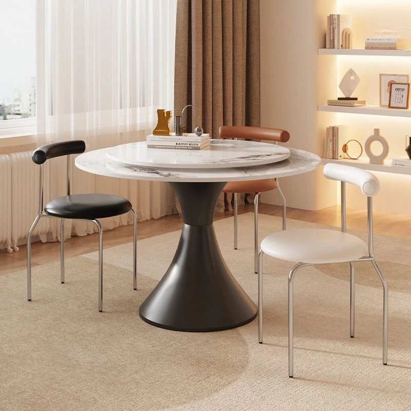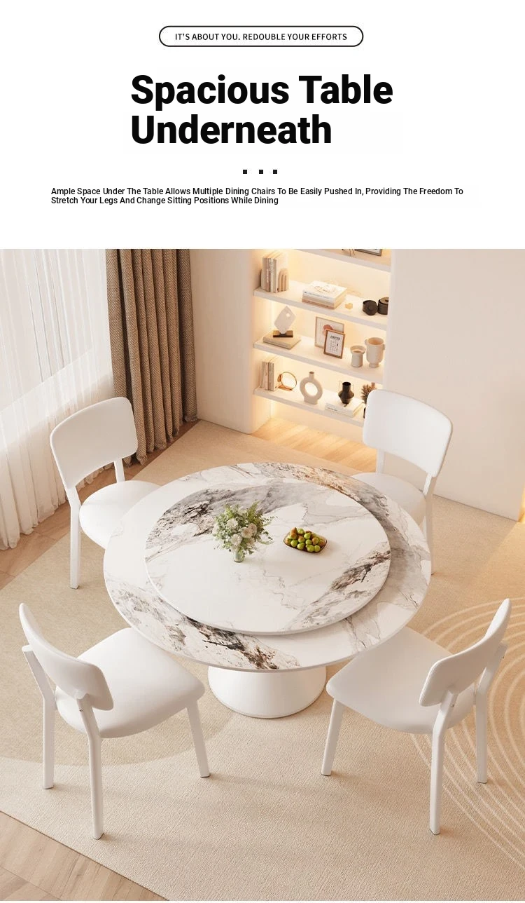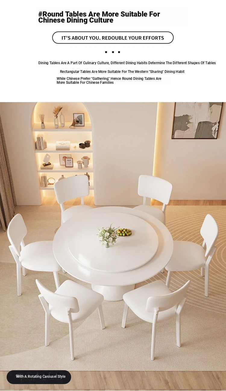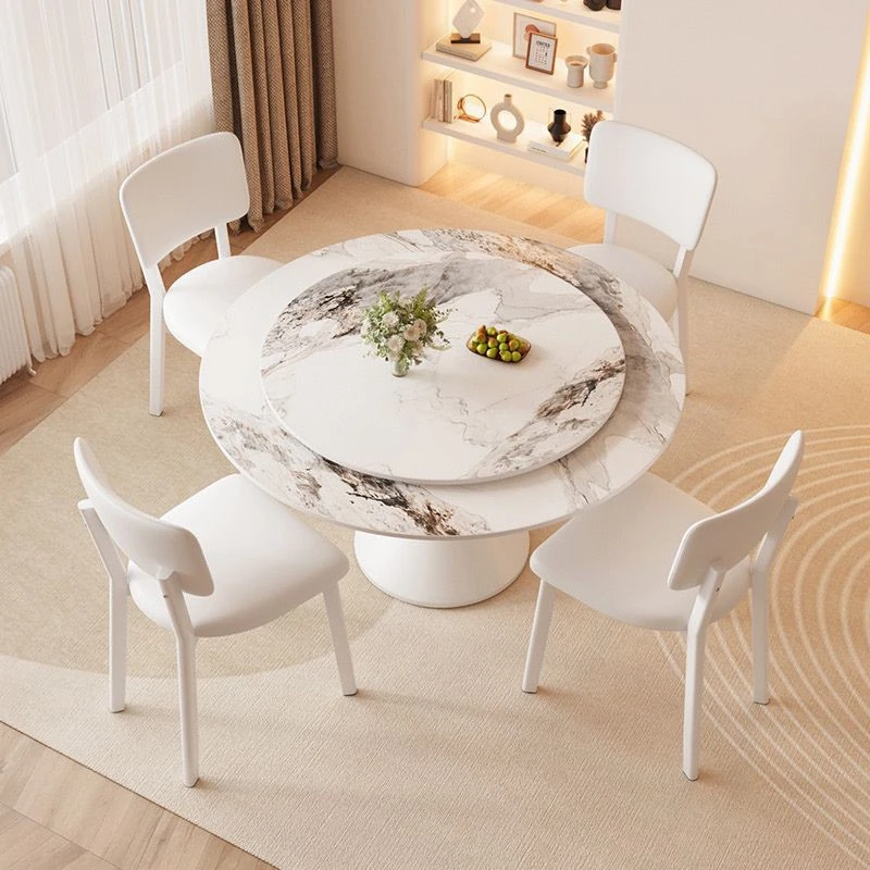 Trendy French Cream Style Round Dining Table with Rotating Tray - Perfect for Small Spaces, Stylish White Design for Your Home!
