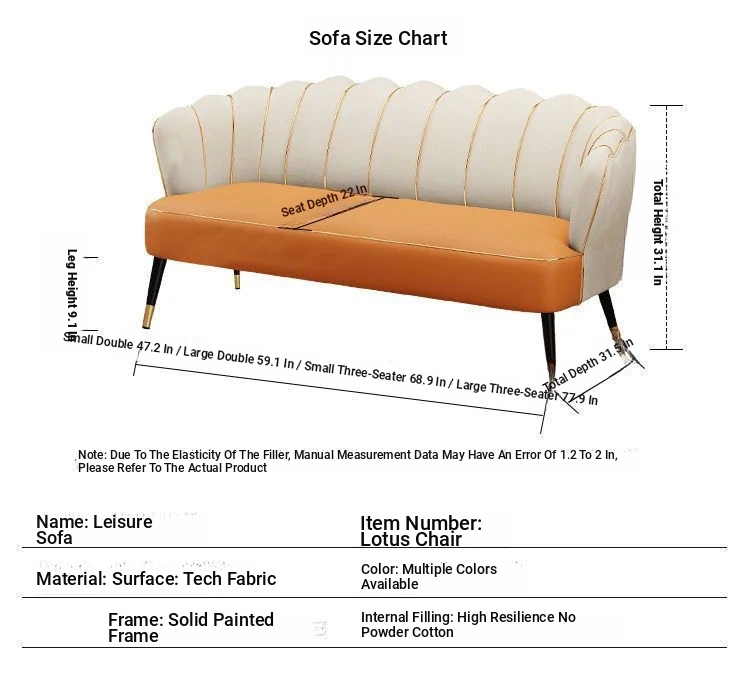 Trendy Light Luxury Lotus Sofa - Compact Design for Small Spaces, Perfect for Apartments, Beauty Salons, and Fashion Stores - Ideal Two-Person Couch for Stylish Living Rooms