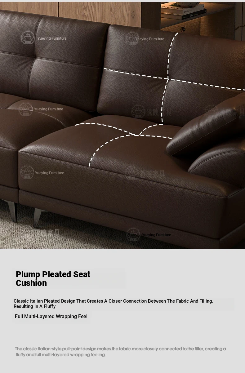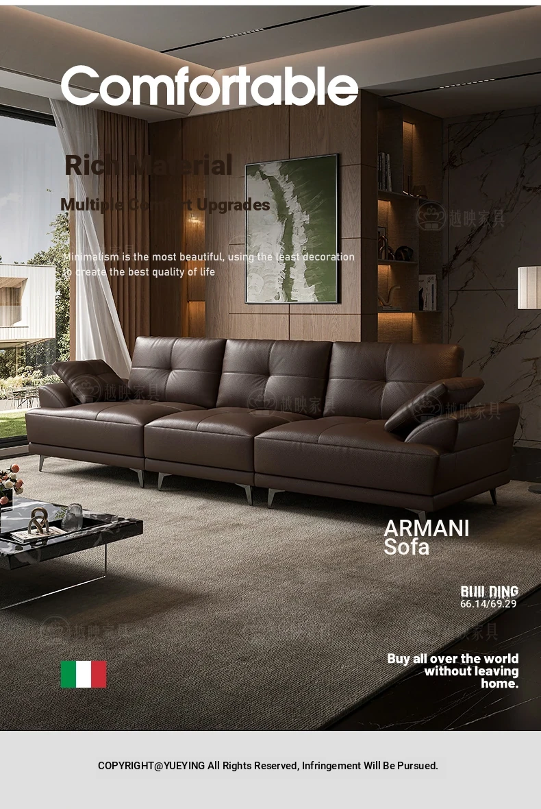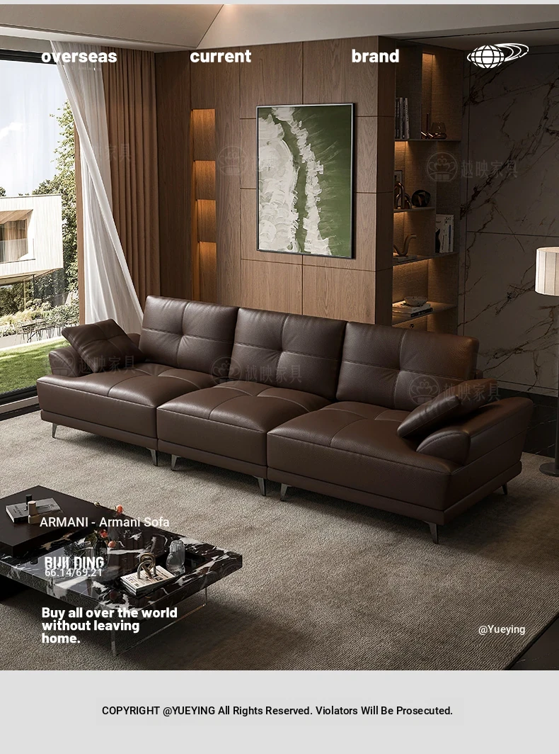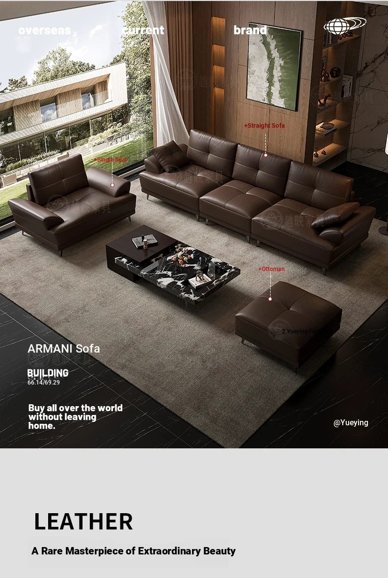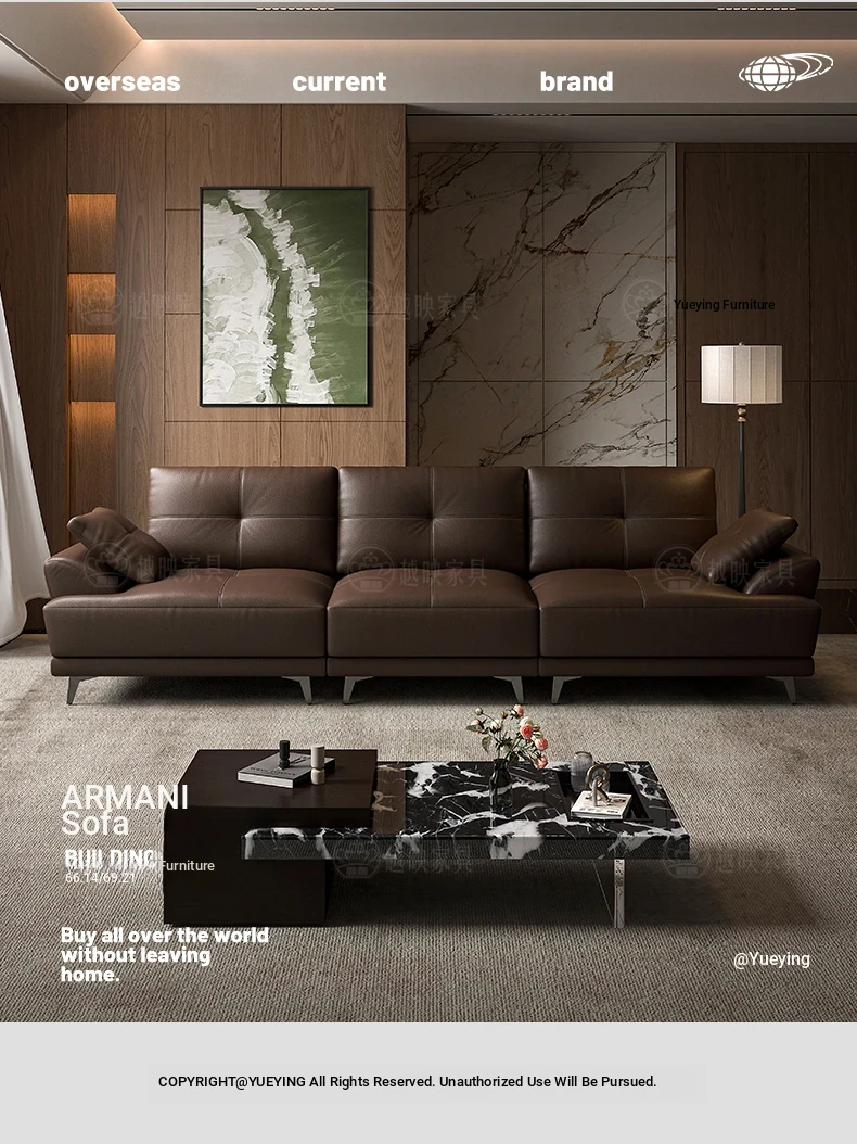 Yueying Armani Sofa - Premium Full Grain Leather Minimalist Design for Small Living Rooms - High-End Directly Cut Top Layer Cowhide and Full Blue Leather