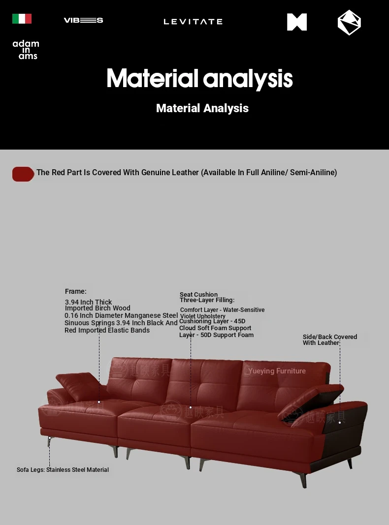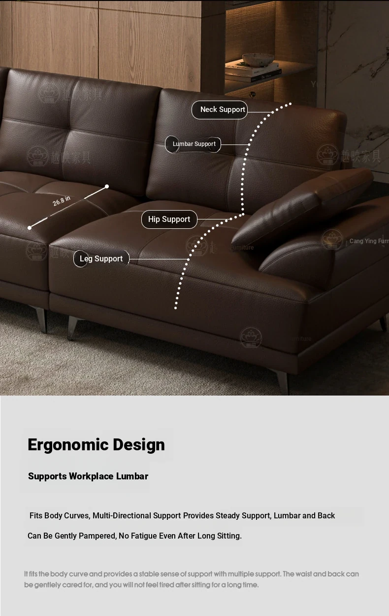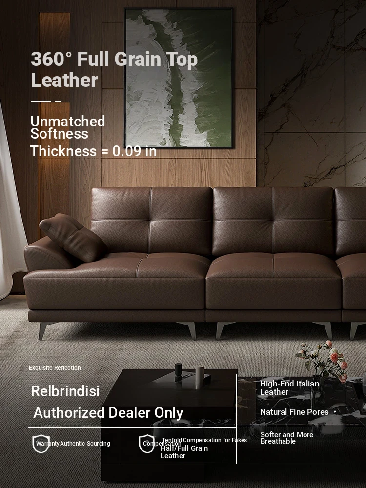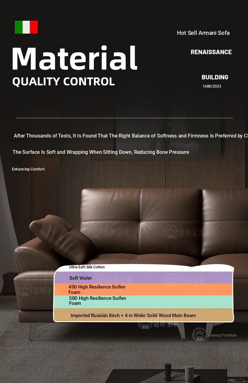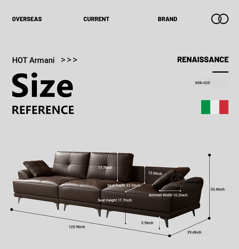 Yueying Armani Sofa - Premium Full Grain Leather Minimalist Design for Small Living Rooms - High-End Directly Cut Top Layer Cowhide and Full Blue Leather
