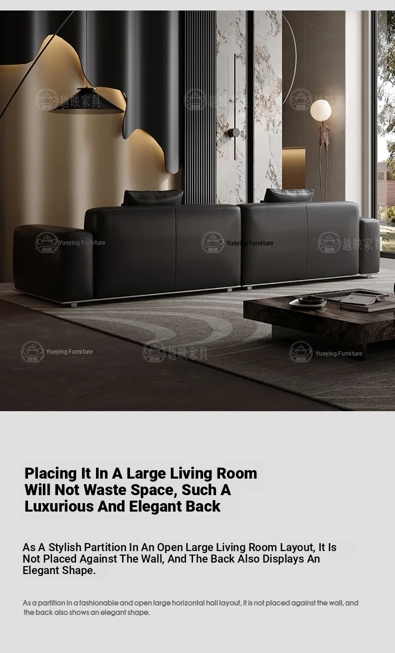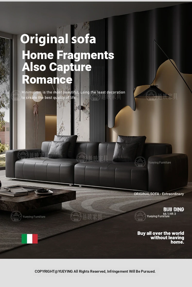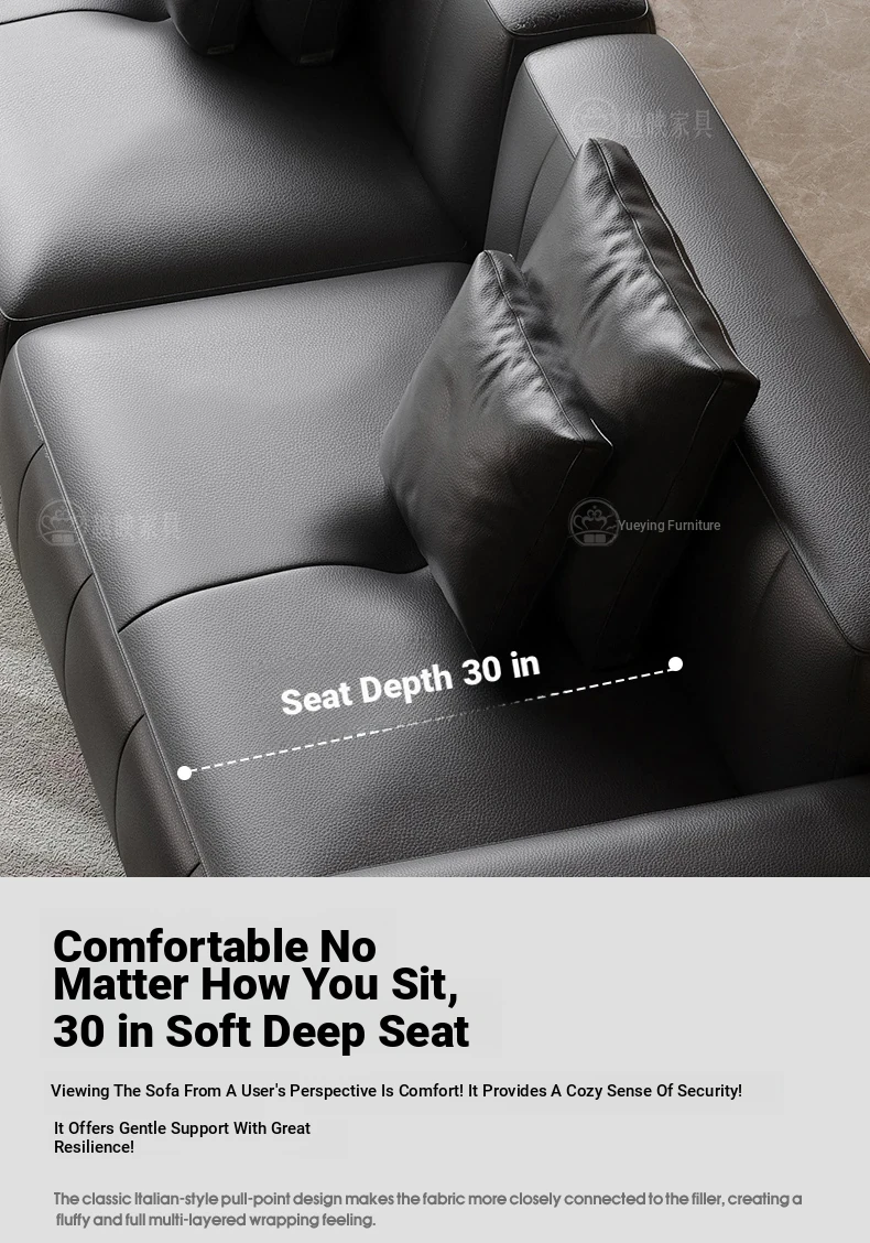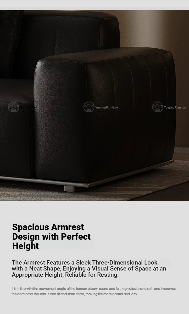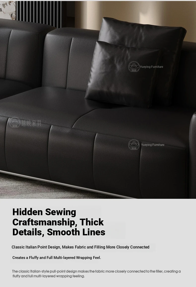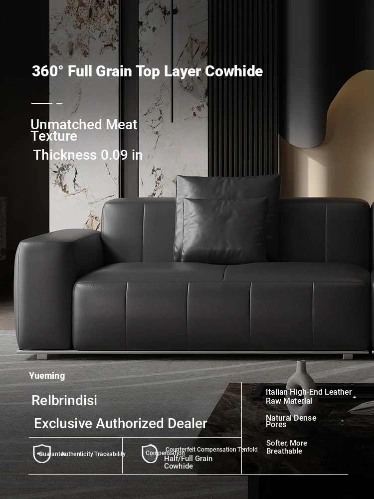 Yueying Extraordinary Genuine Leather Sofa - 2025 Italian New Model for Small Living Rooms, Minimalist Design in Premium Black Full Grain Leather