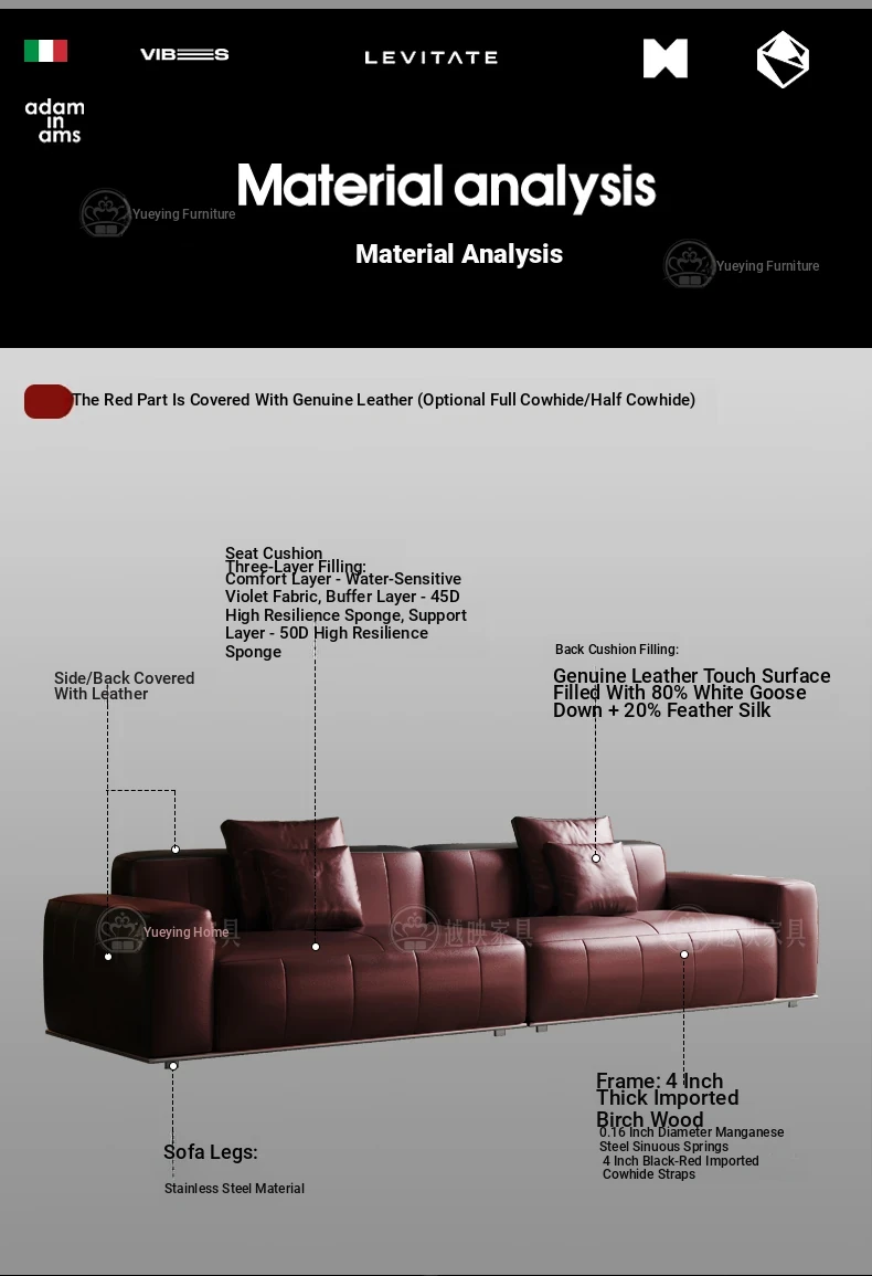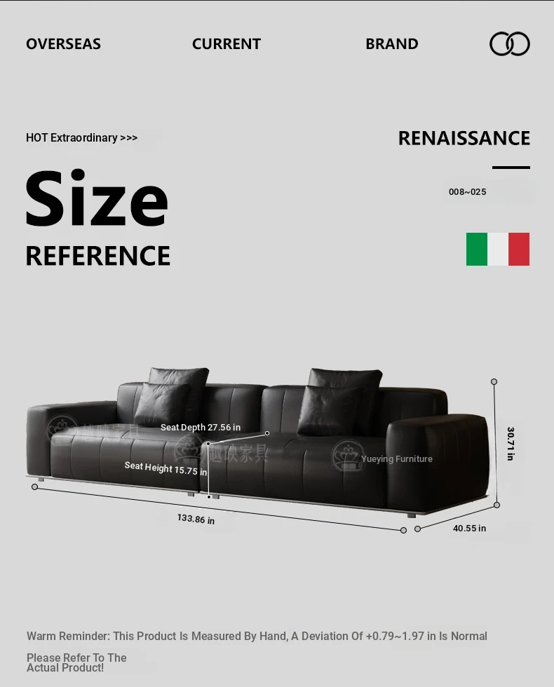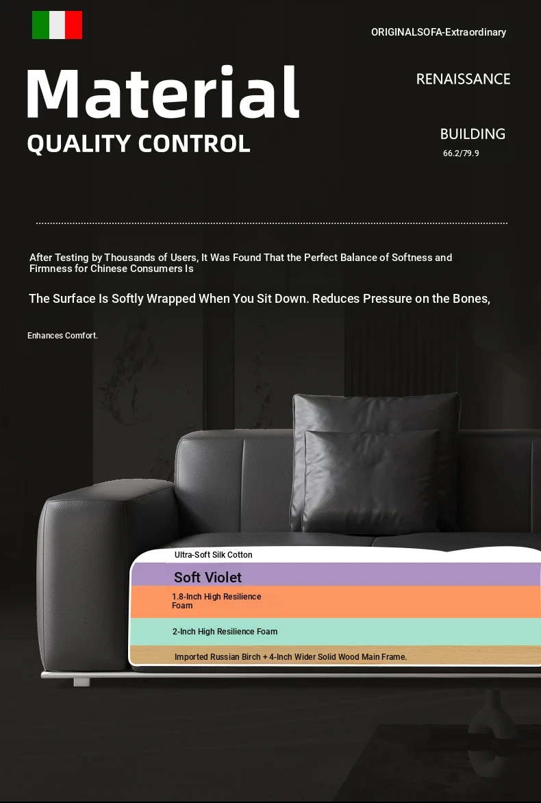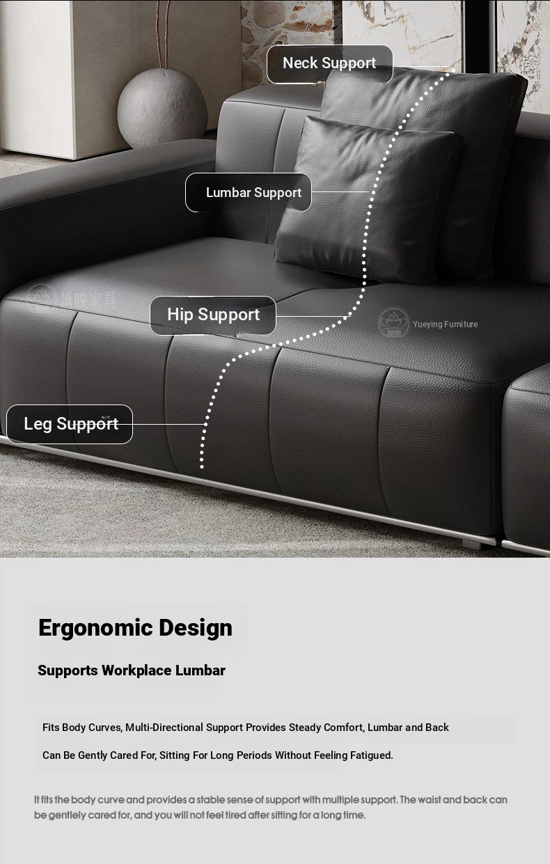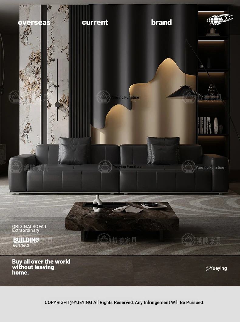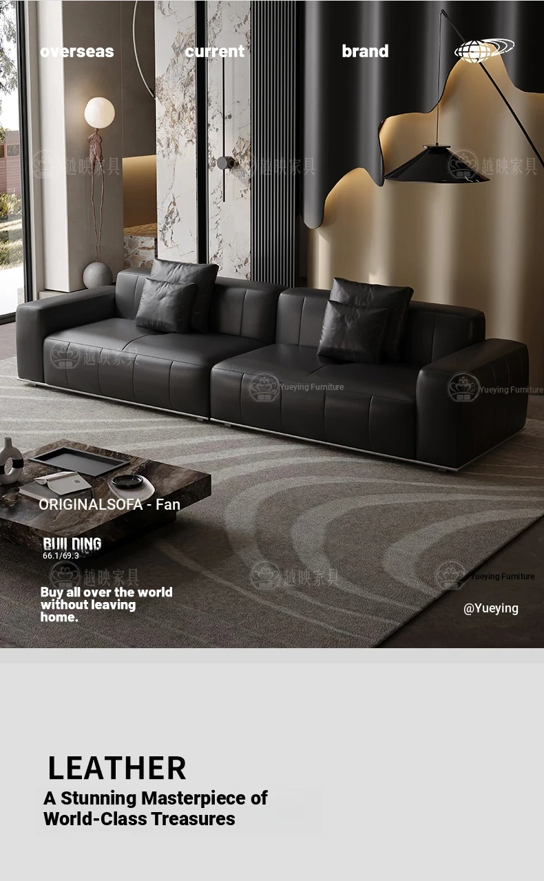 Yueying Extraordinary Genuine Leather Sofa - 2025 Italian New Model for Small Living Rooms, Minimalist Design in Premium Black Full Grain Leather