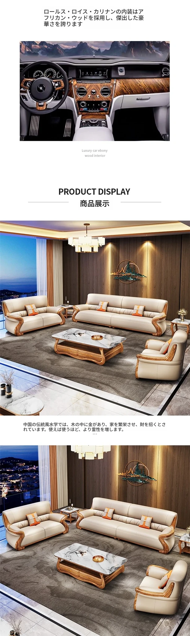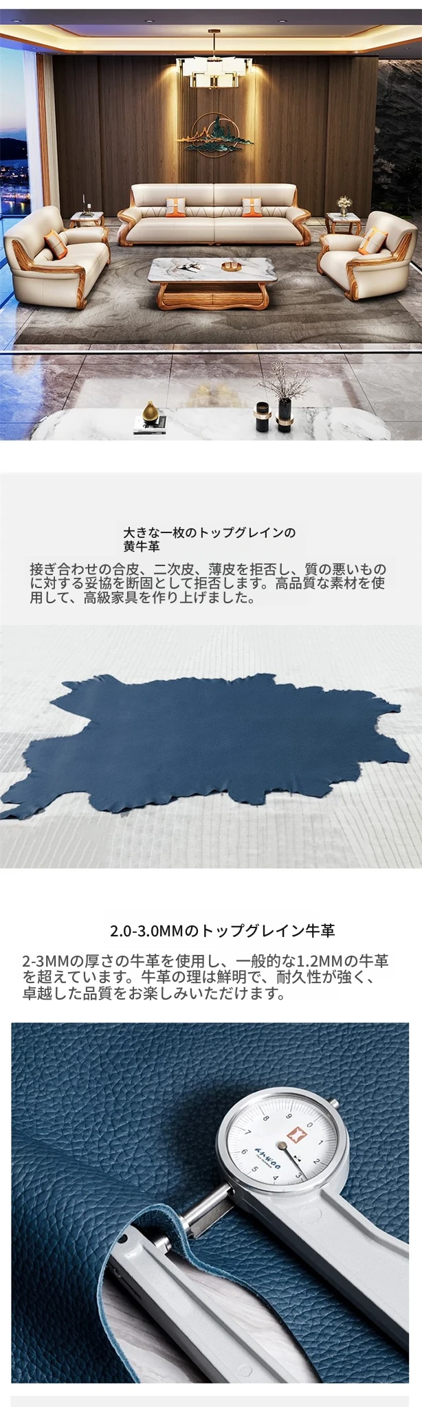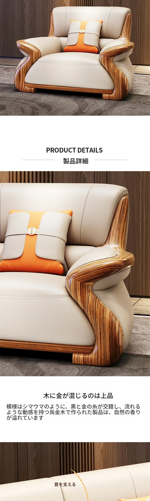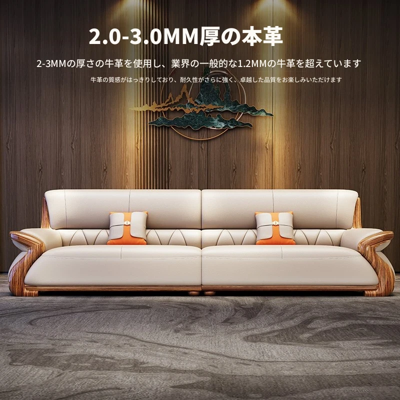 大人気のウッド調ウーキン材使用!新中式デザインの本革ソファ 2024年新作 モダンミニマリスト スタイリッシュな大小戸型リビングや別荘に最適!