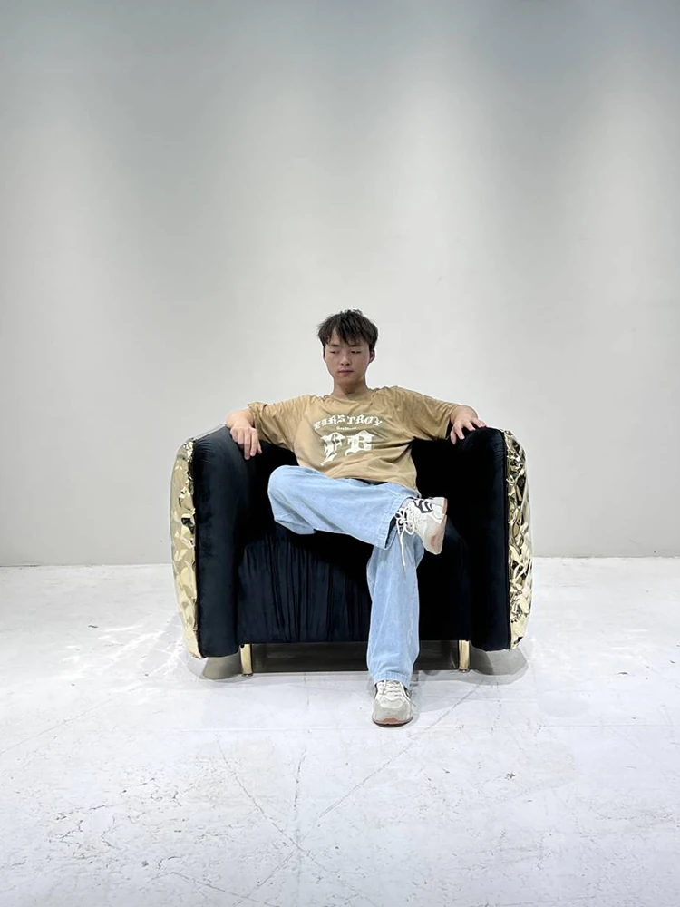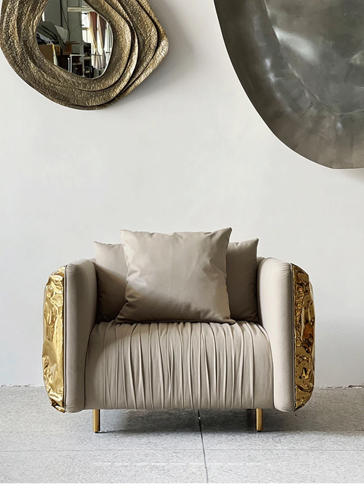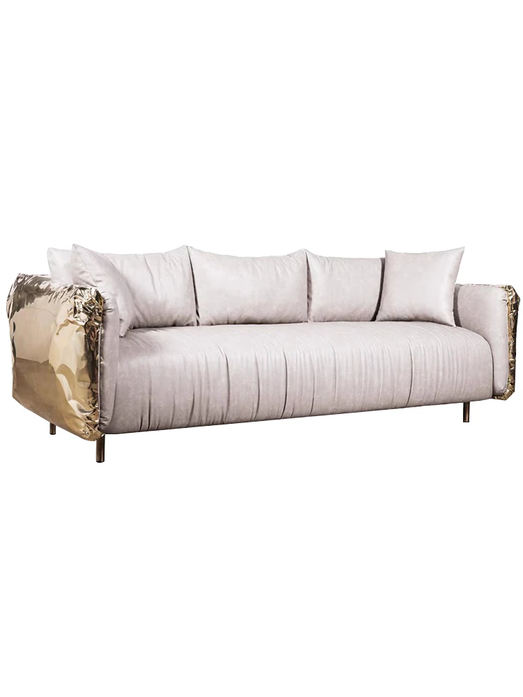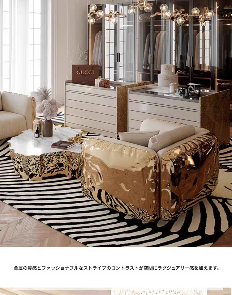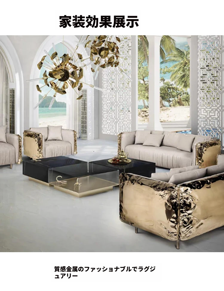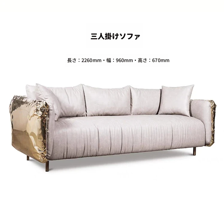 2024年新作!高級感溢れるインポートベルベットとステンレス製デザインのデザイナー真皮ソファ。リビングや接待エリアにぴったりな、ラグジュアリーな一品です。