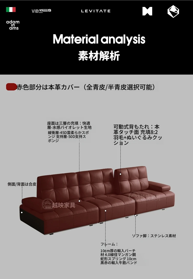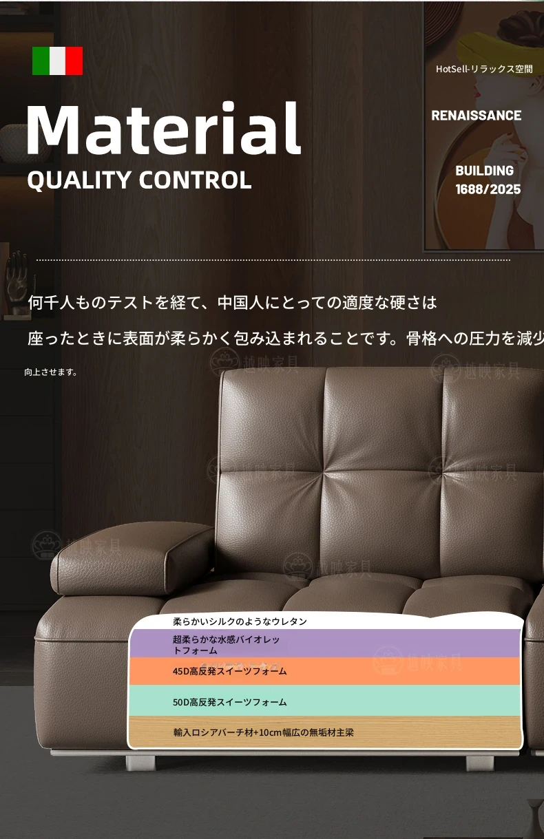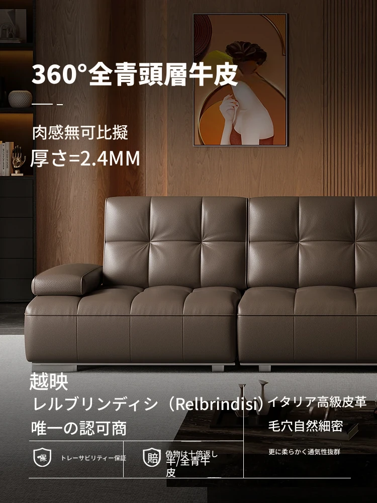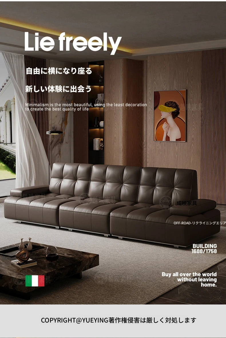 越映躺域イタリアンミニマリズム本革ソファ - プレミアム牛革使用、2025年新作!小さなリビングに最適な直線デザインで、スタイリッシュな空間を演出します。おしゃれで快適なひとときをお楽しみください。