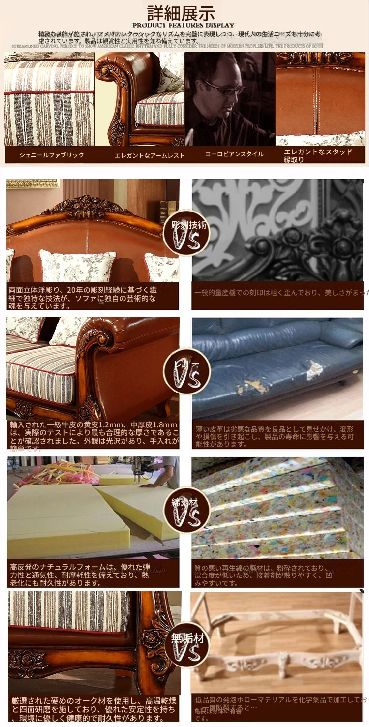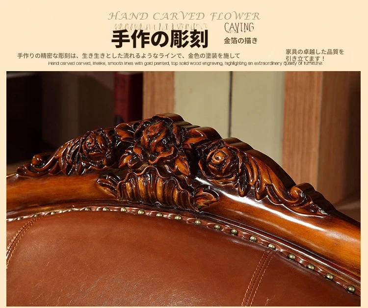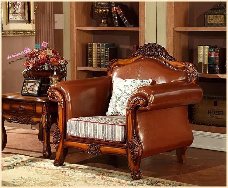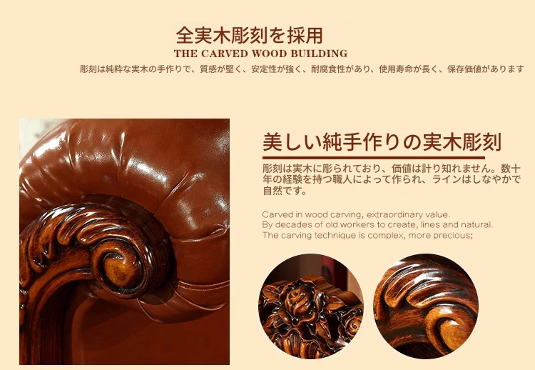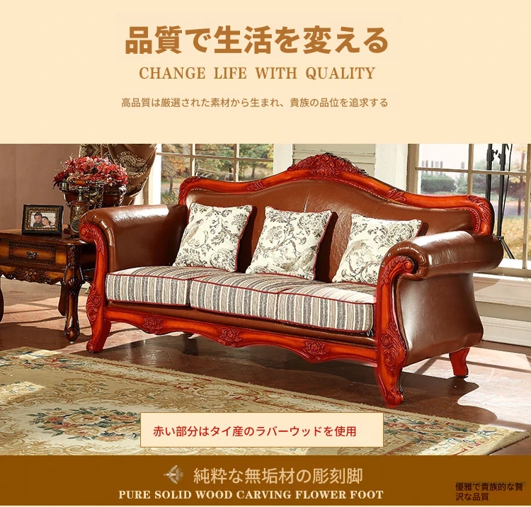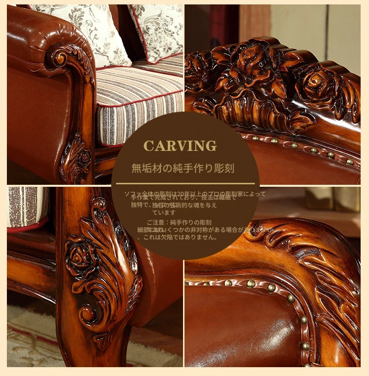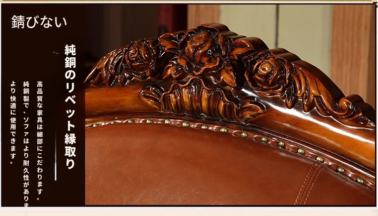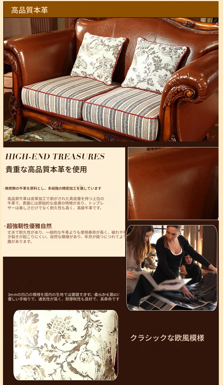 アメリカンカントリー風 本革ソファ 全実木製 小型オフィスやリビングに最適な彫刻デザイン 新品123コンビネーションで、レトロな雰囲気を演出!