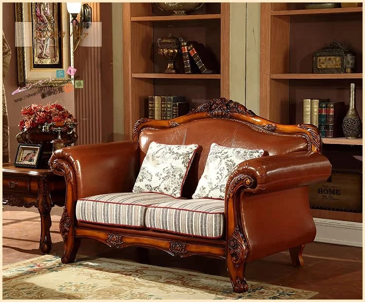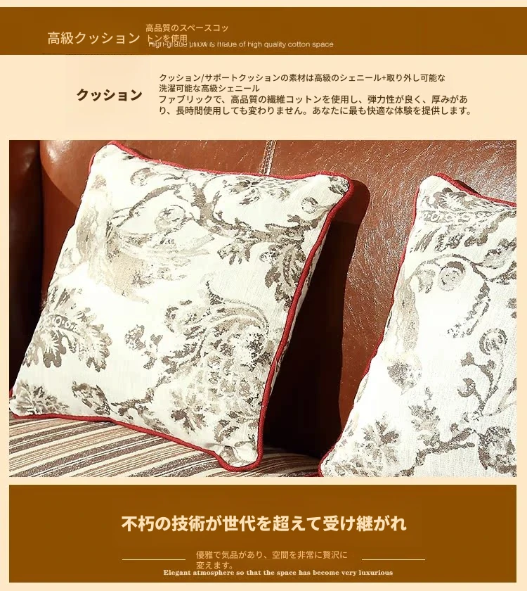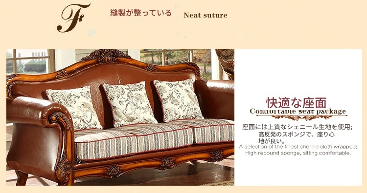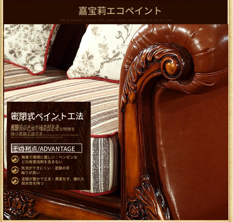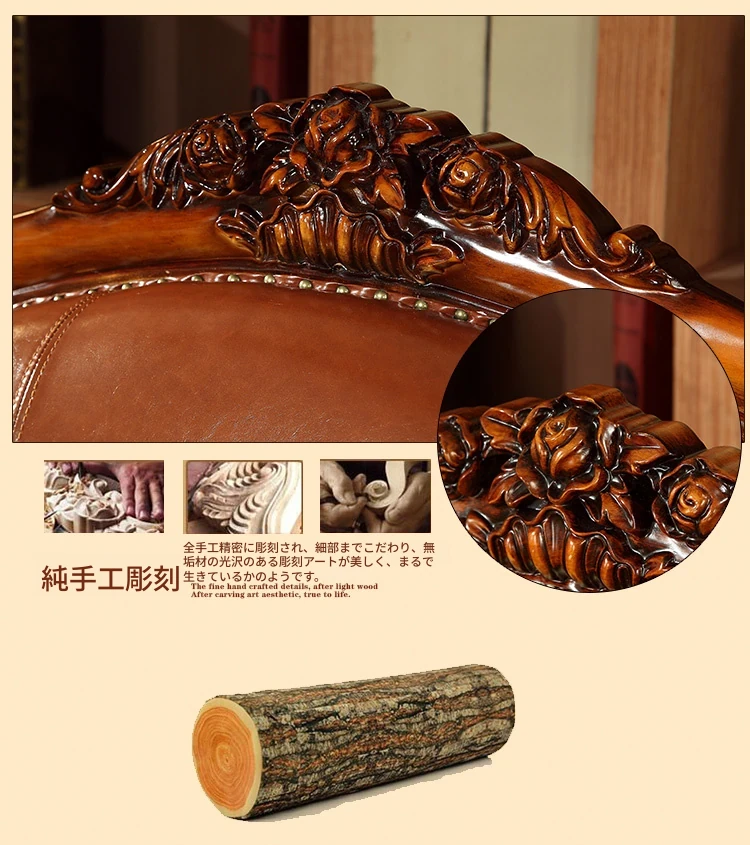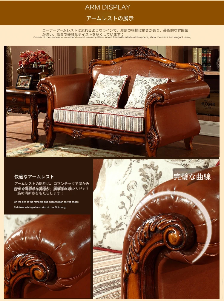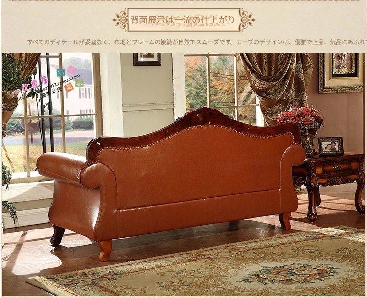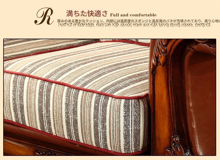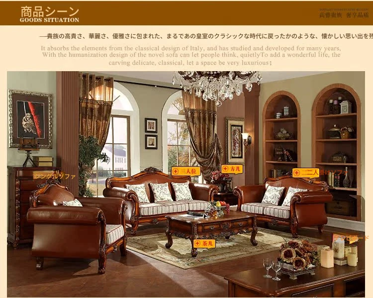 アメリカンカントリー風 本革ソファ 全実木製 小型オフィスやリビングに最適な彫刻デザイン 新品123コンビネーションで、レトロな雰囲気を演出!
