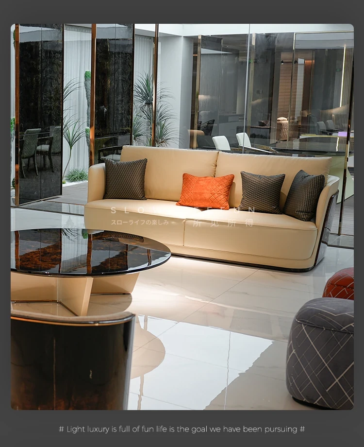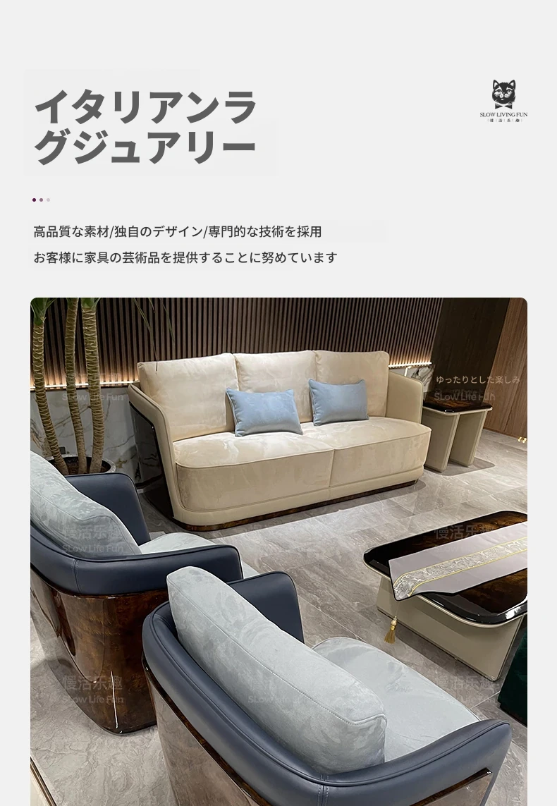 ベンテイリ豪華リビングソファ|イタリアンスタイルのラグジュアリー本革ソファ|ヴィラにぴったりの多人数用イタリア製布ソファセット【BL】
