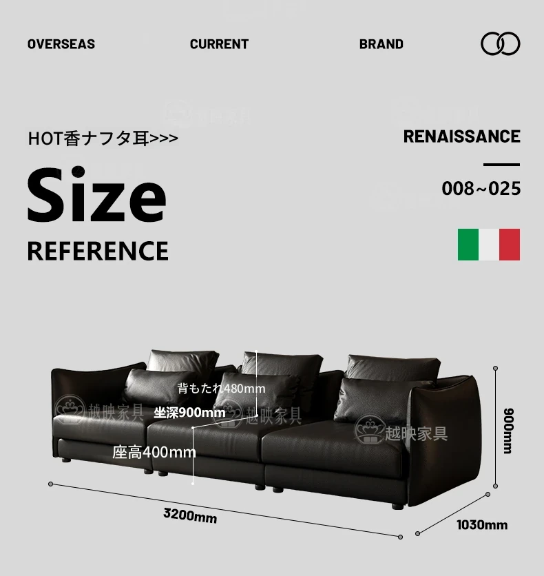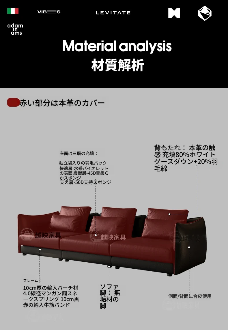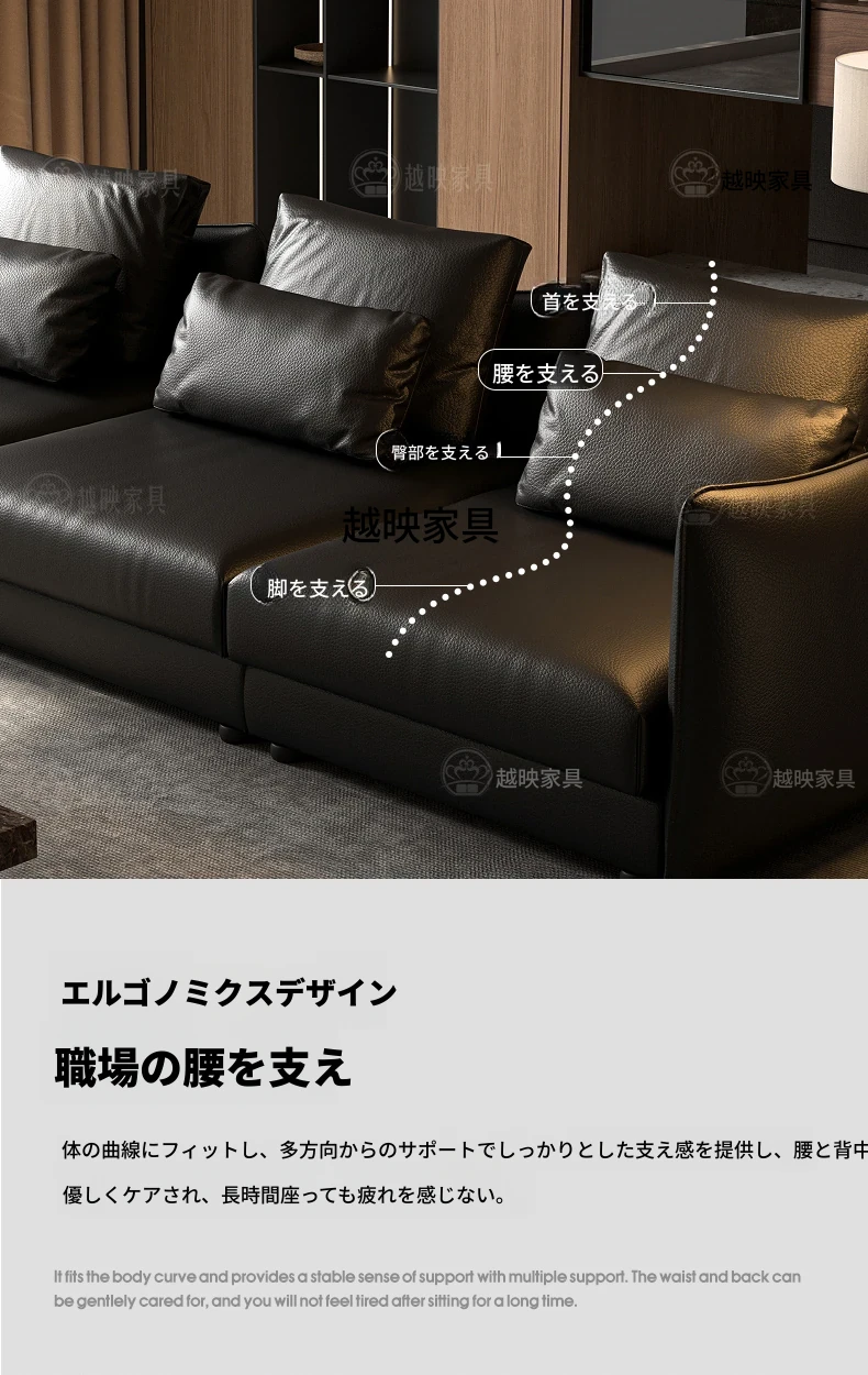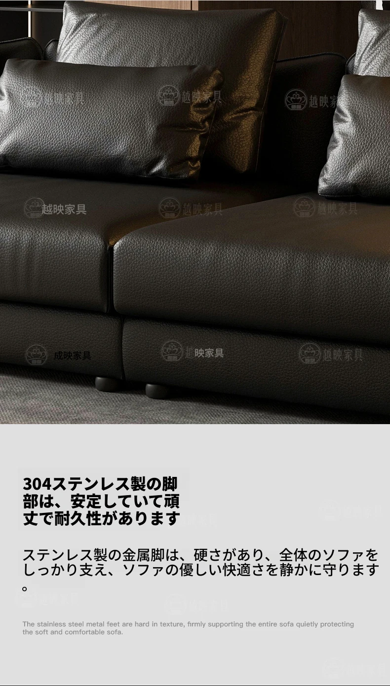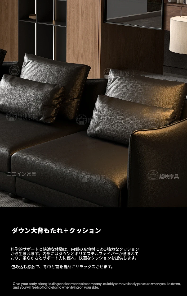 エレガントなチャンネル本革ソファー - イタリアンスタイルのリビングルーム用、輸入全青皮、大平層ヴィラにぴったりな現代的なシンプルデザイン。おしゃれで快適な空間を実現!