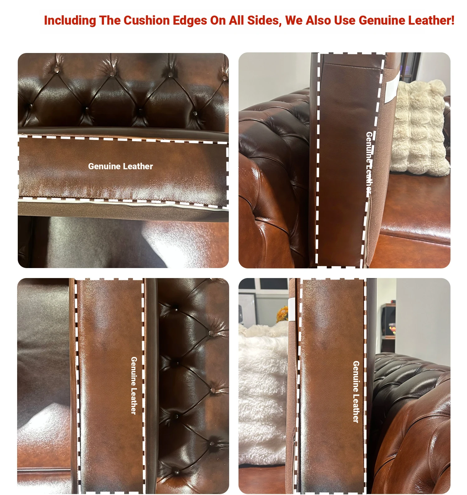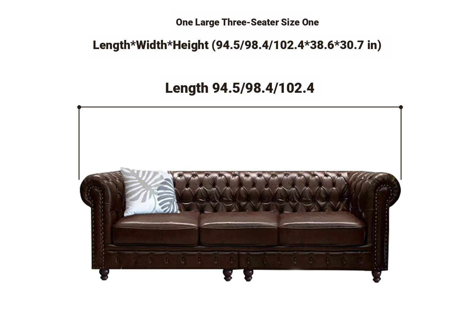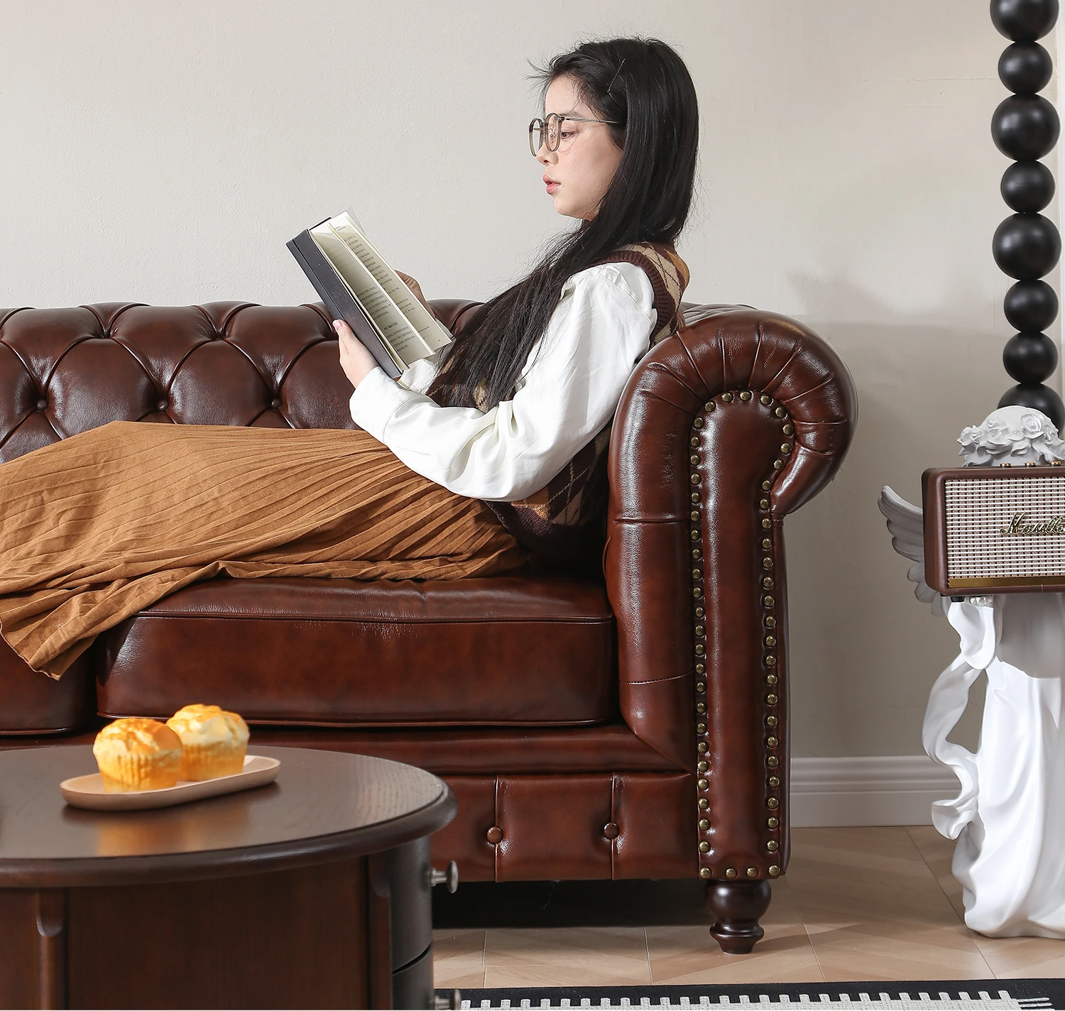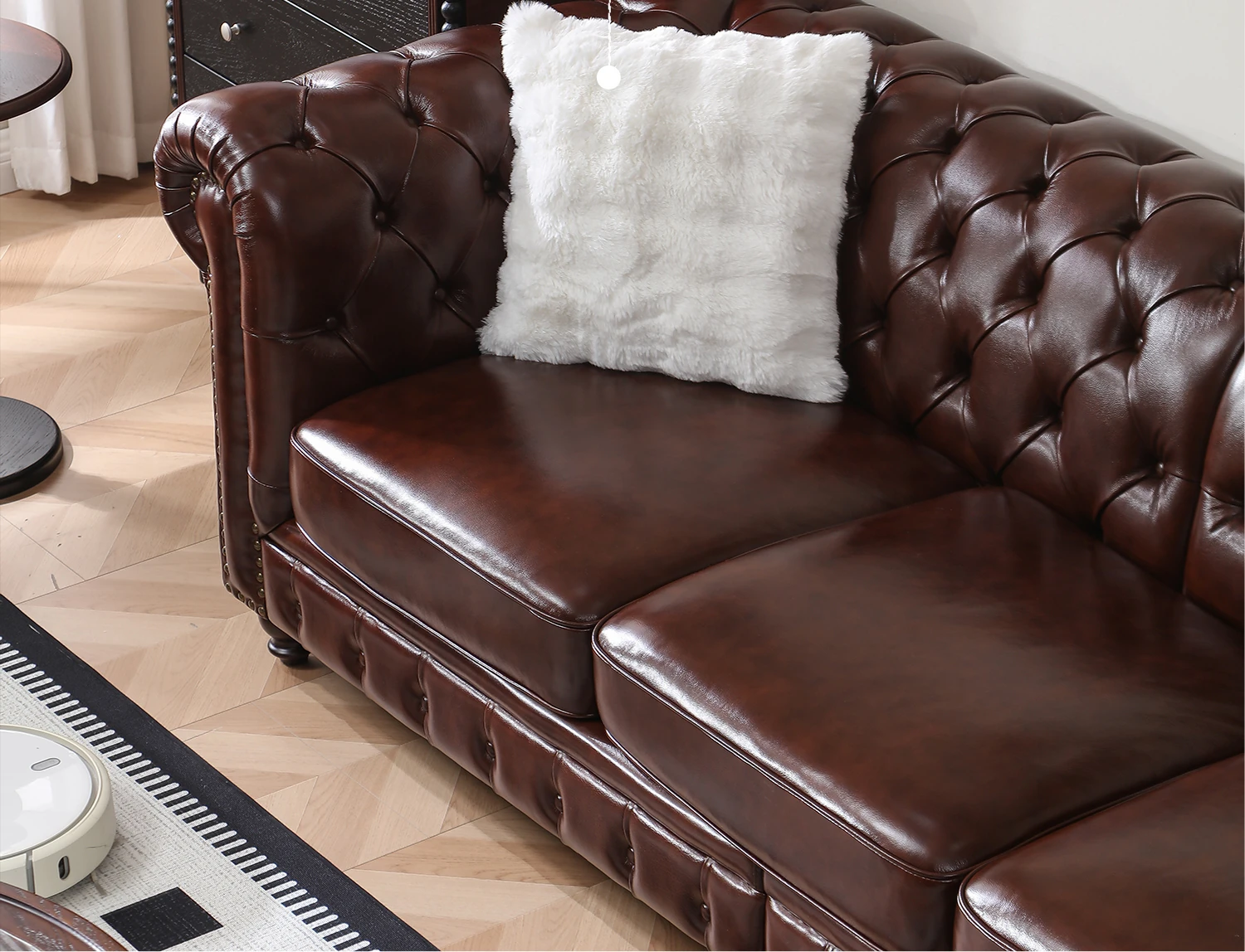 Classic American Genuine Leather Three-Seat Sofa Set - Premium Top-Grain Waxed Leather, Timeless Vintage Design for Luxury Living Room Furniture