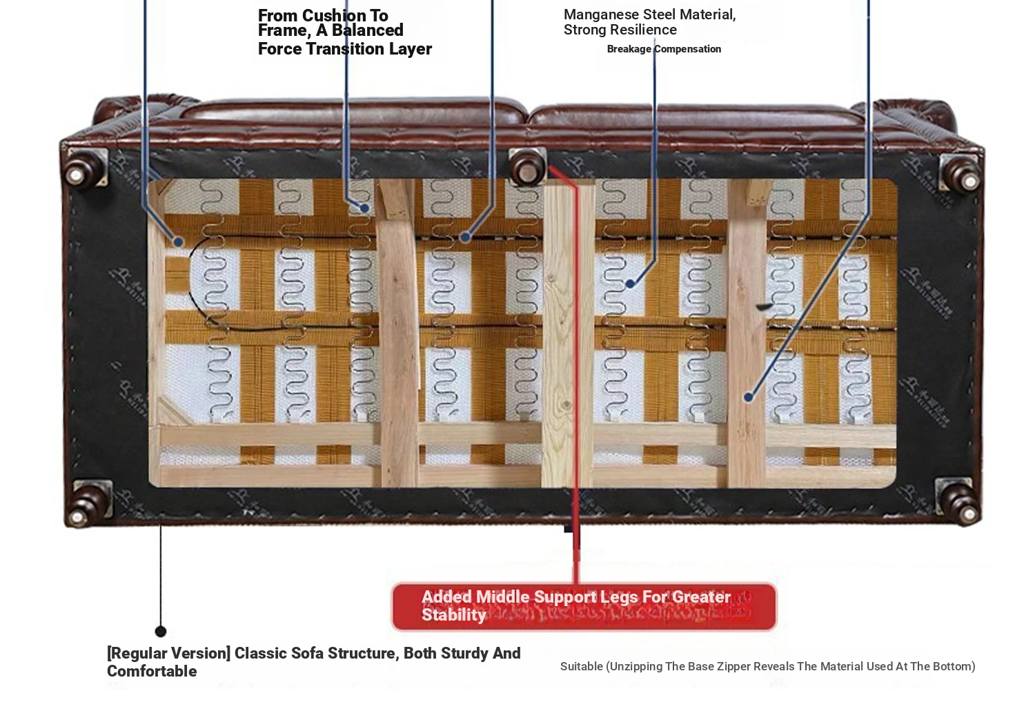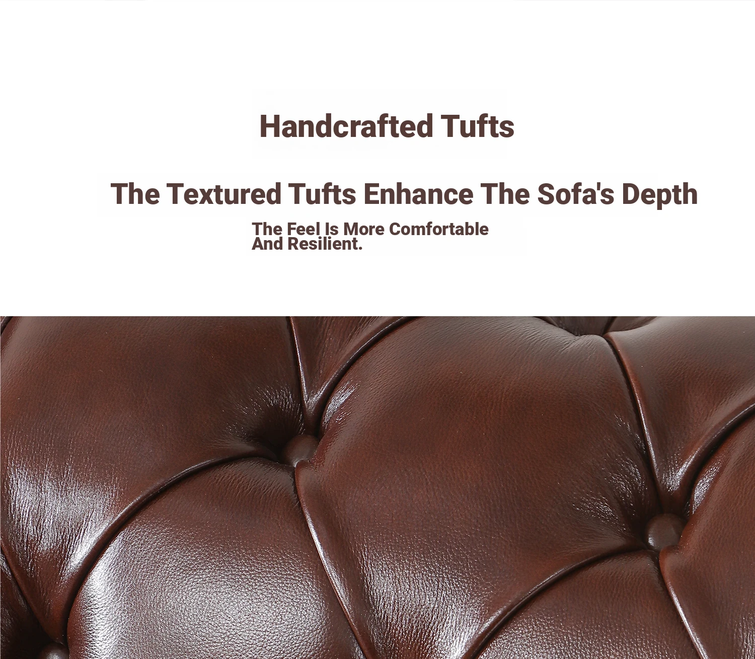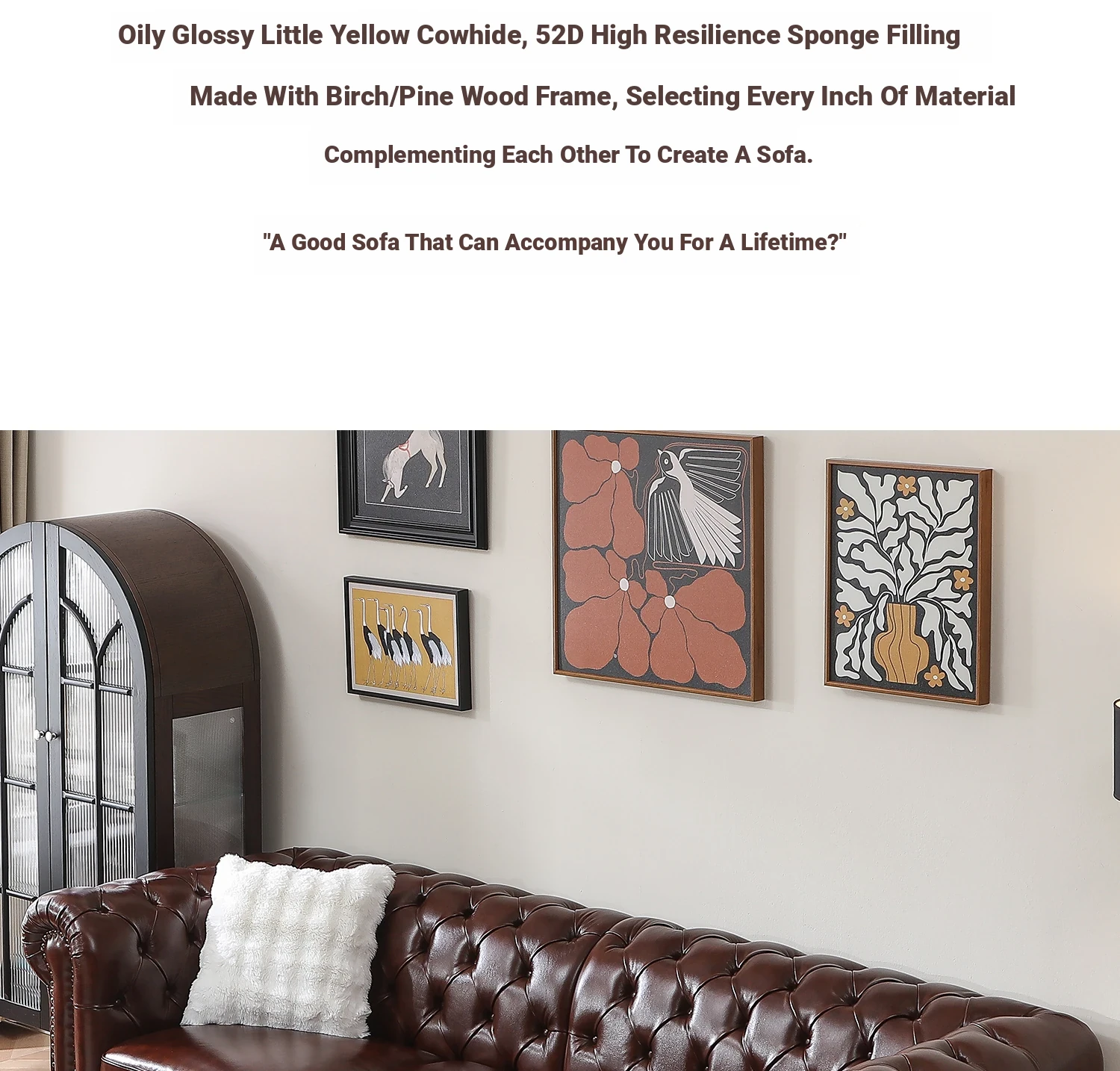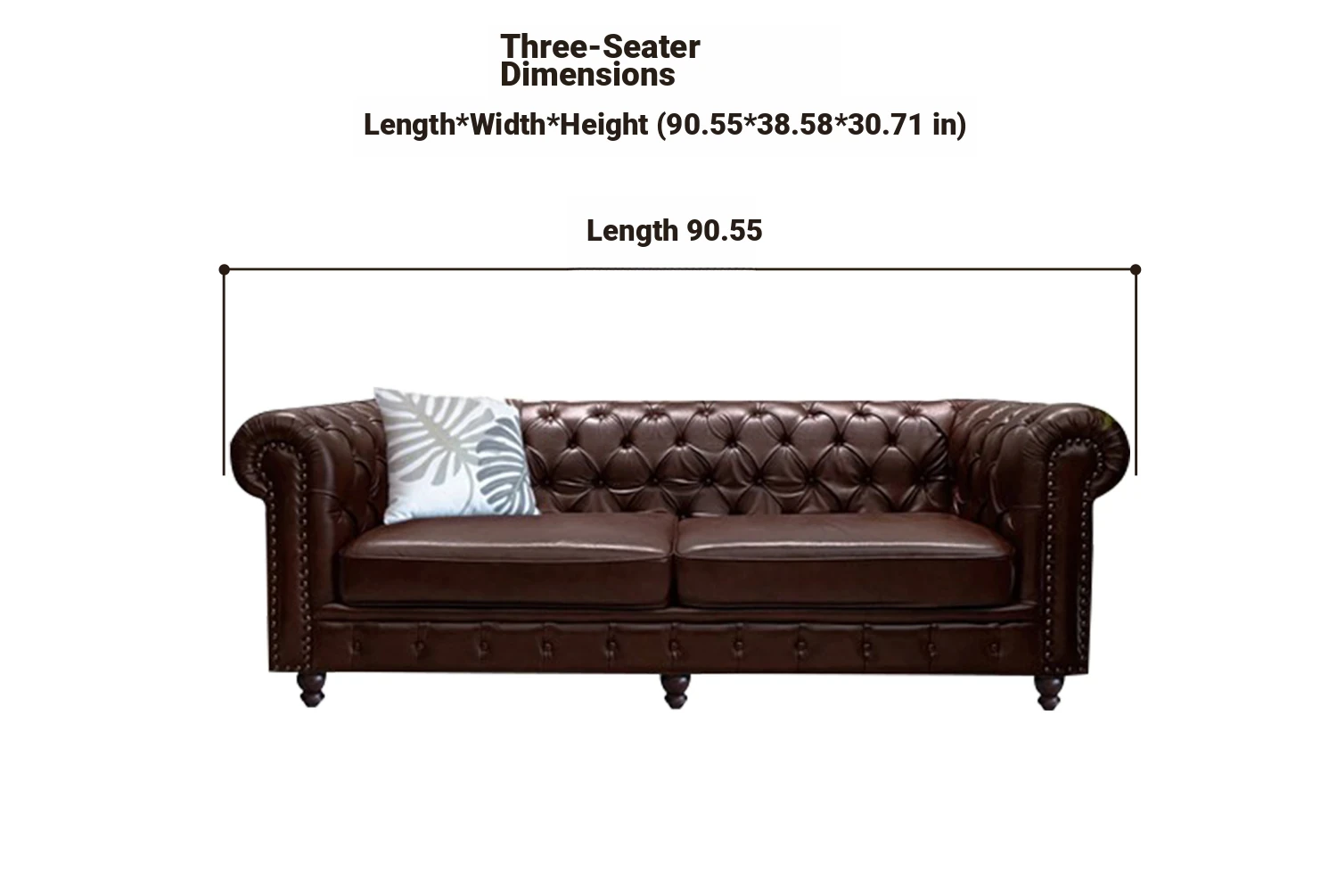Classic American Genuine Leather Three-Seat Sofa Set - Premium Top-Grain Waxed Leather, Timeless Vintage Design for Luxury Living Room Furniture