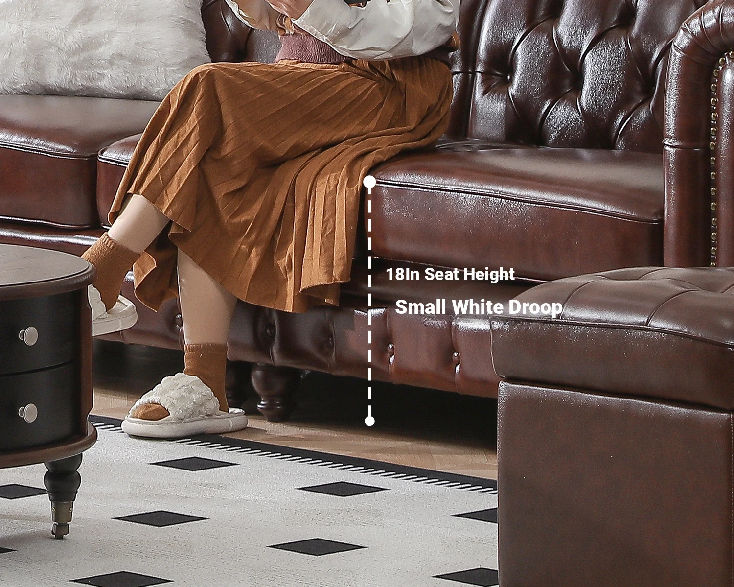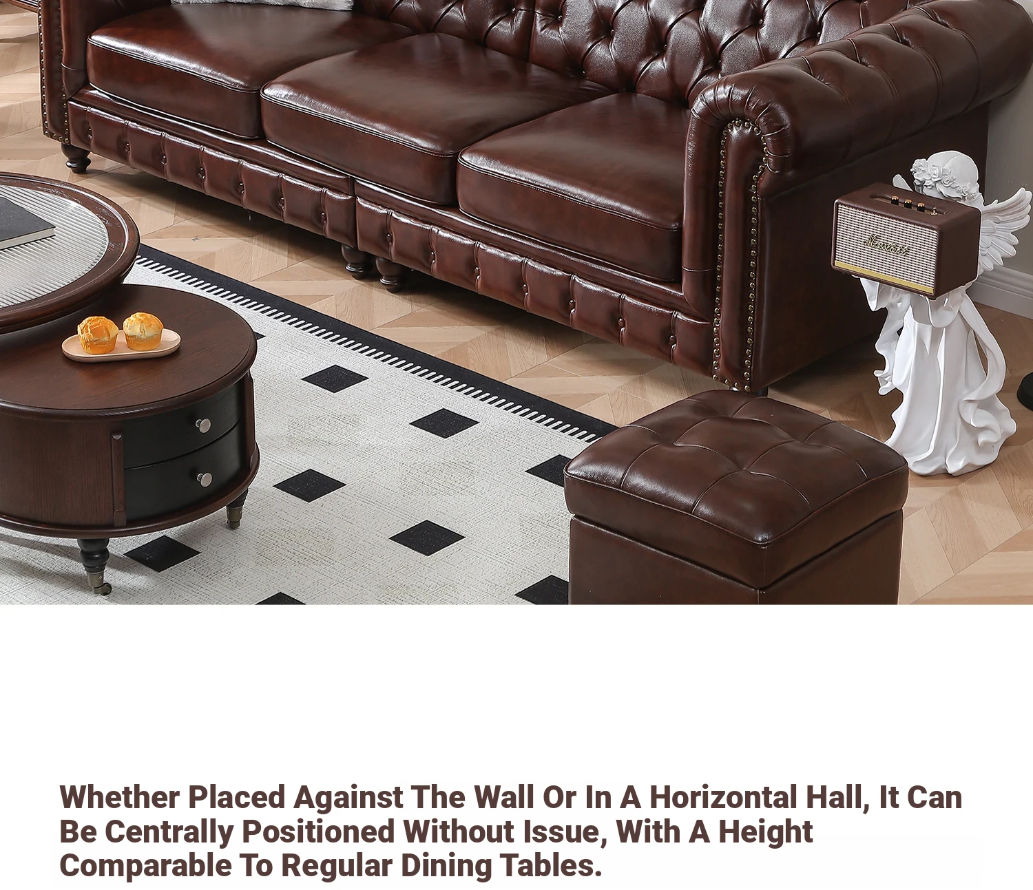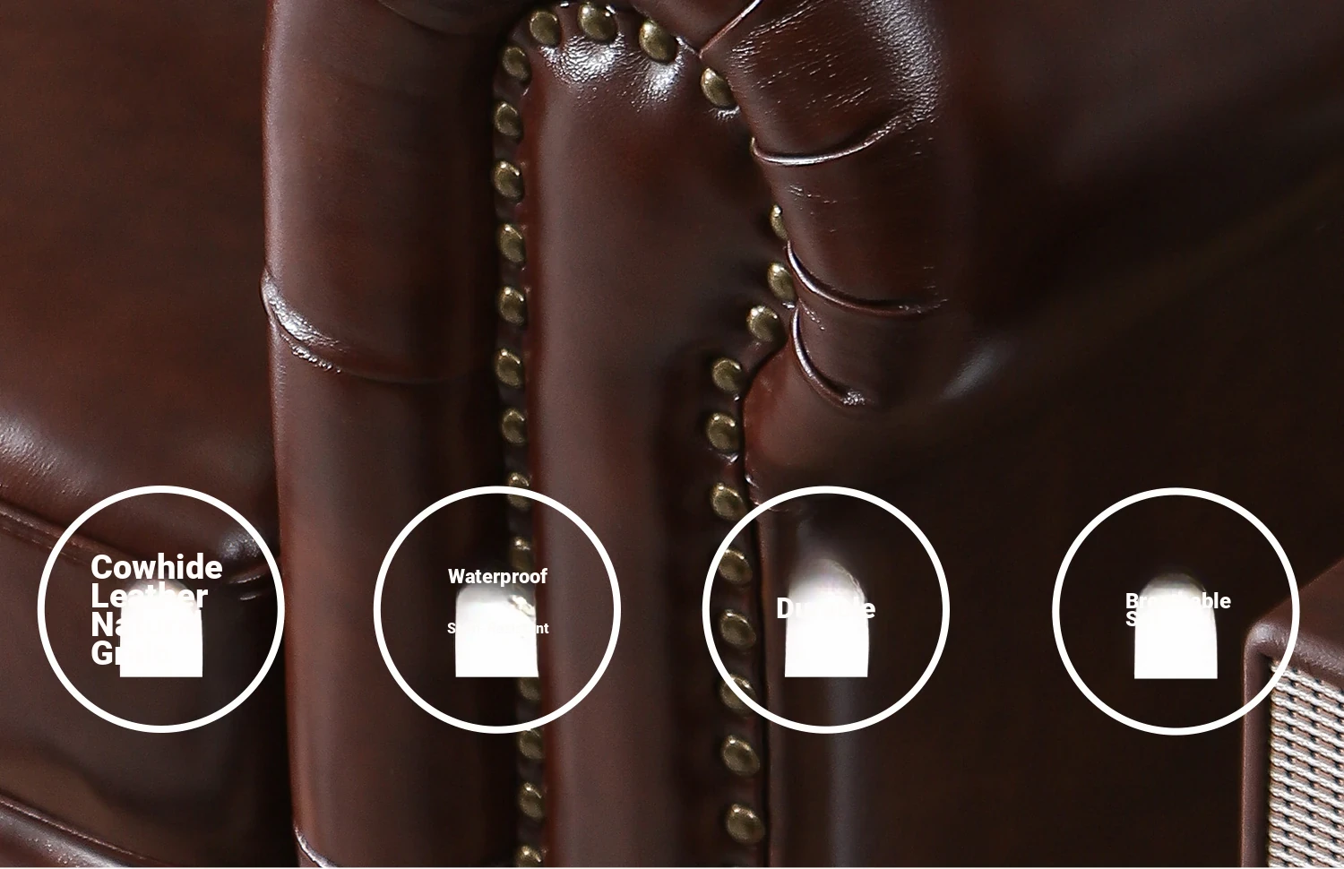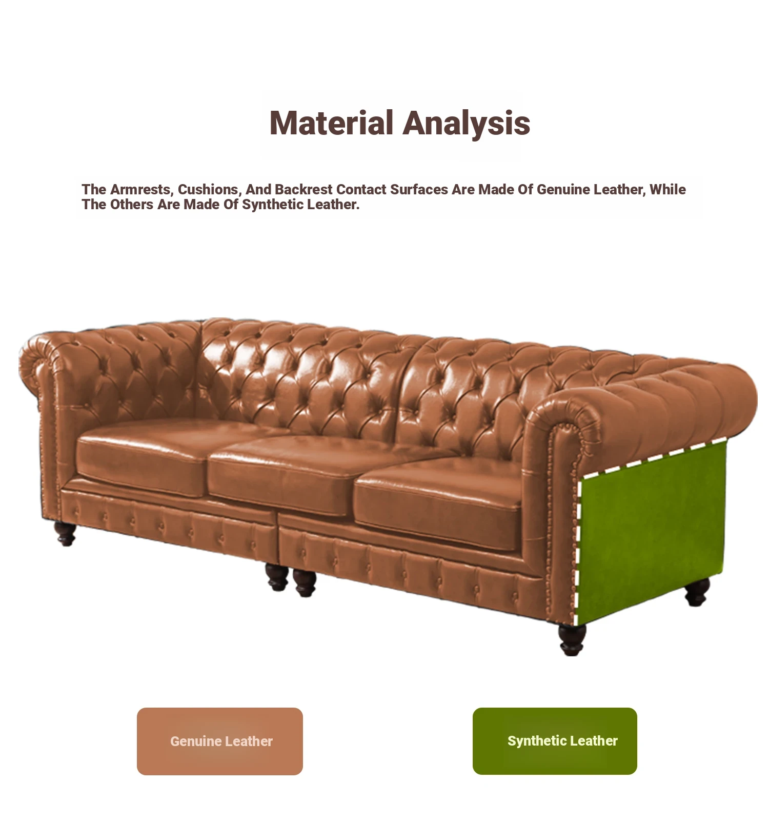 Classic American Genuine Leather Three-Seat Sofa Set - Premium Top-Grain Waxed Leather, Timeless Vintage Design for Luxury Living Room Furniture