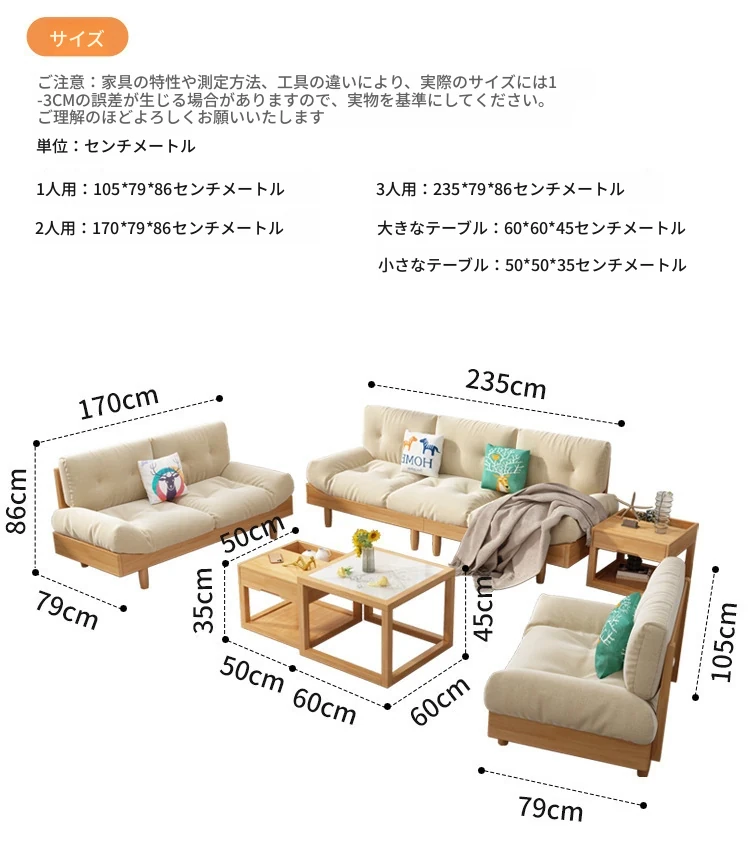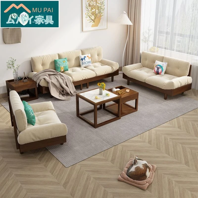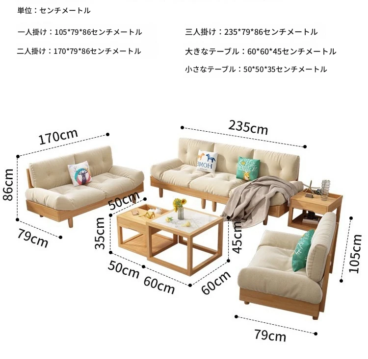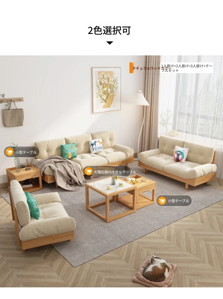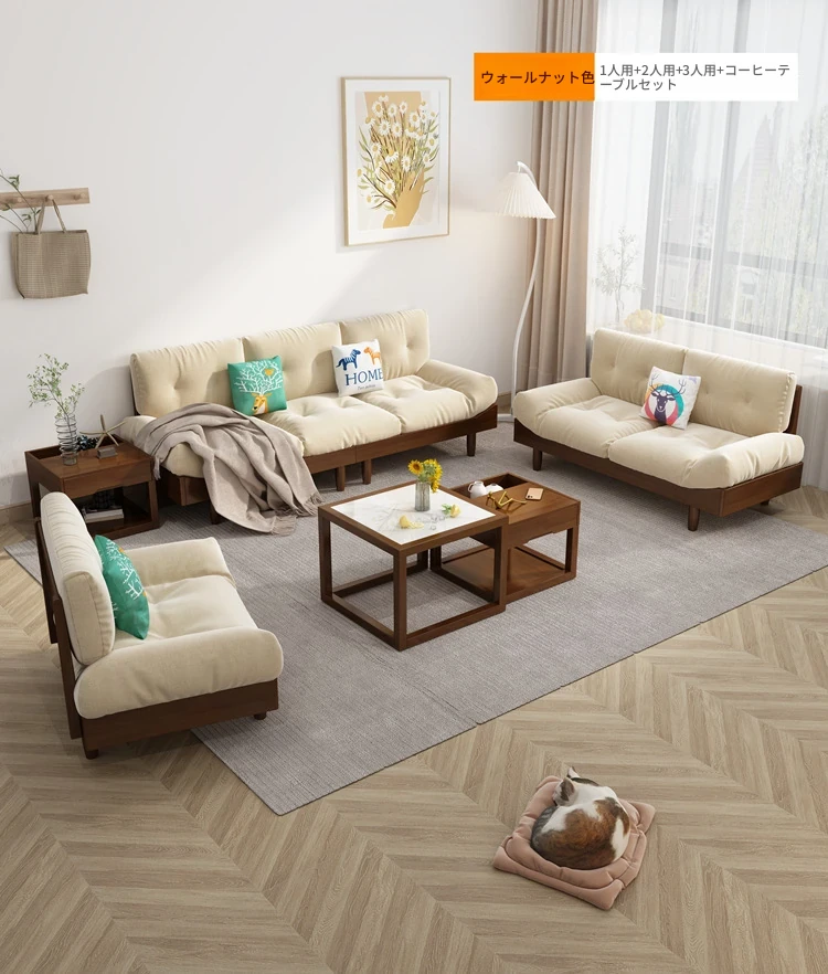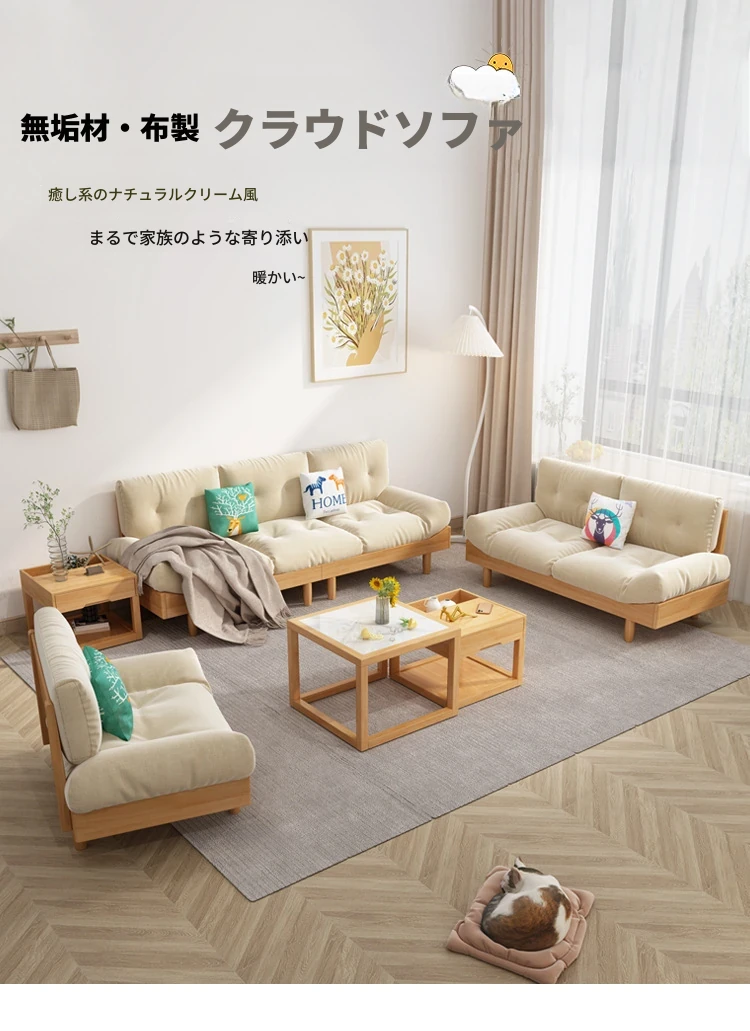 雲のようなソファー、無垢材とファブリックのイタリアンミニマリズム!小さなリビングにぴったりな原木クリーム風のダブルソファー。モダンでシンプルなデザインがあなたの空間をおしゃれに演出します!