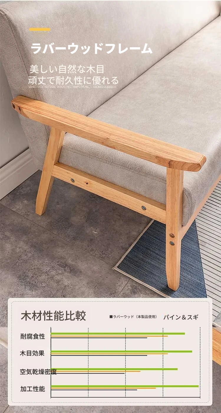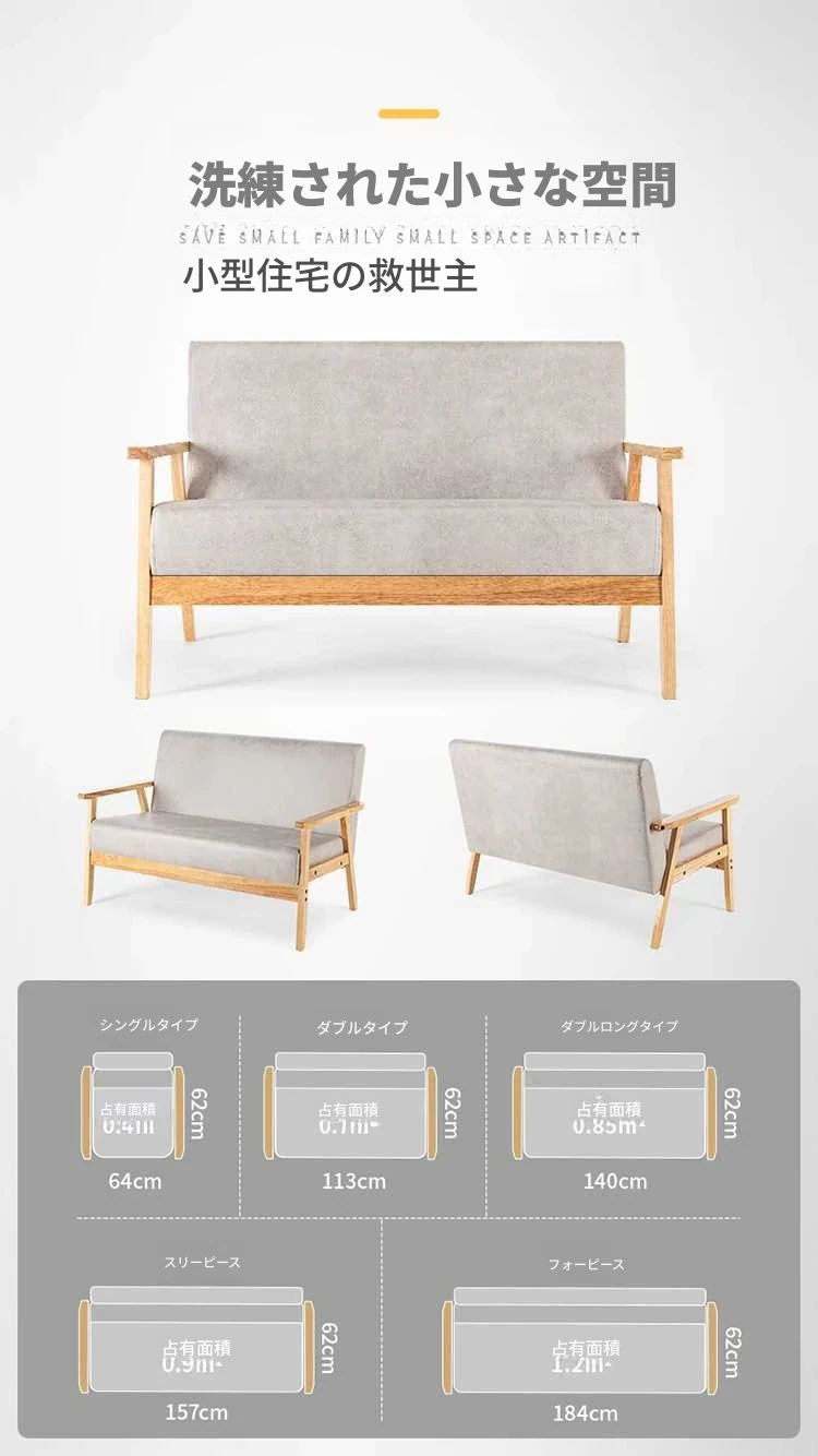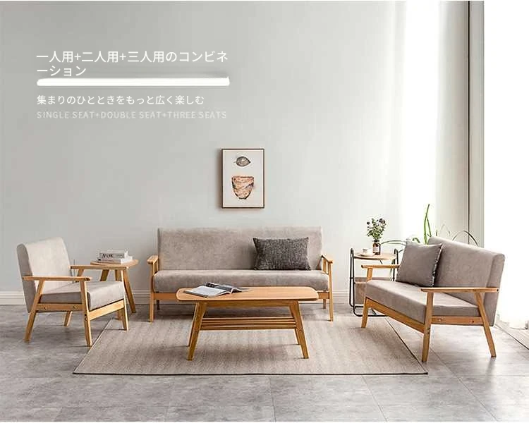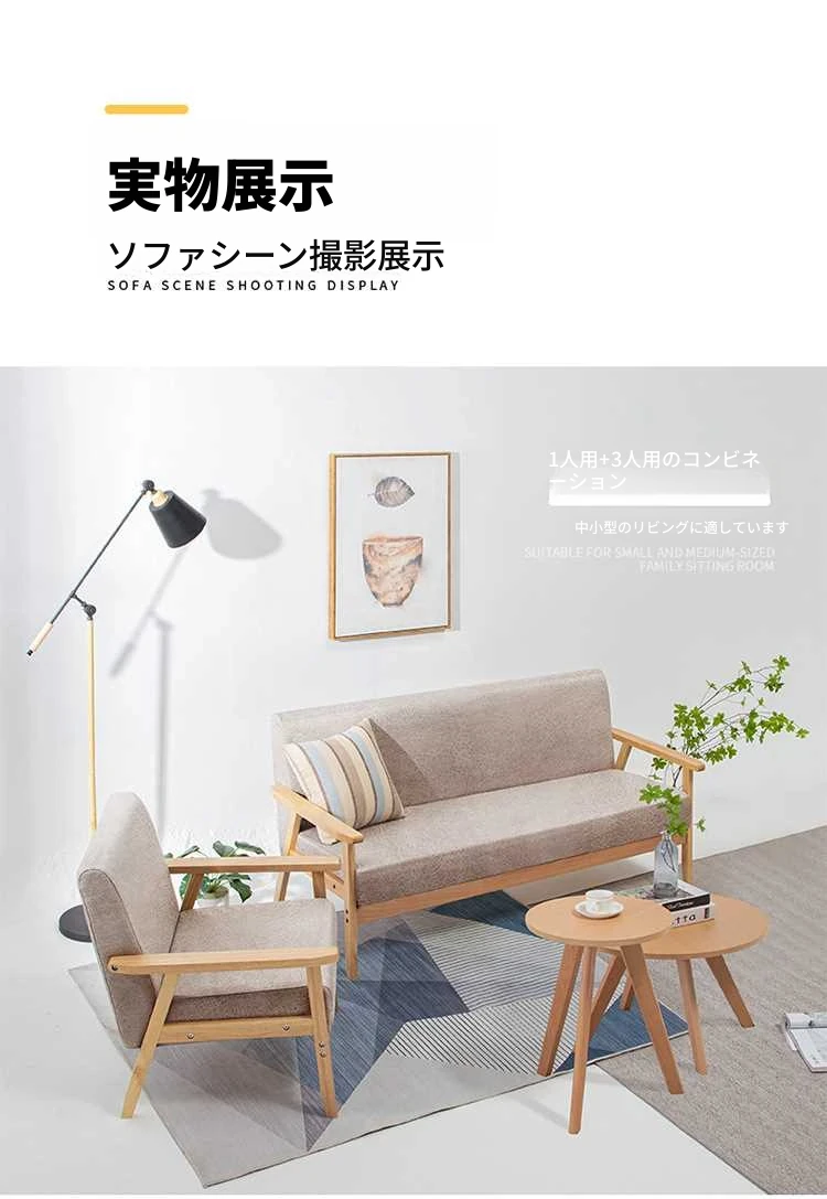 コンパクトな小型ソファ!シンプルでモダンなデザイン、田舎風の布製ダブル&シングルソファ。リビングにもぴったりな天然木製、和風スタイルのテクノロジー布ソファで快適な空間を演出します!