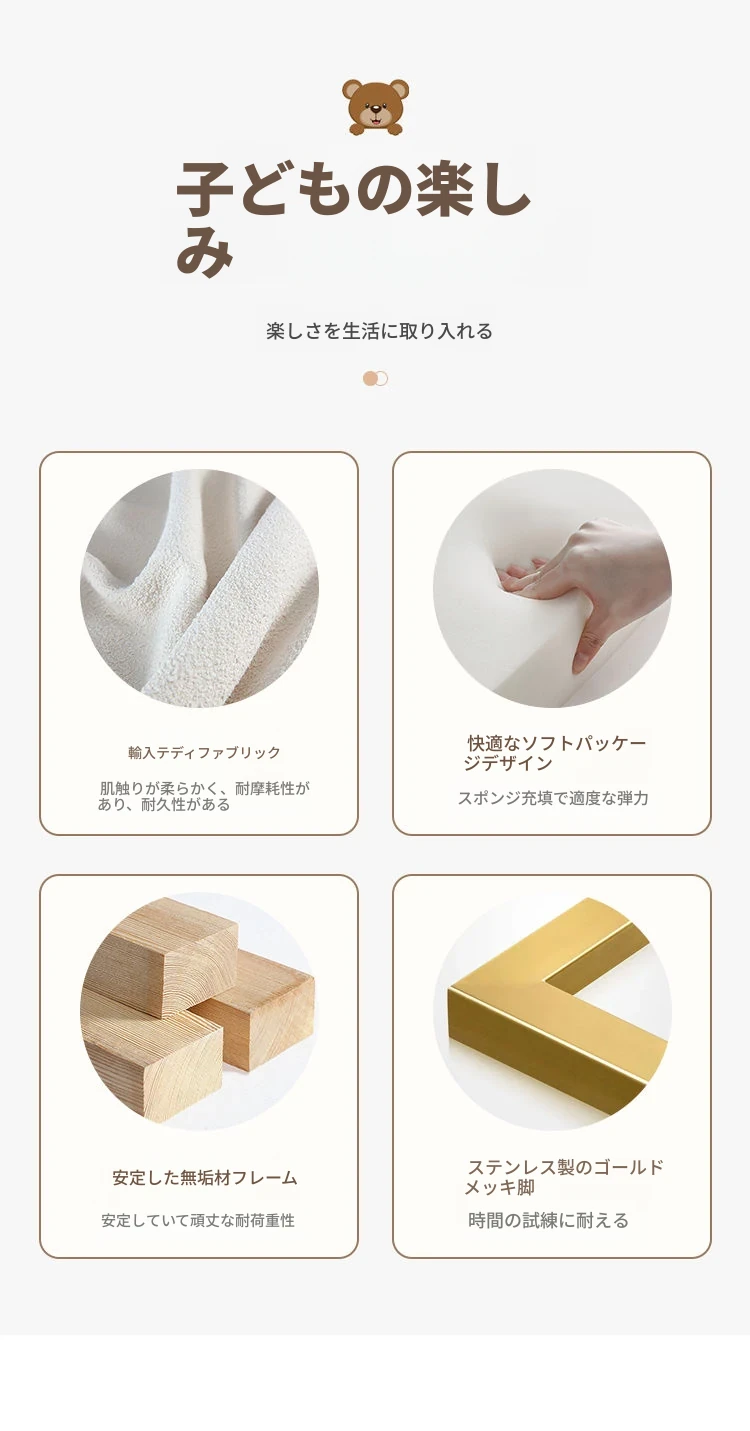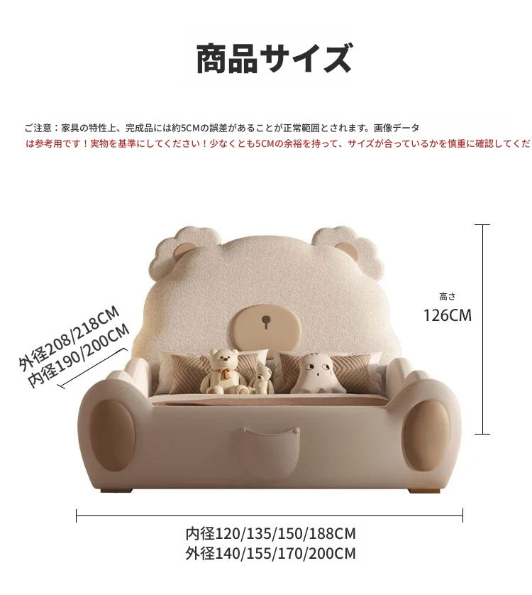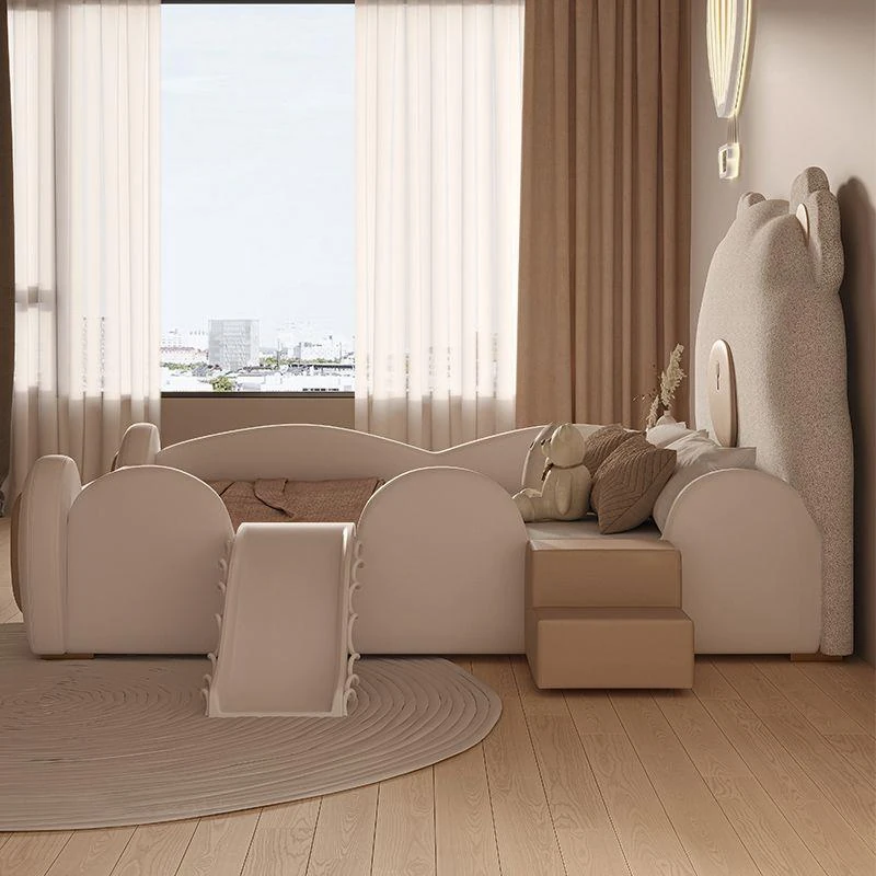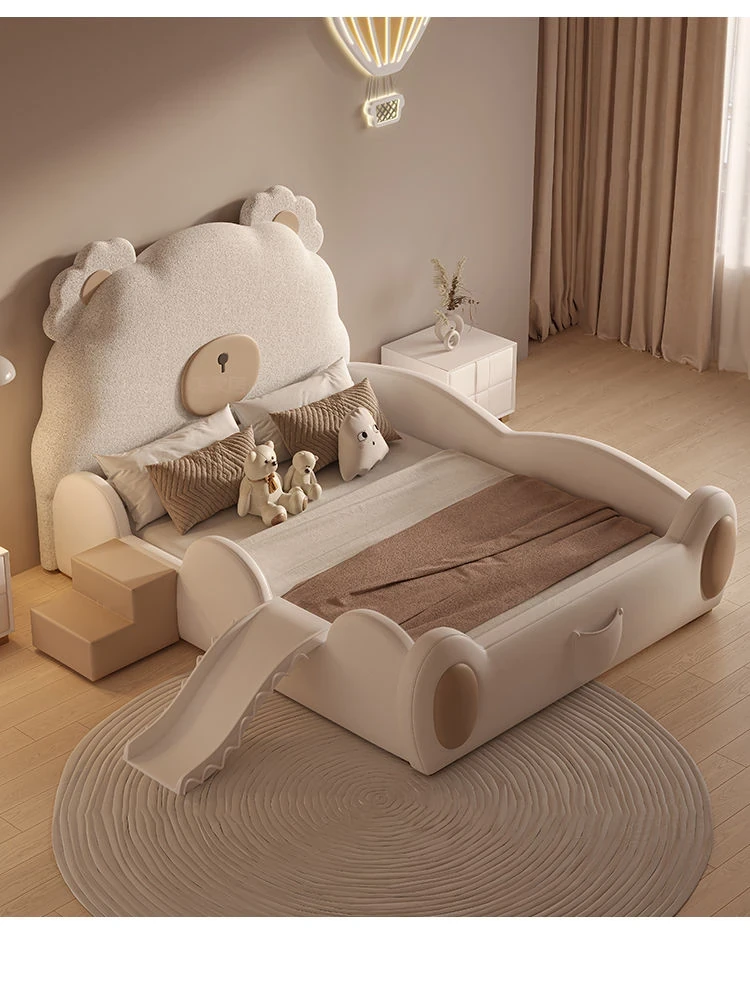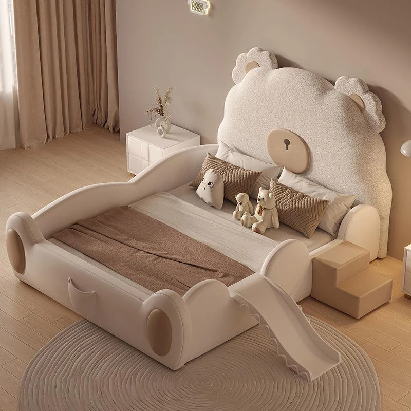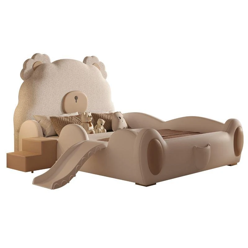 ユニークなカートゥーンデザインの小熊ベッド!男の子も女の子も大喜びのシングルサイズ。シンプルでモダンな高級感あふれる本革ベッドに、人気のスライド付き。お子様の夢の空間を演出します!
