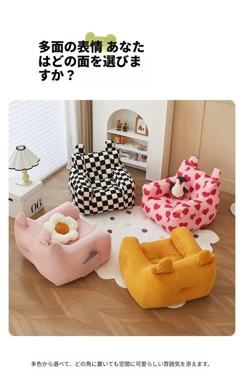 子供用プリンセスデザインの可愛らしい小さなソファ、読書コーナーにぴったりな一人用ビーズソファ!赤ちゃんも安心して使える背もたれ付きのリラックスチェア。お部屋を素敵に彩るアイテムです!