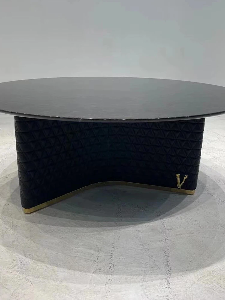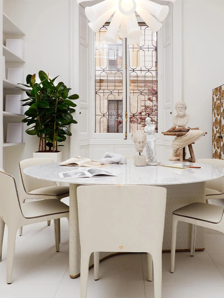 イタリアンラグジュアリー大理石デザイナーダイニングテーブル - ヴィラや豪邸にぴったりの高級感あふれる円形アートテーブル。家の中心を飾る一品で、特別なひとときを演出します。