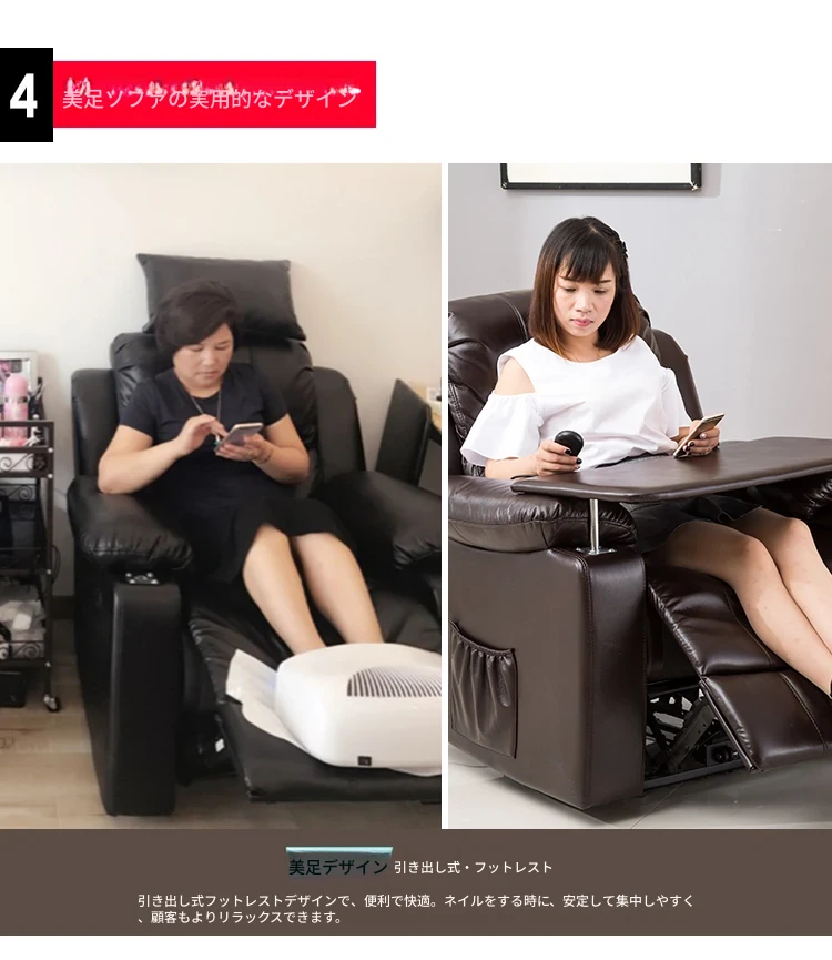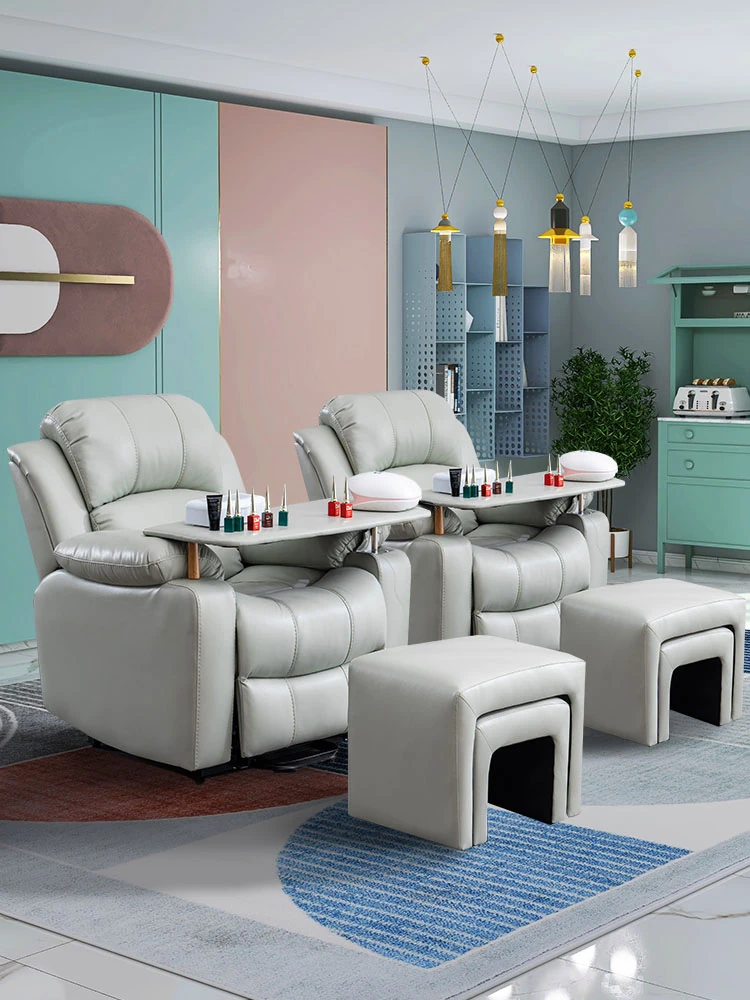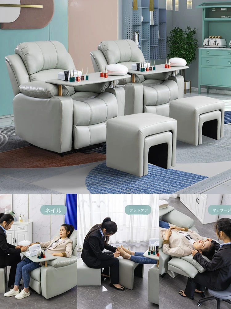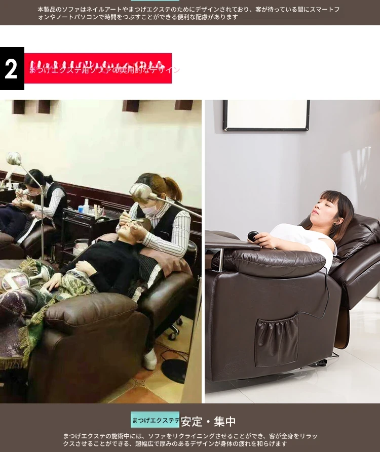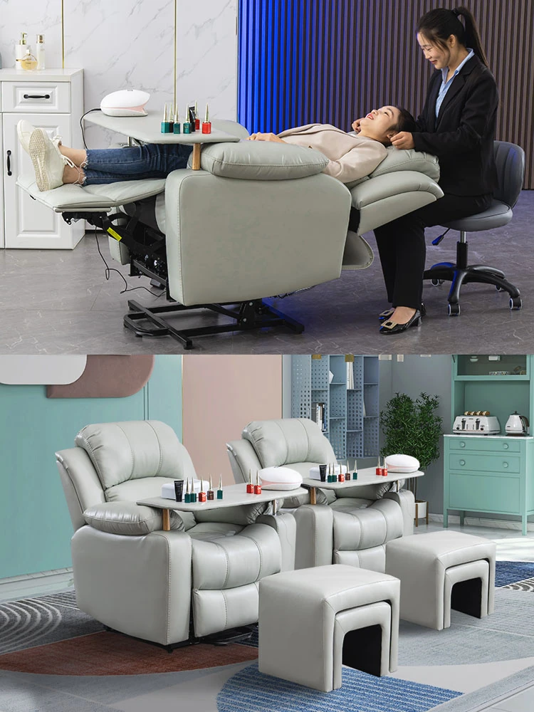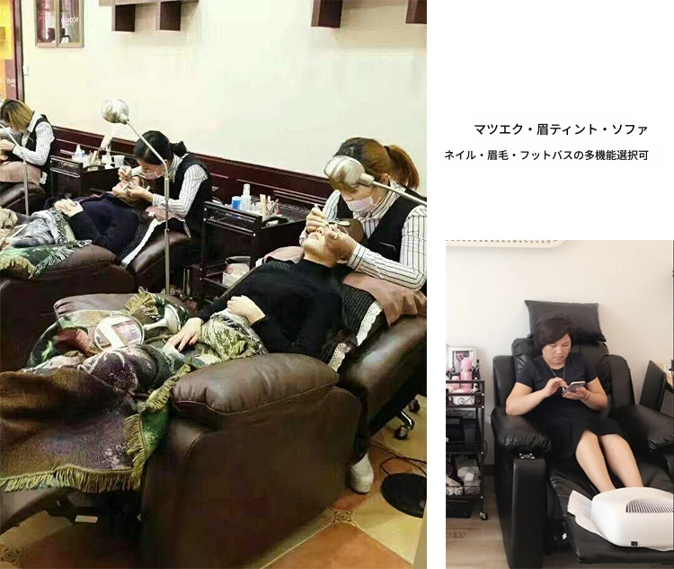 電動ヘッドレスト付きスペースネイル&まつげサロンソファー、1人用マルチファンクション、テクノロジー布製、リクライニング機能付き、美容サロンに最適な最新デザイン!