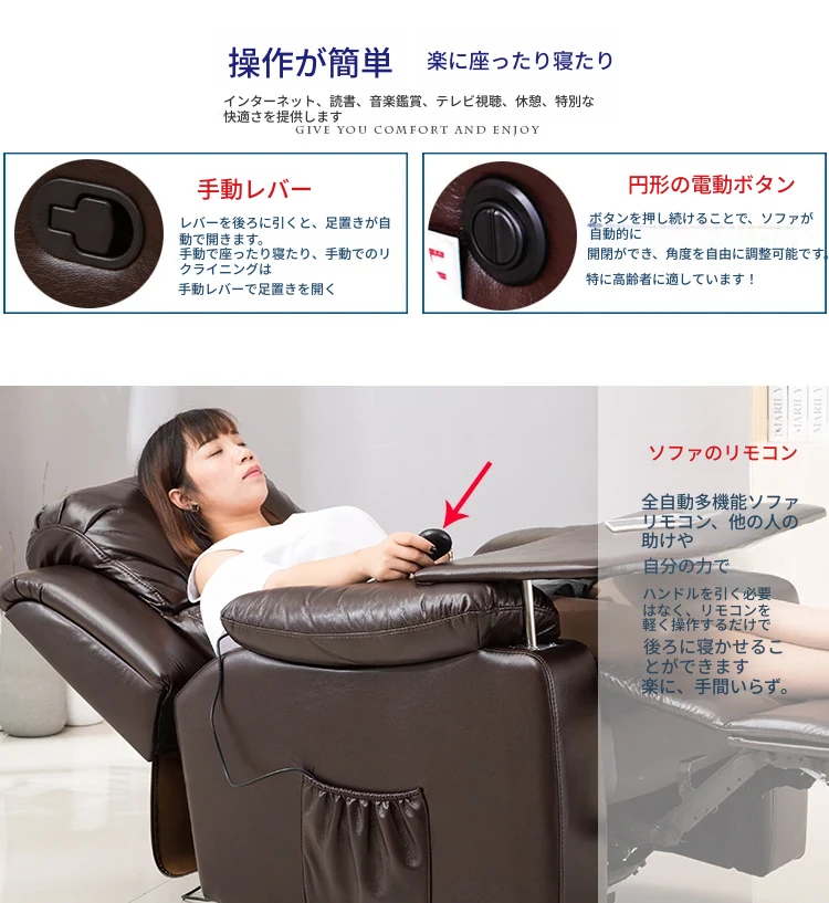 ダブルモーターのリクライニング背もたれ独立調整可能フラット