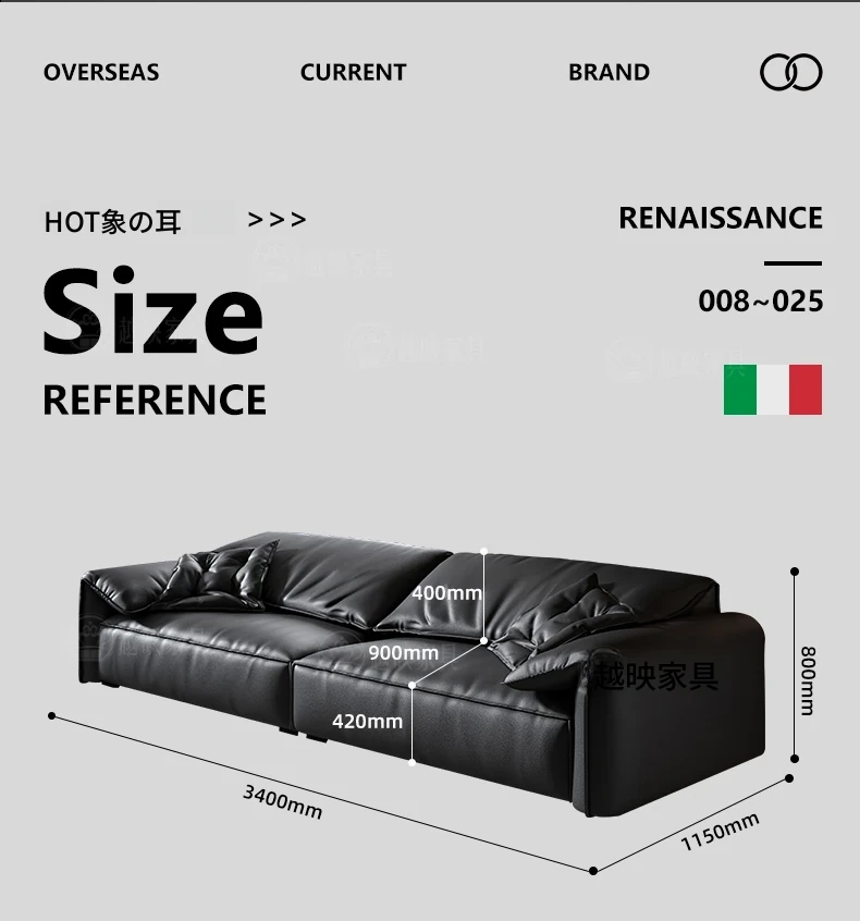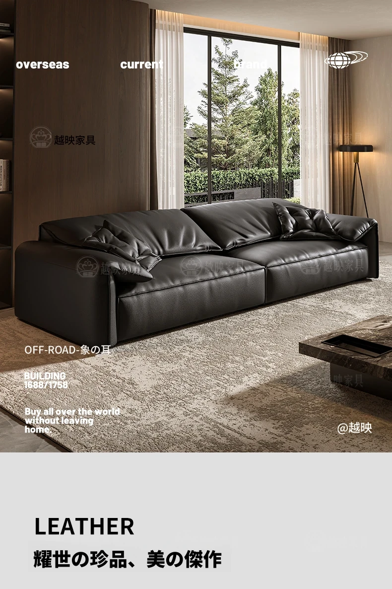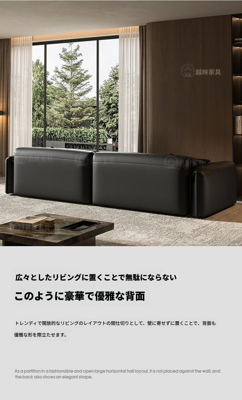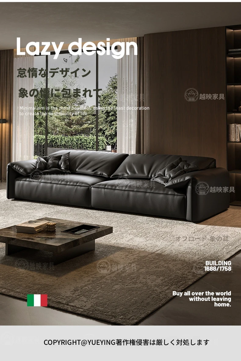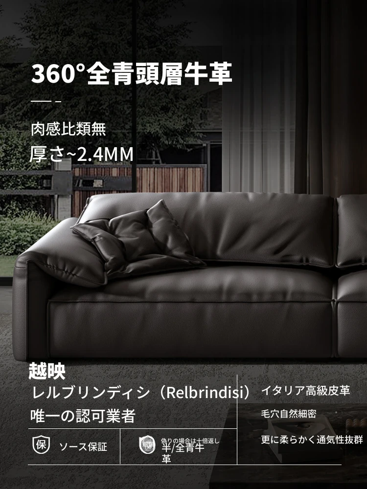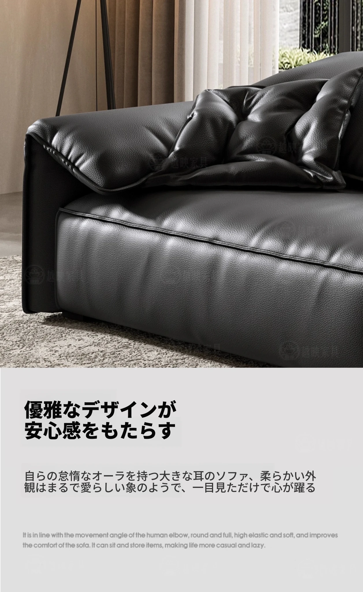 越映イタリアンミニマリスト象耳ソファ|リビングルームにぴったりのコンパクトデザイン|高級全青皮革使用|スタイリッシュな直線フォルムで洗練された空間を演出!