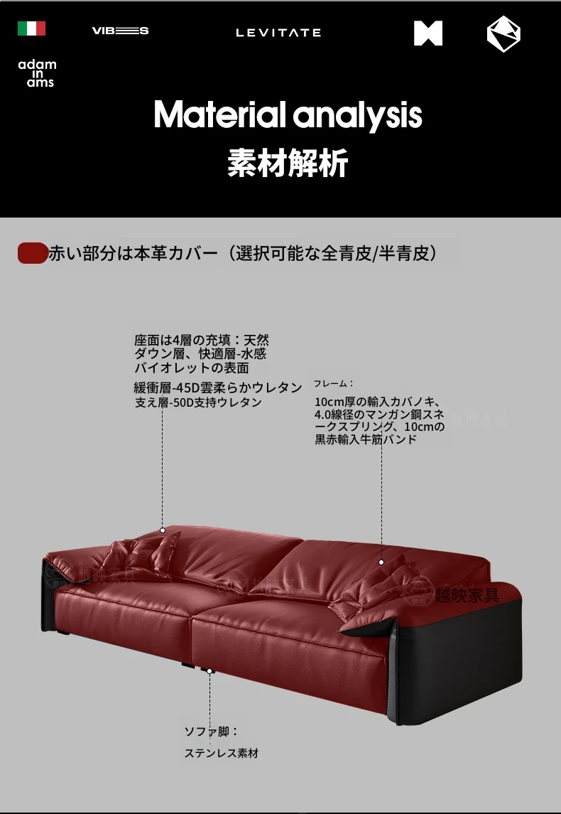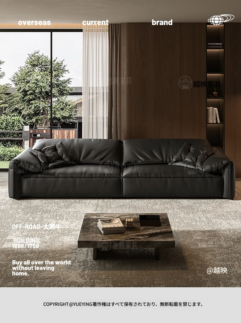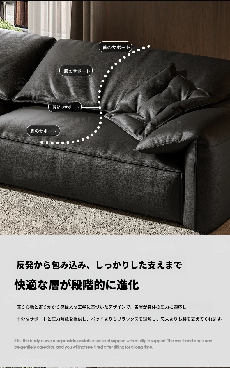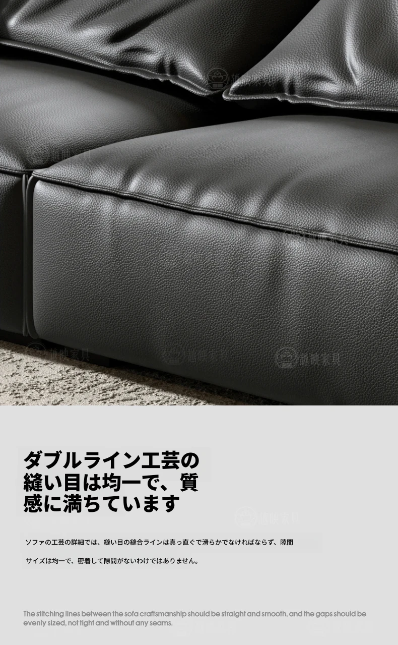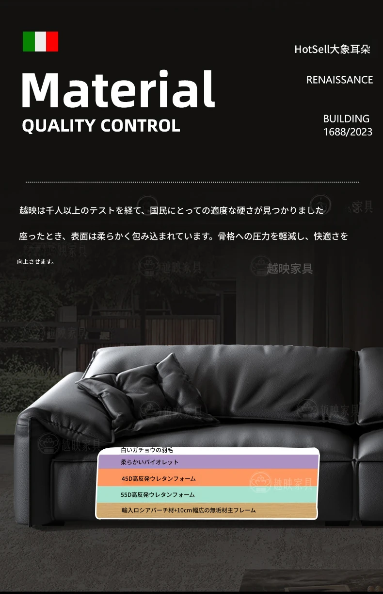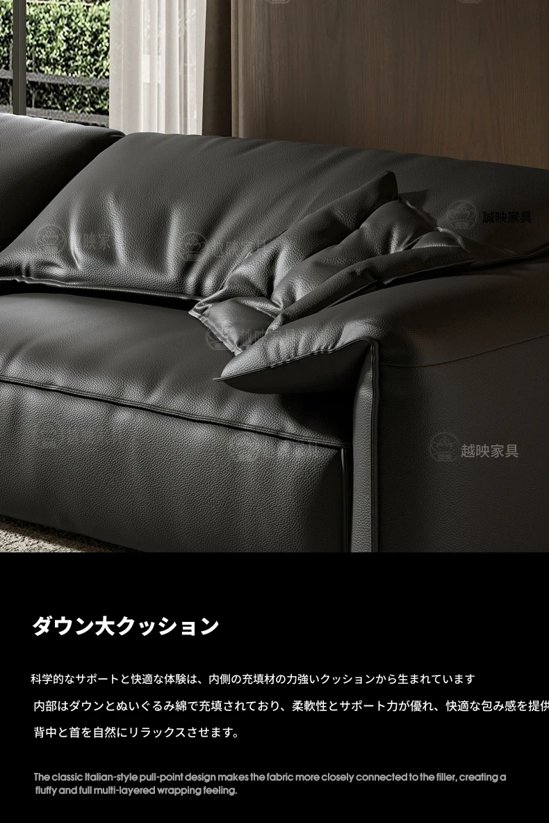 越映イタリアンミニマリスト象耳ソファ|リビングルームにぴったりのコンパクトデザイン|高級全青皮革使用|スタイリッシュな直線フォルムで洗練された空間を演出!