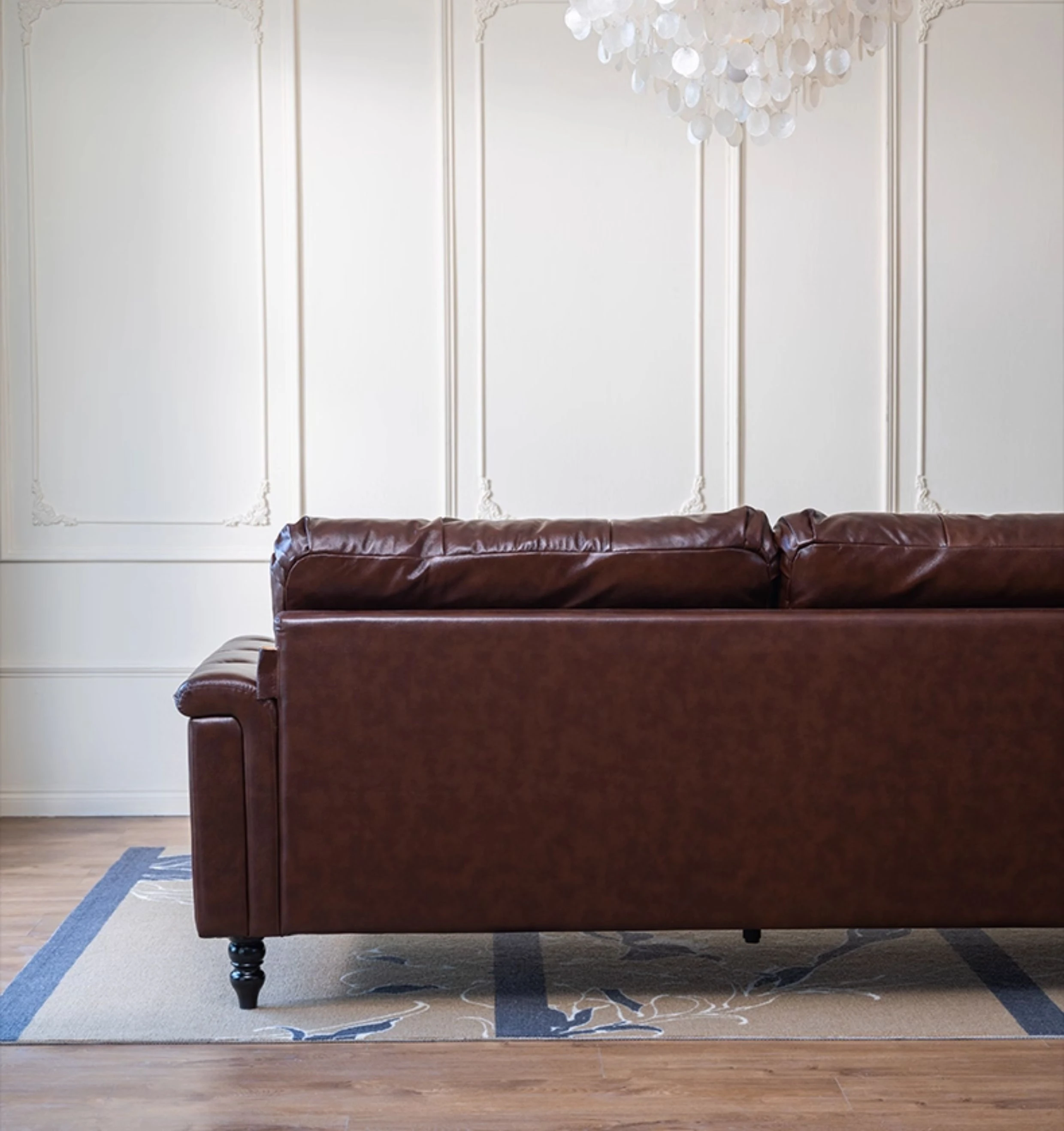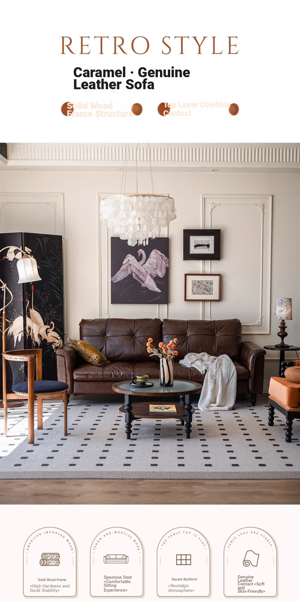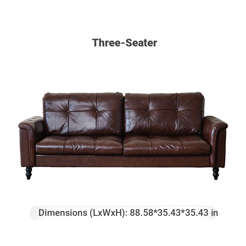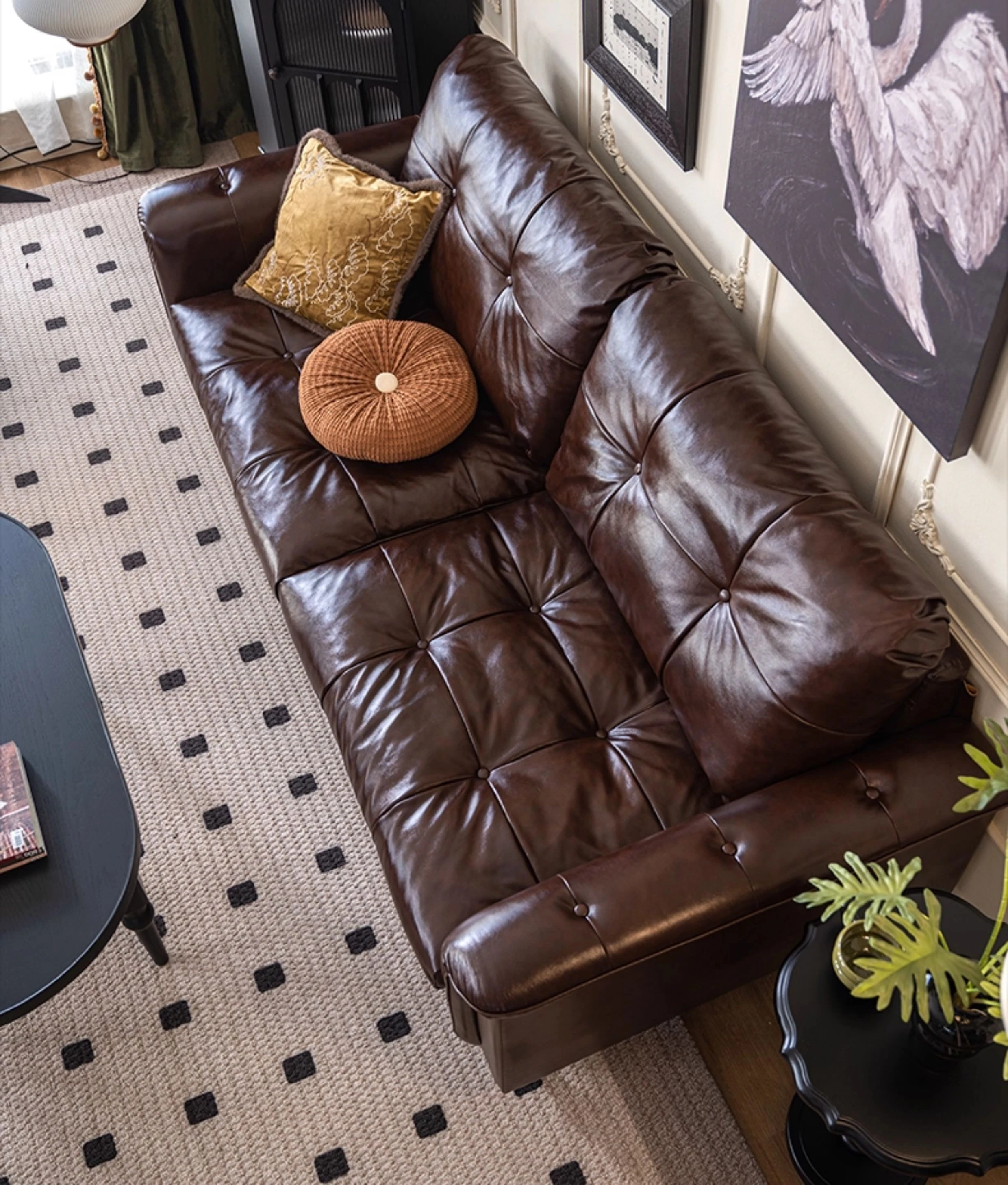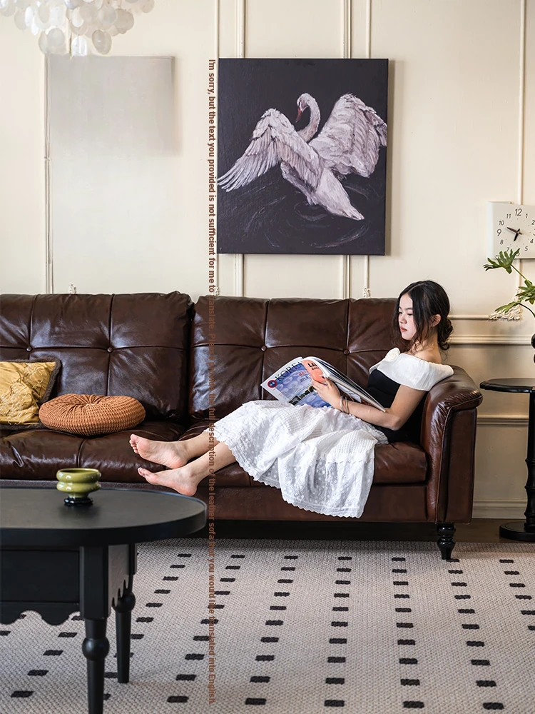Elegant American Vintage Leather Sofa - Solid Wood, Top Grain Cowhide, Mid-Century Modern Design for Luxurious Living Rooms. Perfect Blend of Style and Comfort!