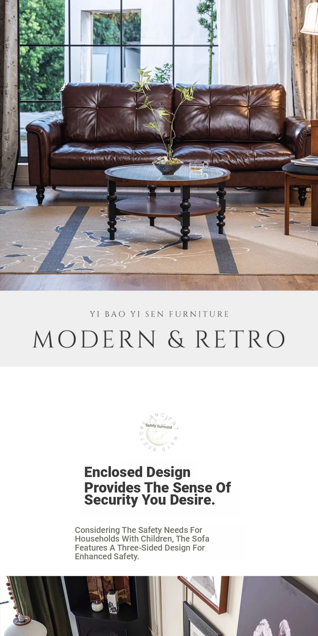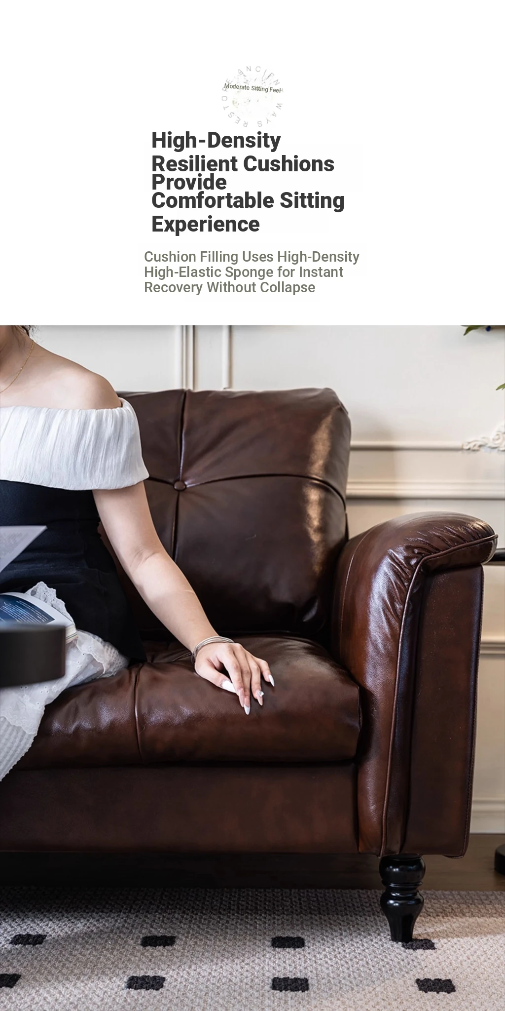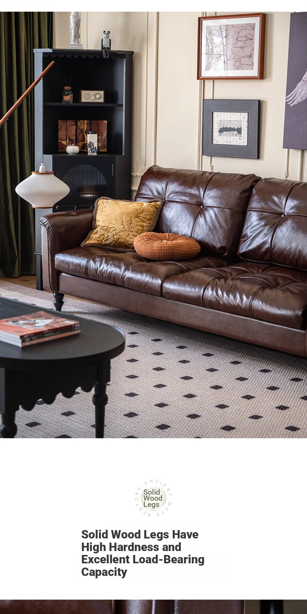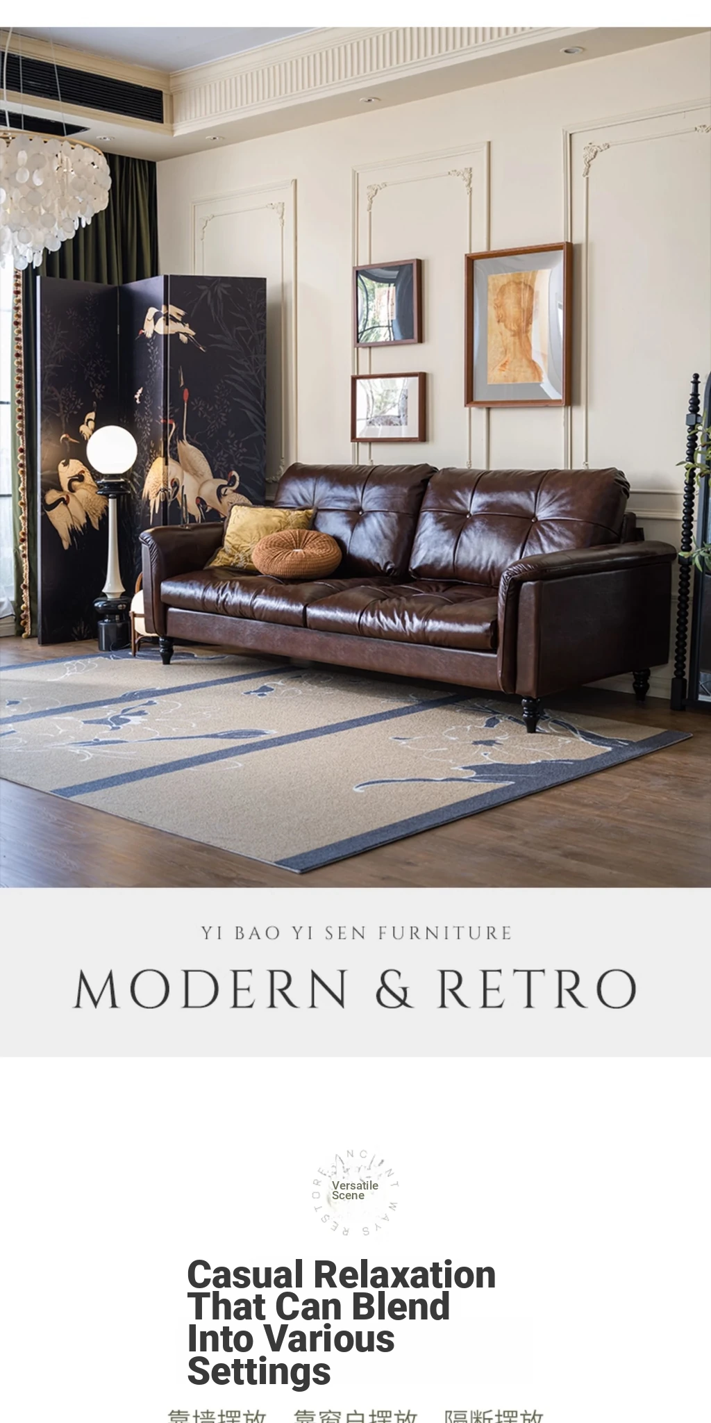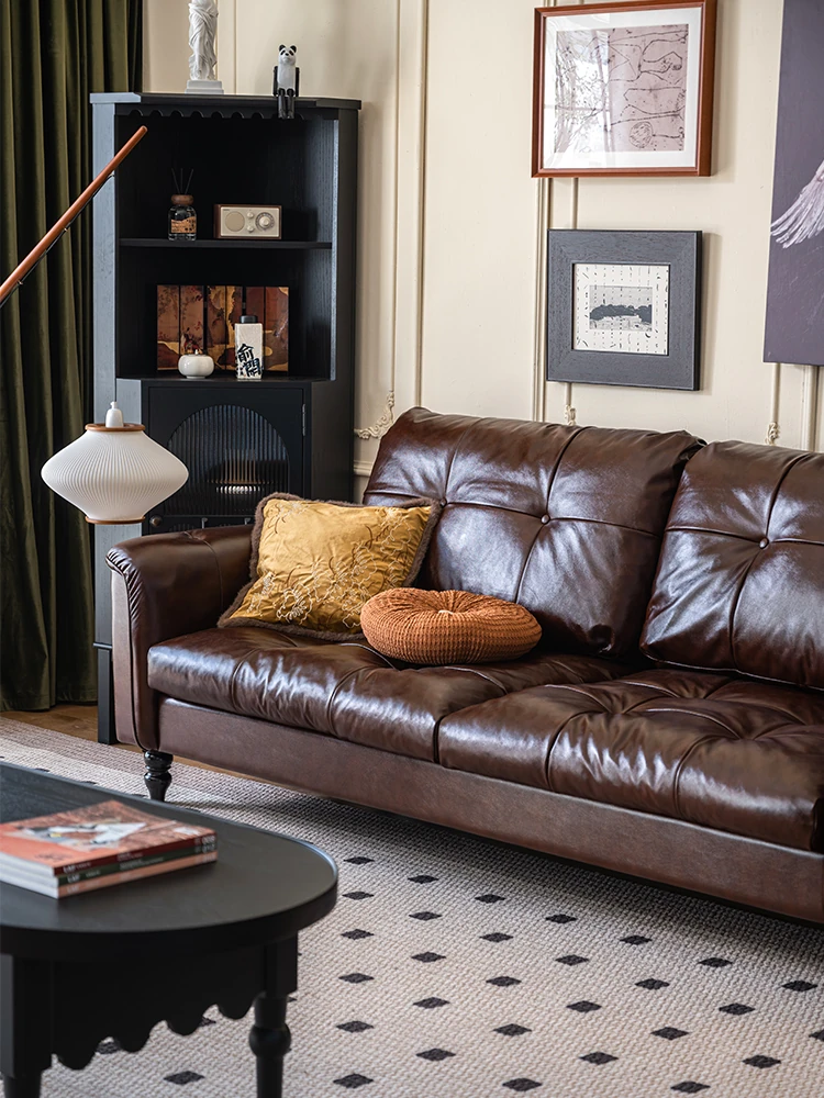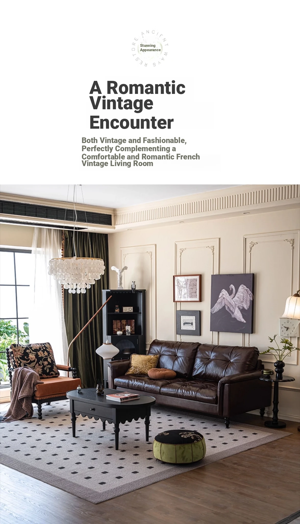 Elegant American Vintage Leather Sofa - Solid Wood, Top Grain Cowhide, Mid-Century Modern Design for Luxurious Living Rooms. Perfect Blend of Style and Comfort!
