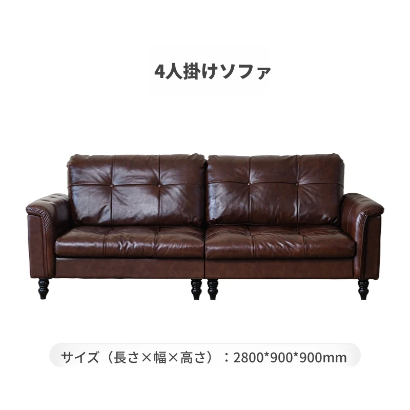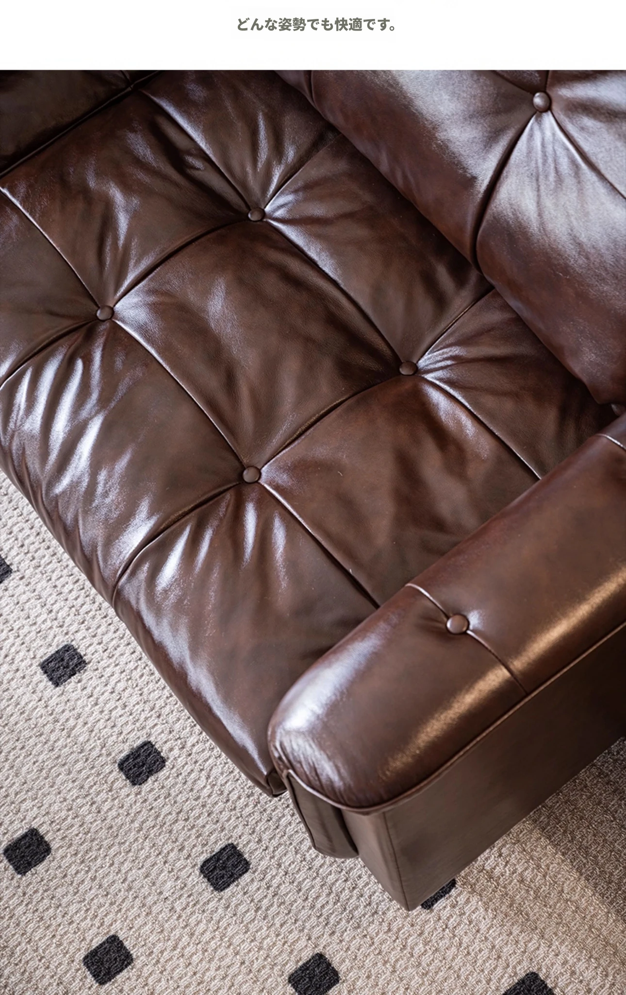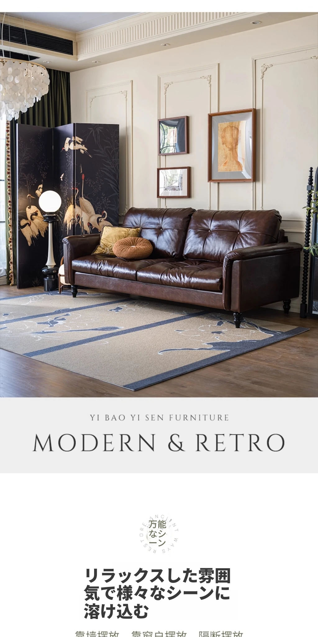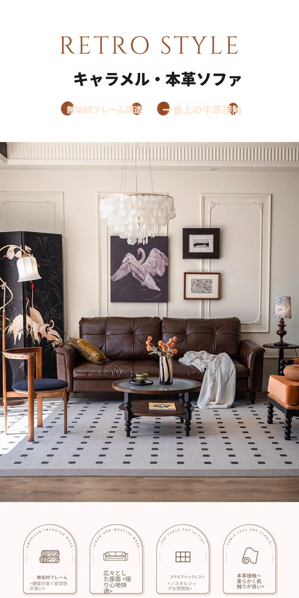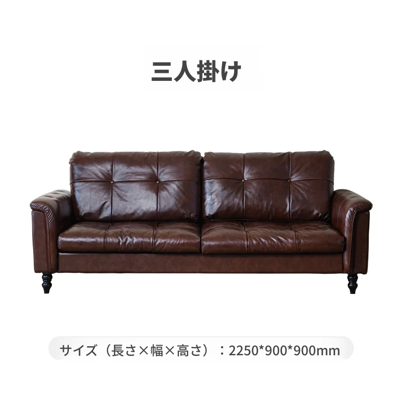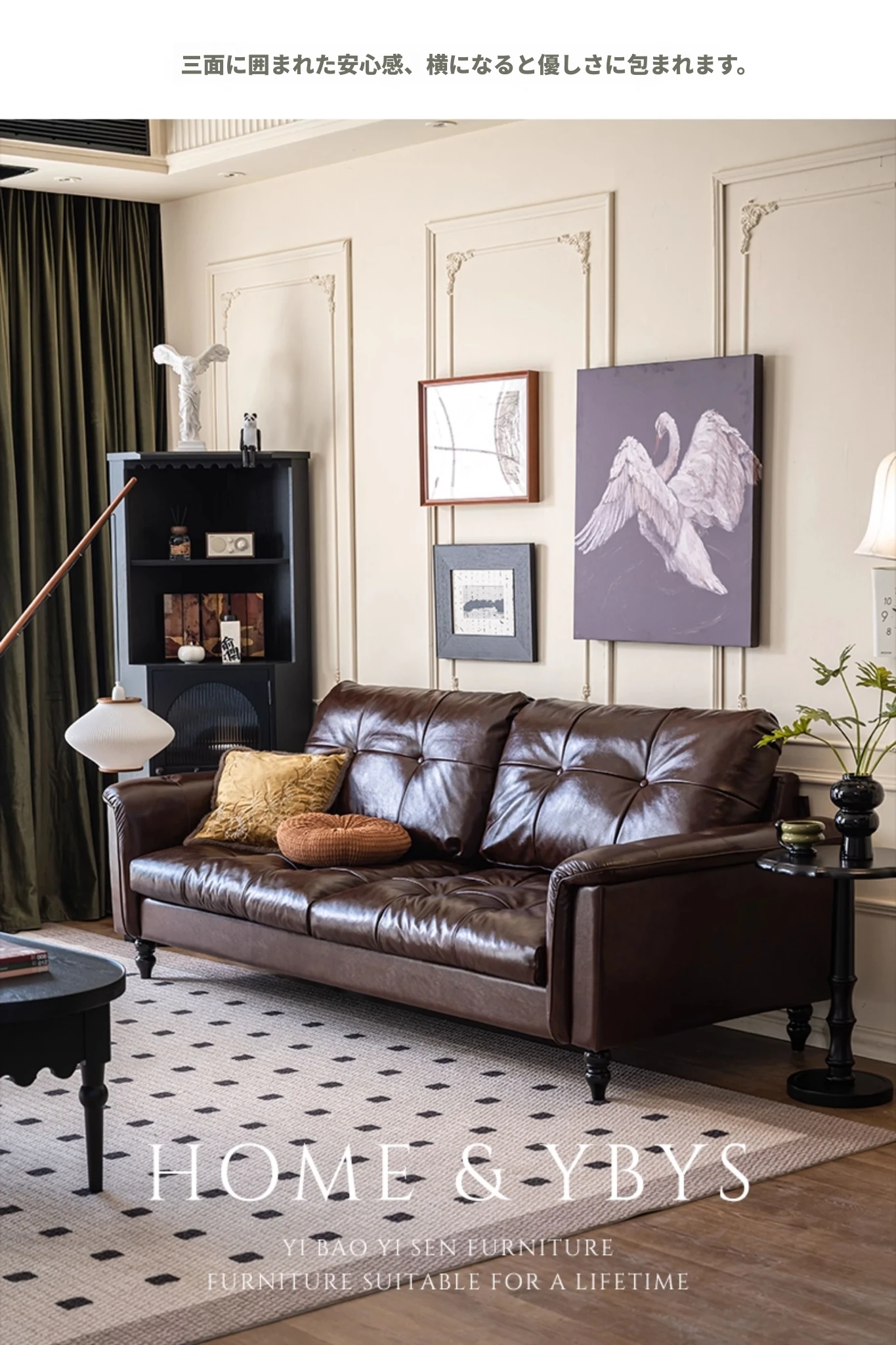 イーバオイーセン 本革 アメリカンスタイル ソファー 高級ヴィンテージデザイン 無垢材使用 牛革 リビングに最適なクラシックな直線ソファ