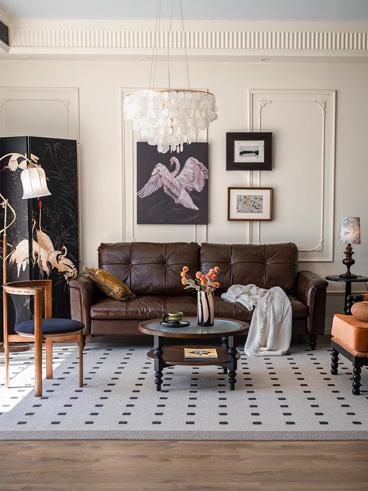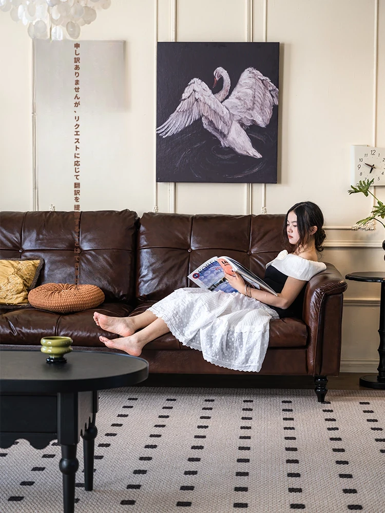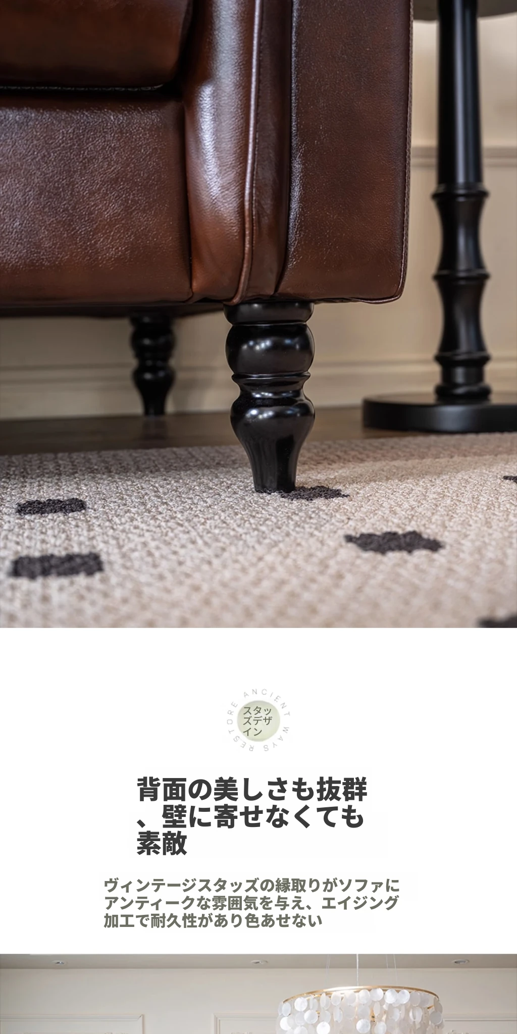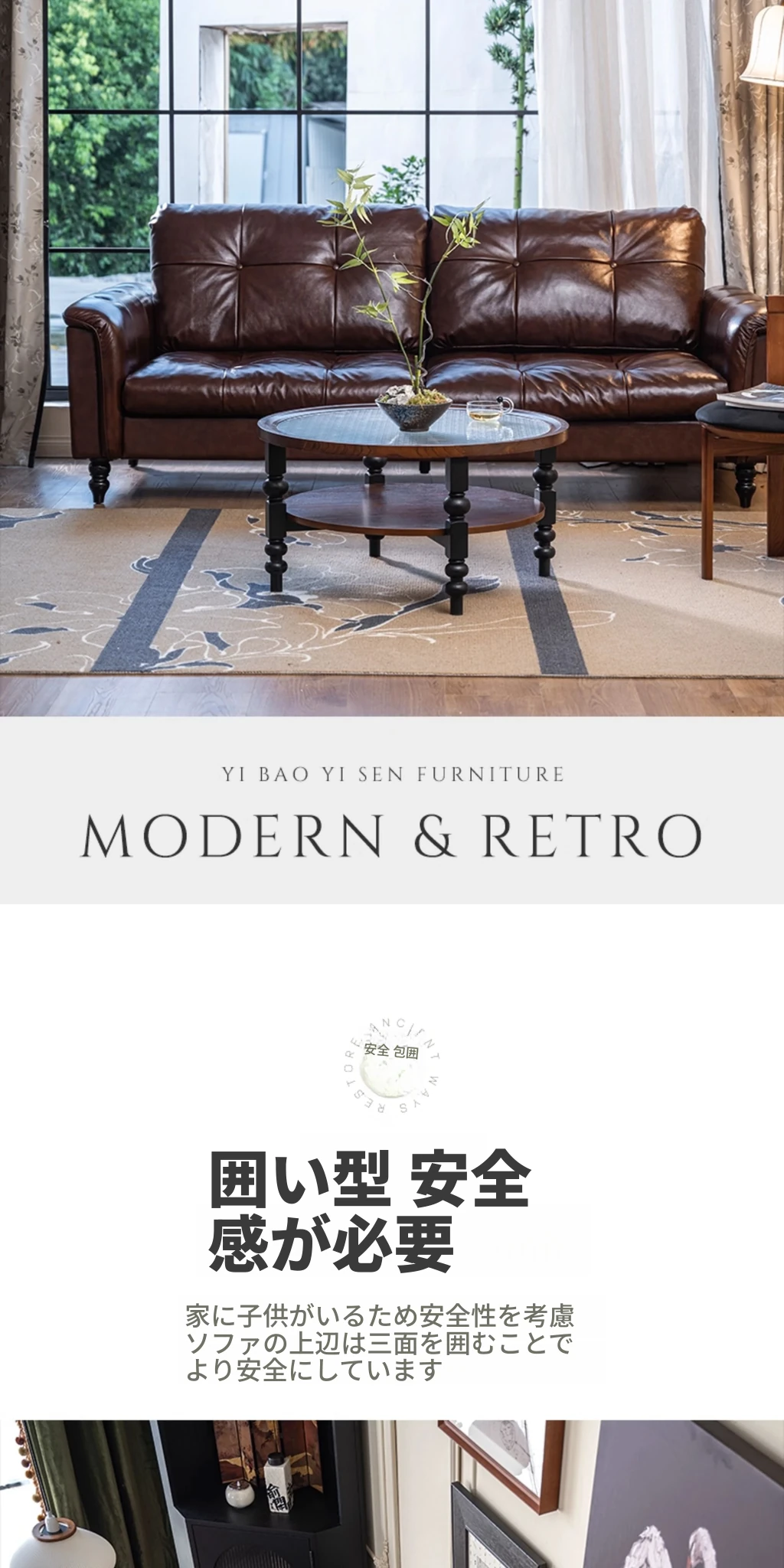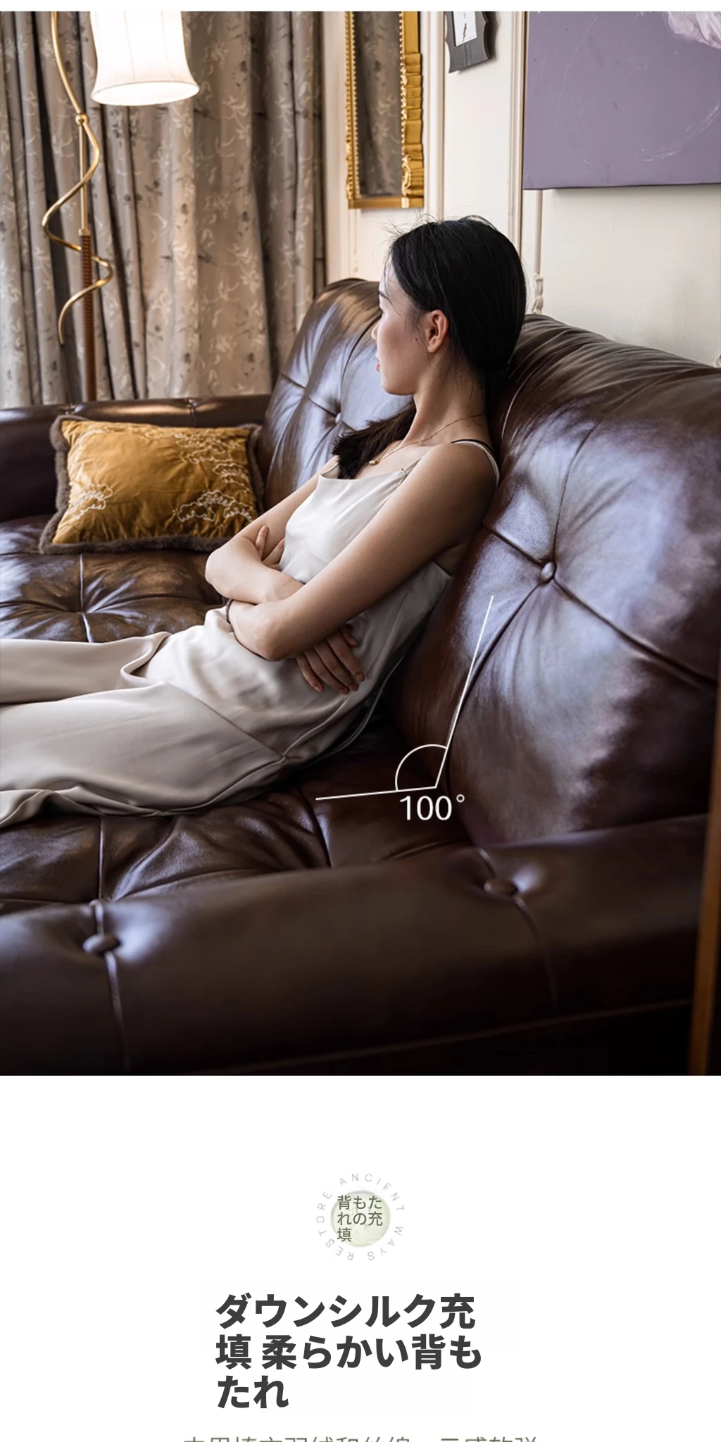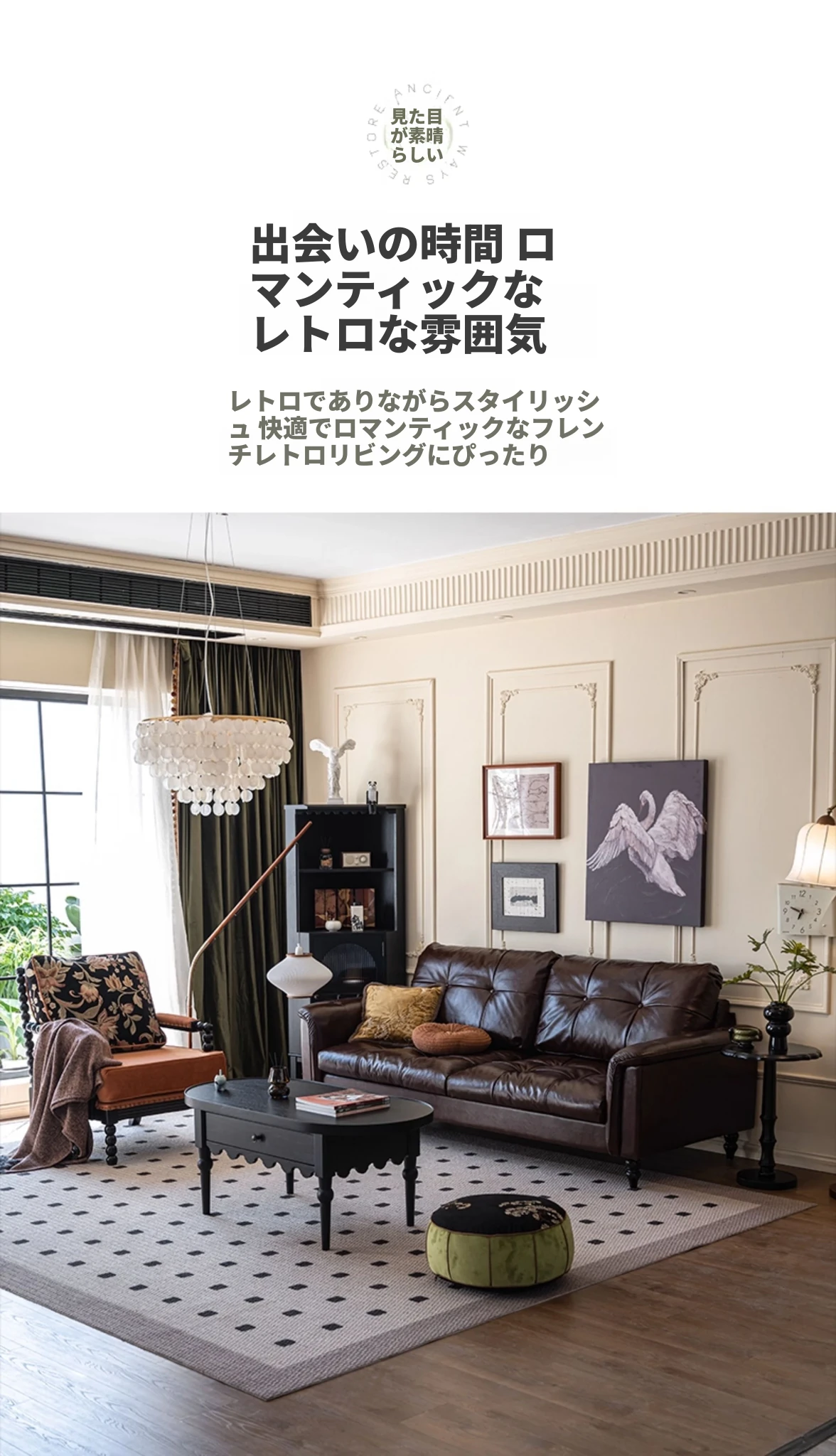 イーバオイーセン 本革 アメリカンスタイル ソファー 高級ヴィンテージデザイン 無垢材使用 牛革 リビングに最適なクラシックな直線ソファ