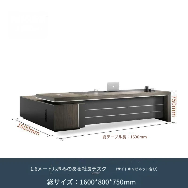 1.6メートル厚手の社長デスク+サイドキャビネット