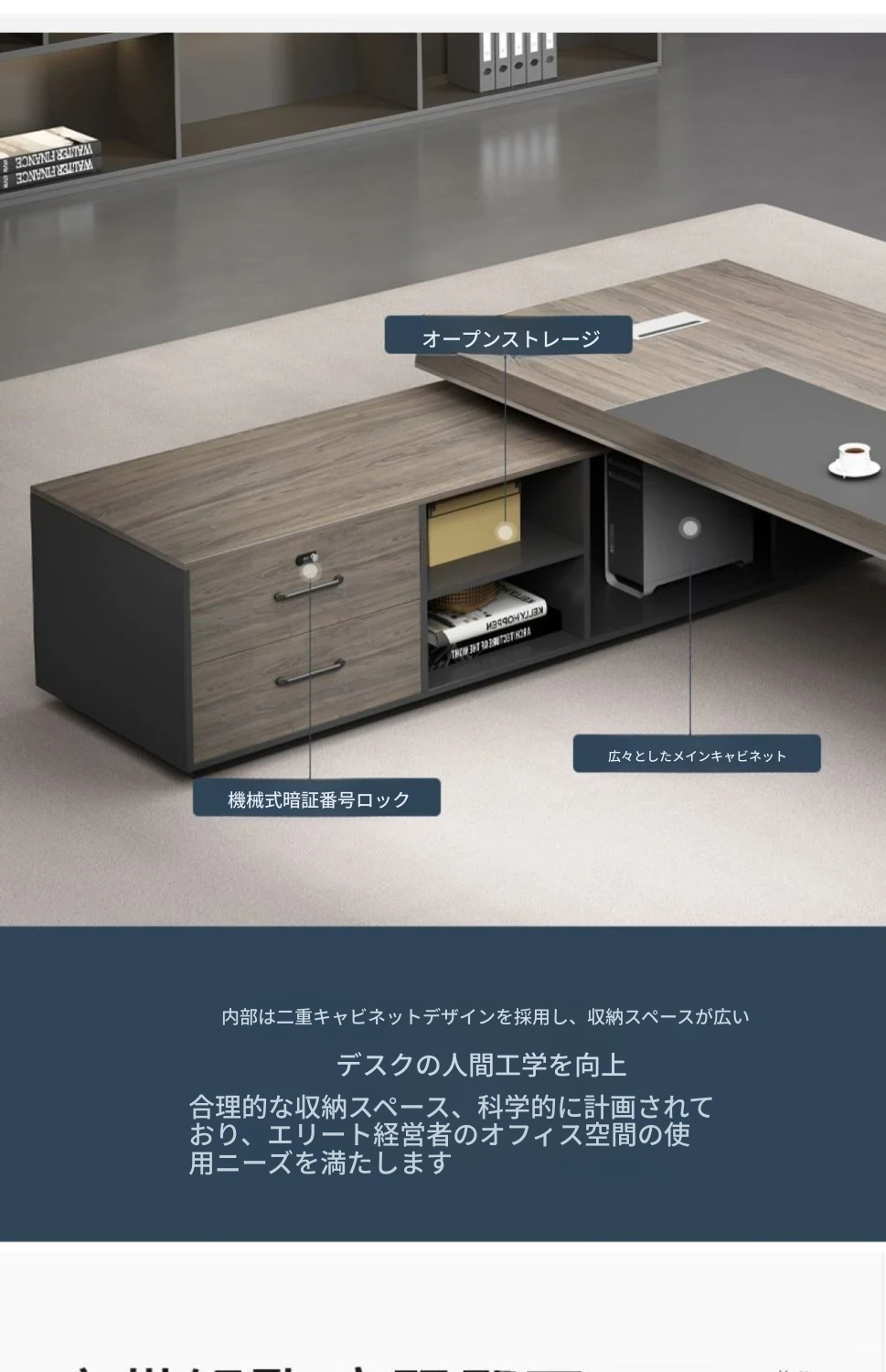1.8メートル厚手の社長デスク+サイドキャビネット