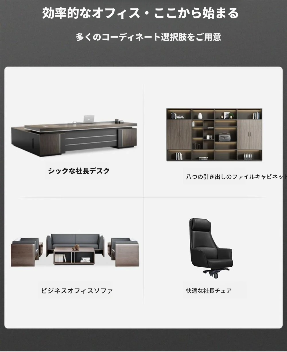 高級感溢れるオフィス用デスク&チェアセット|シンプルでモダンなデザインの社長用デスク&マネージャーデスク|快適な仕事環境を提供する高品質オフィス家具