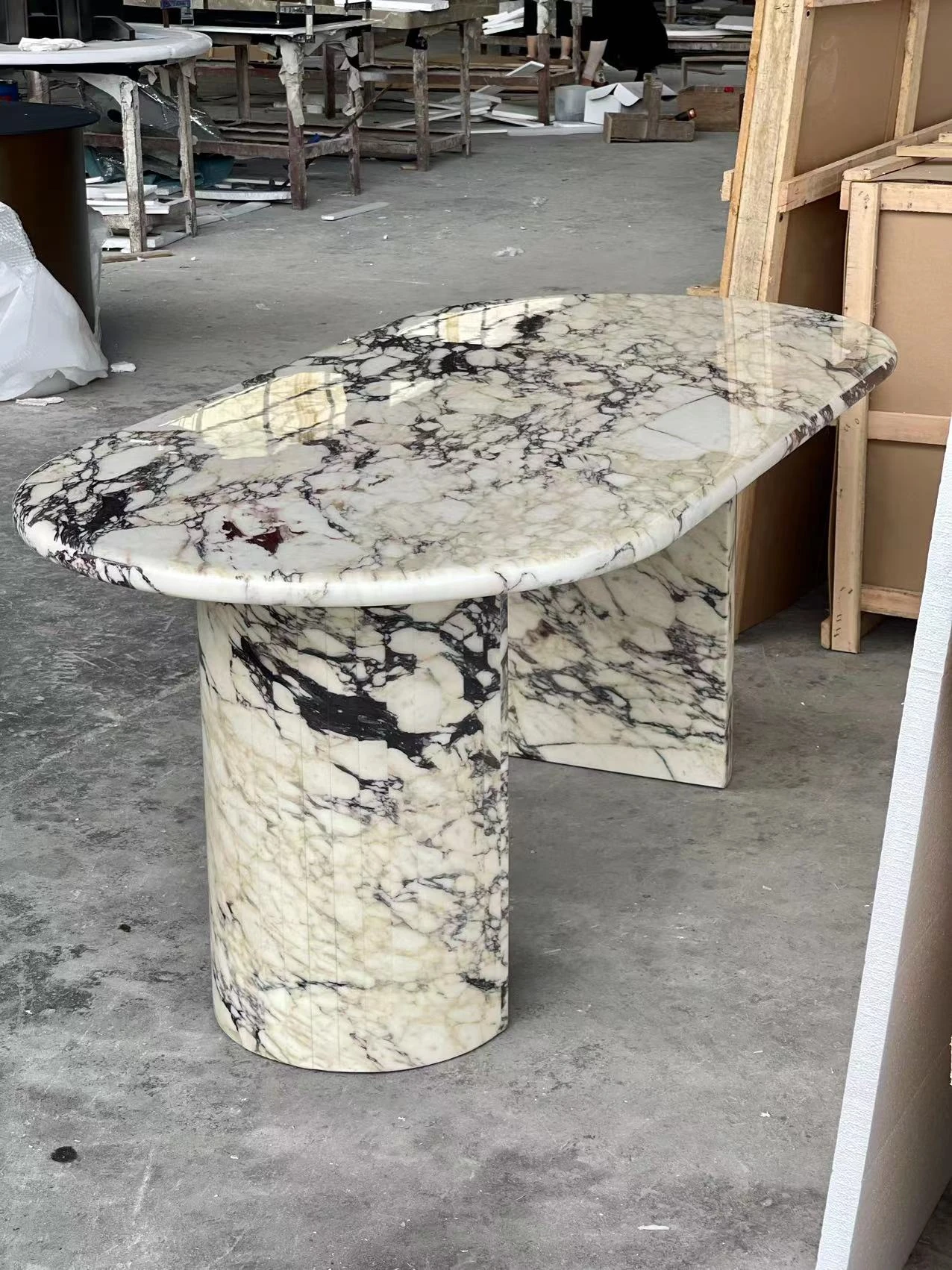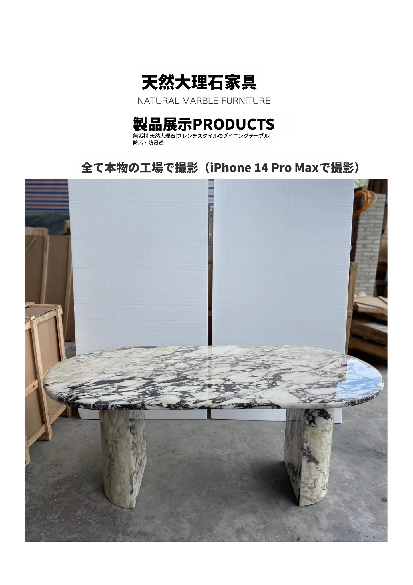 天然大理石使用のブルガリ風フレンチオーバル全石ダイニングテーブル - 優雅に生活の質を表現する一品!