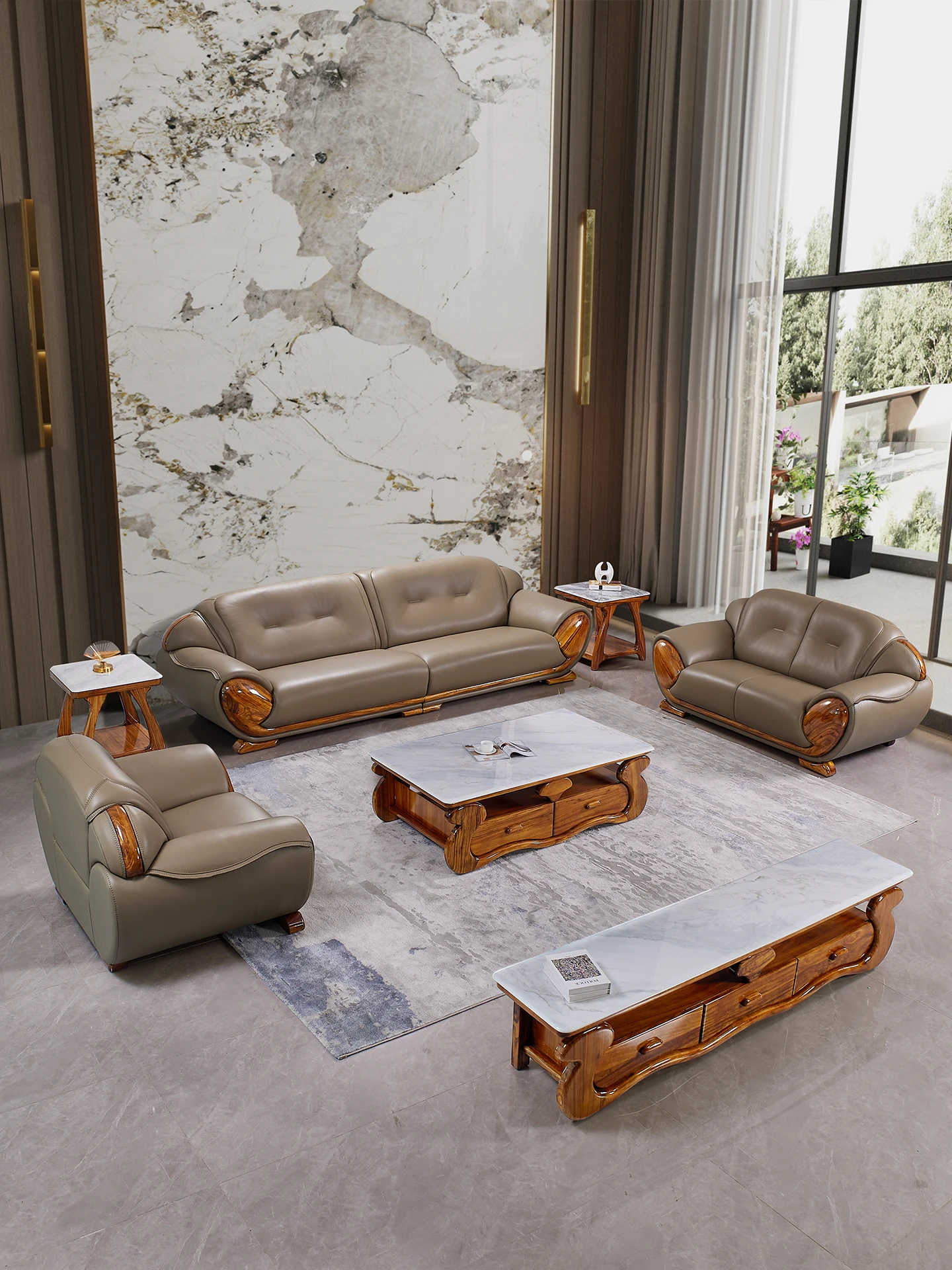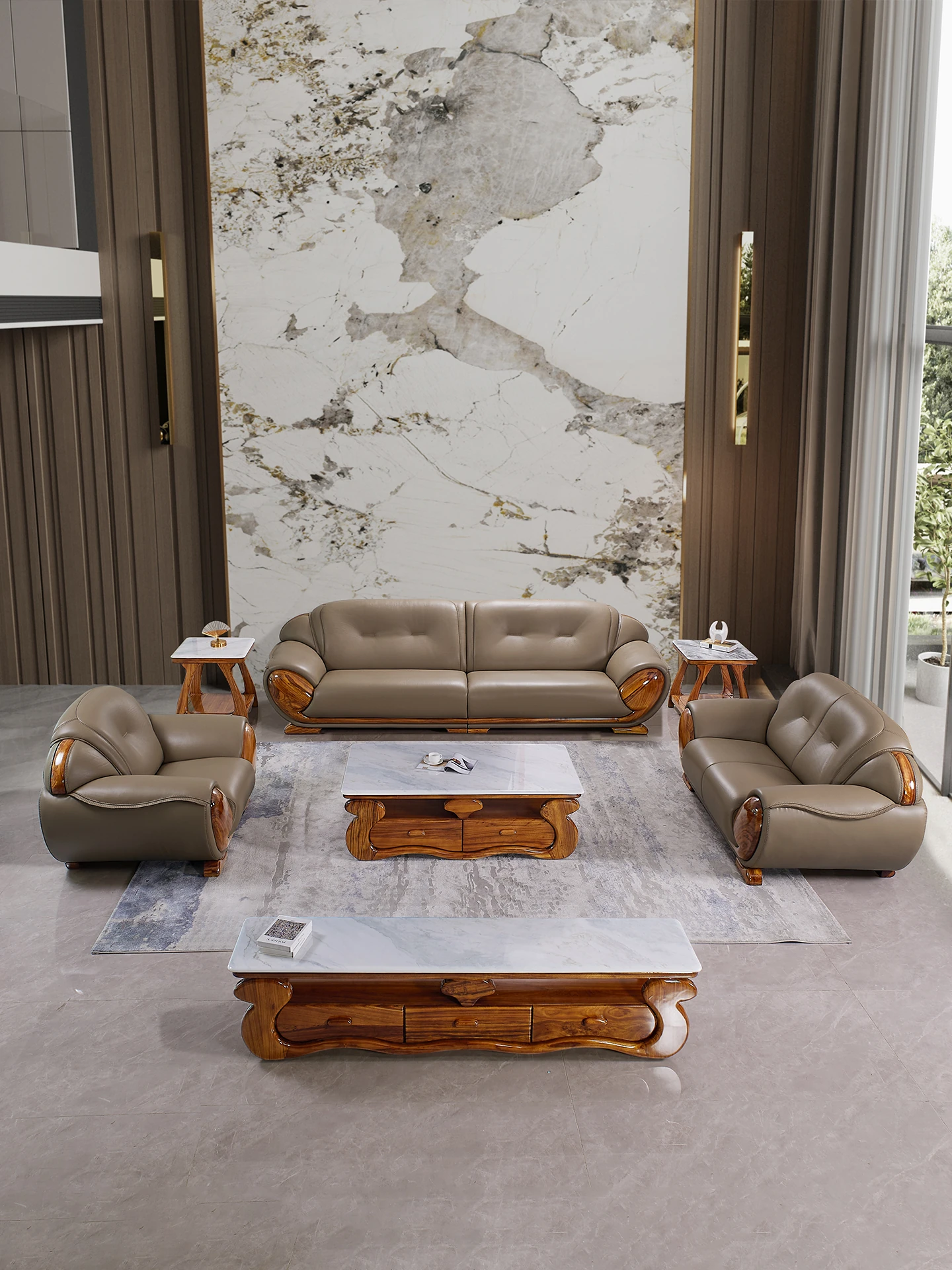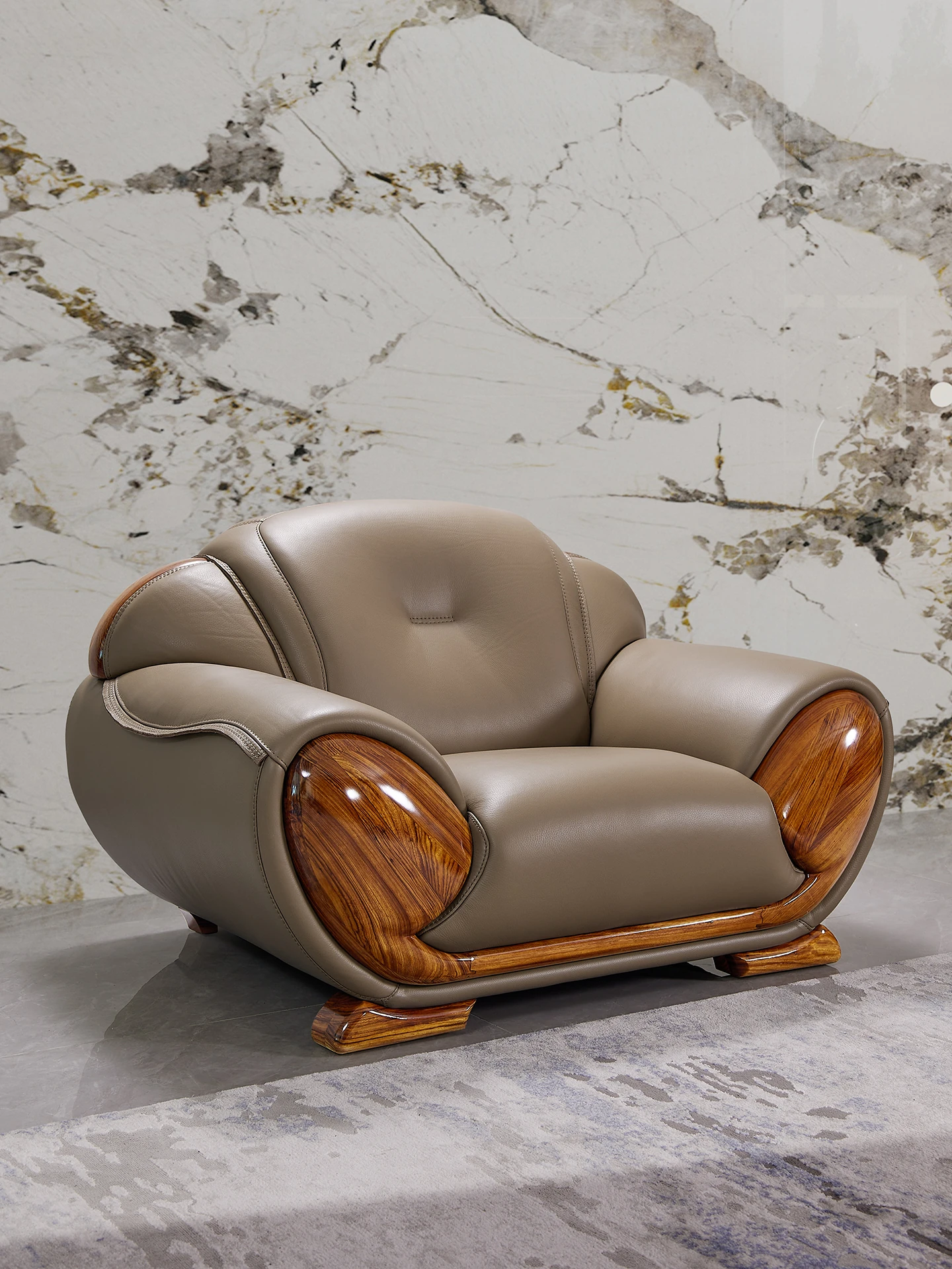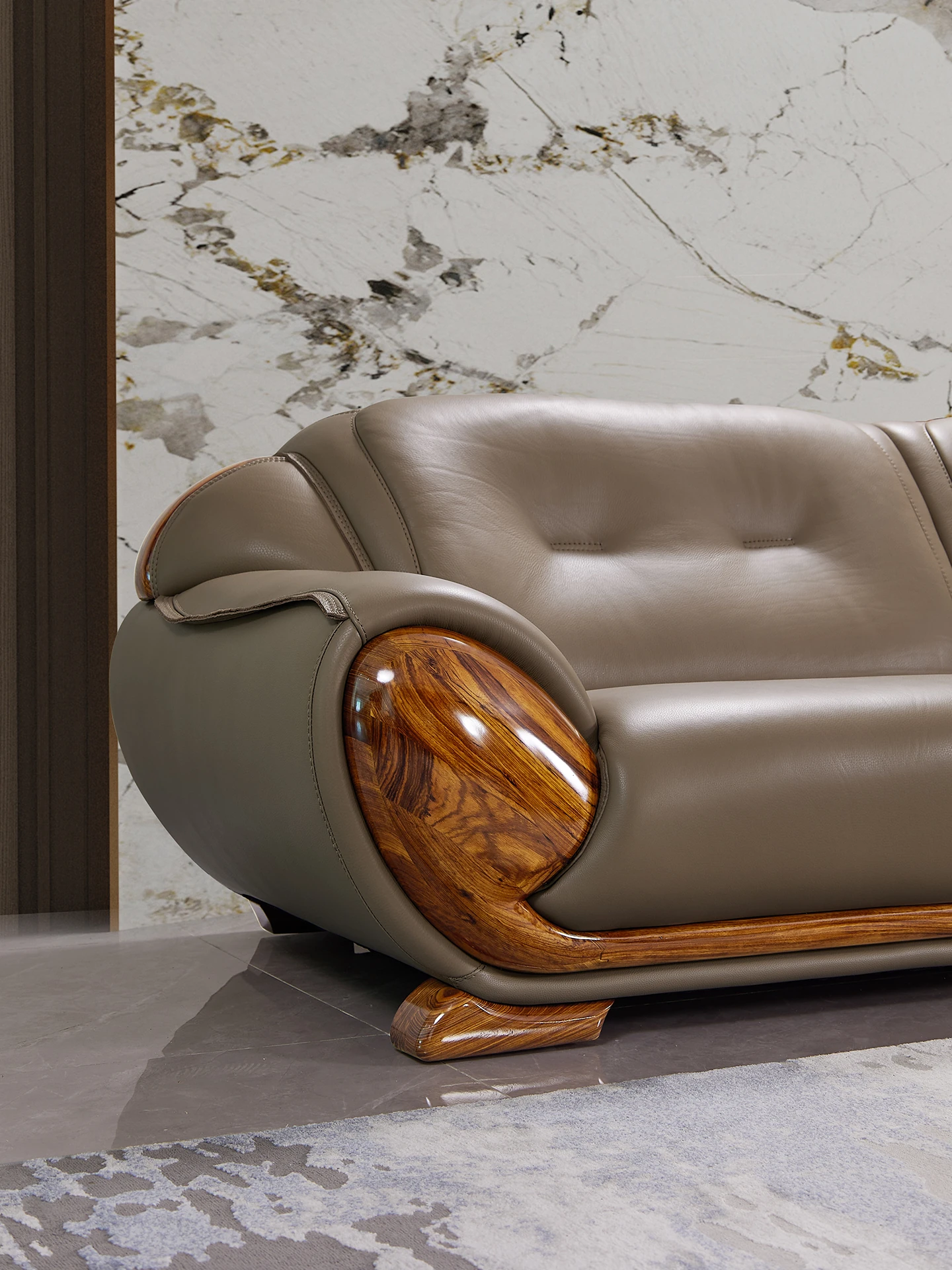 新中式ウッディウッド青皮ソファー 欧風高級実木別荘リビングルームに最適なシンプルで洗練されたデザイン 佛山メーカー家具