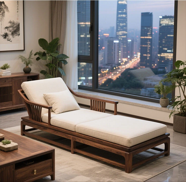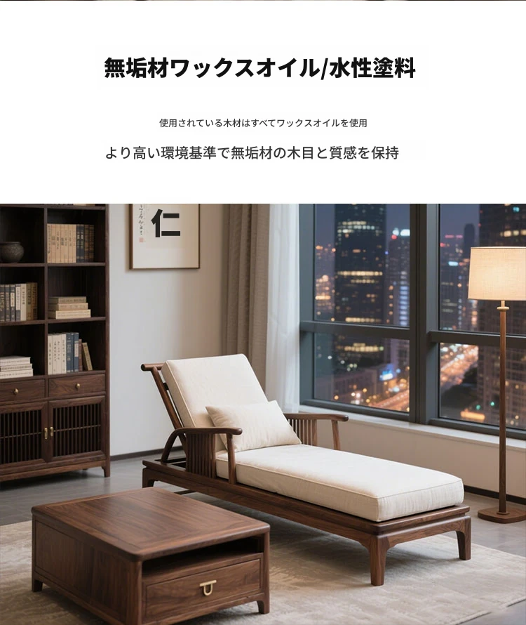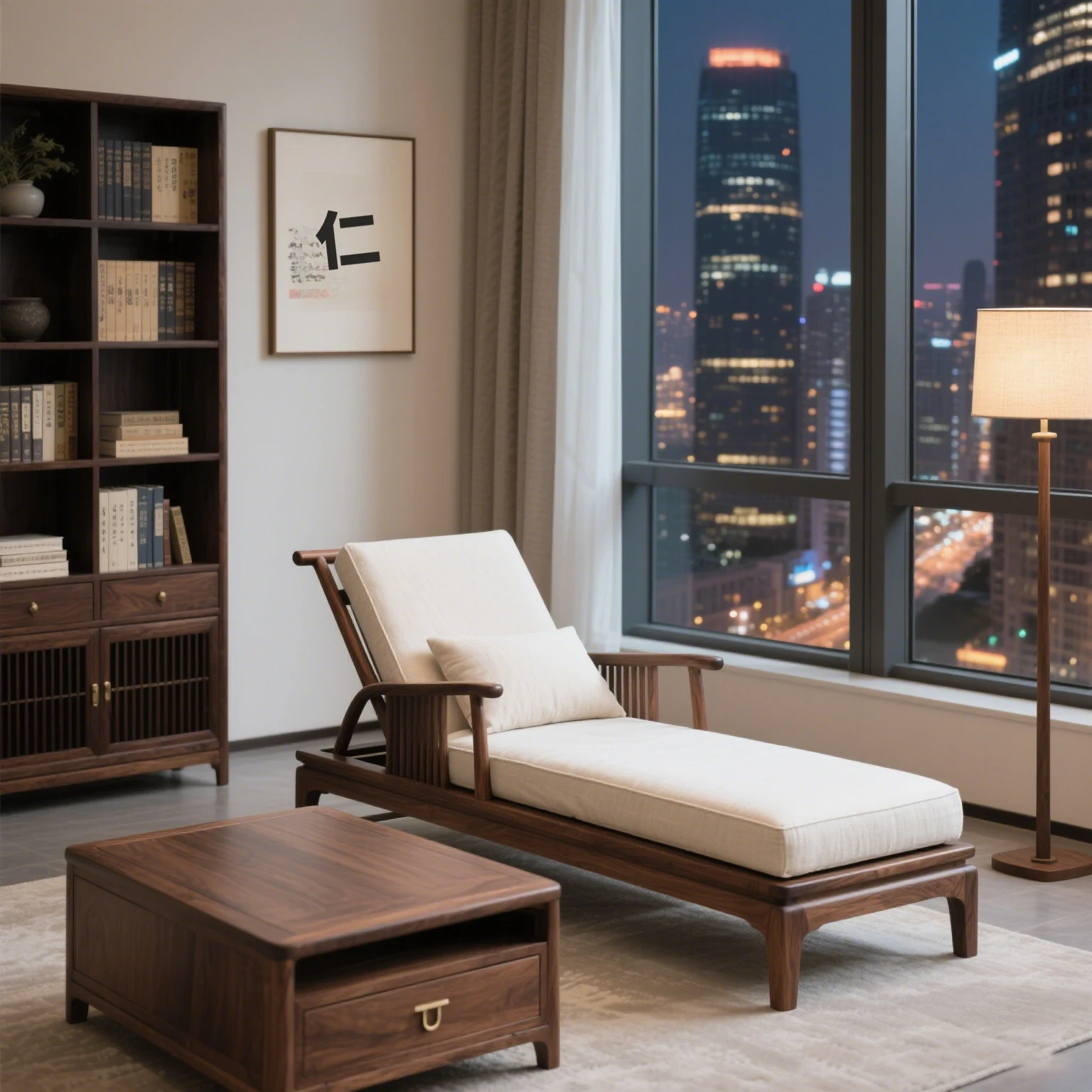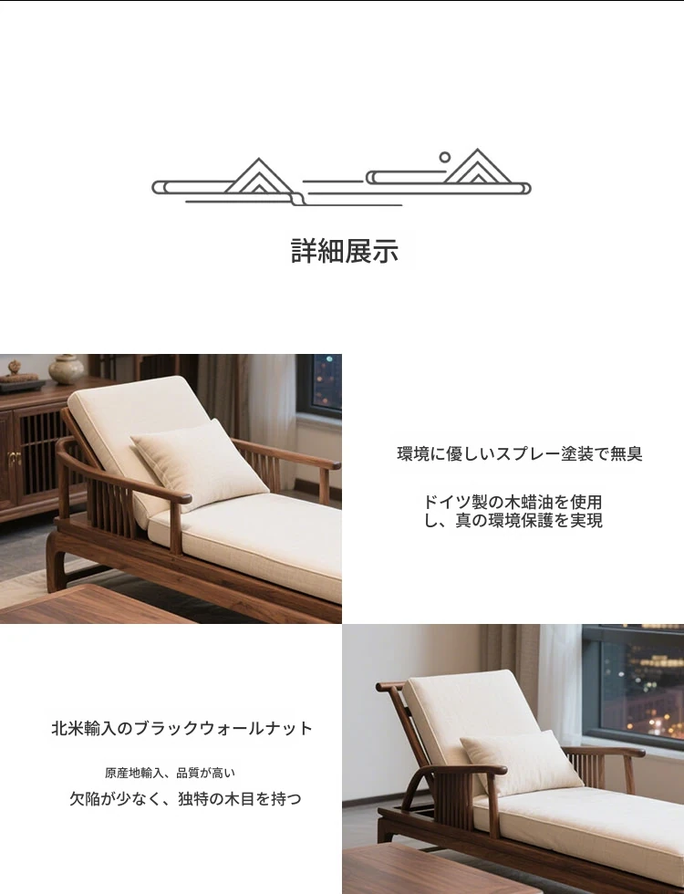 新中式のブラックウォールナット無垢材リクライニングチェア - バルコニーやリビングに最適な優雅なデザイン!オフィスでも使用可能な座り心地抜群のチェア。リラックスしたい時にぴったりの一品です。