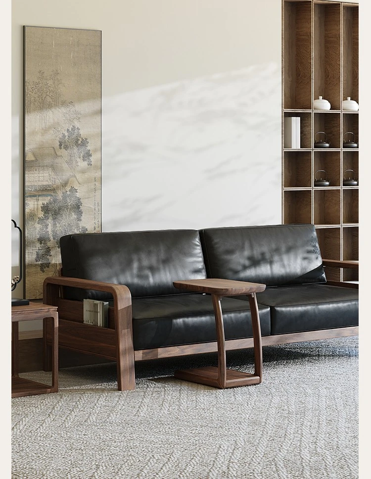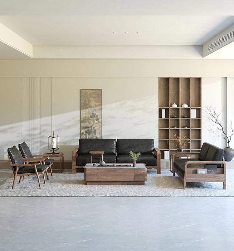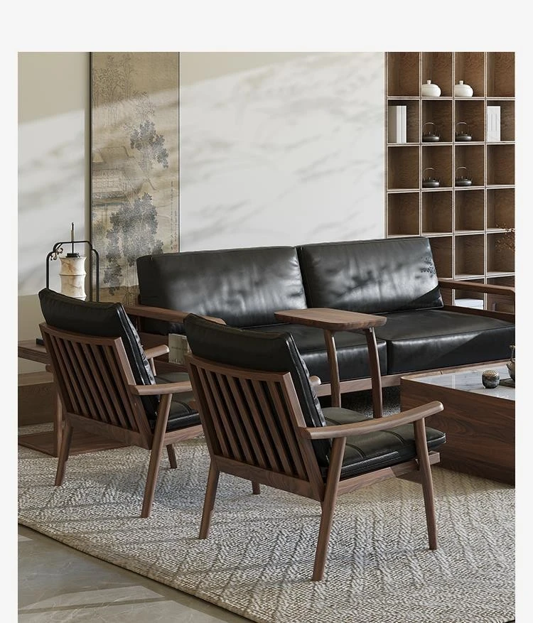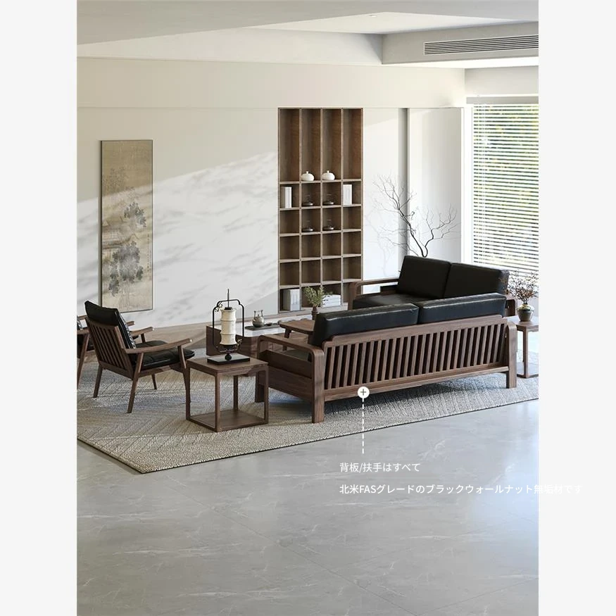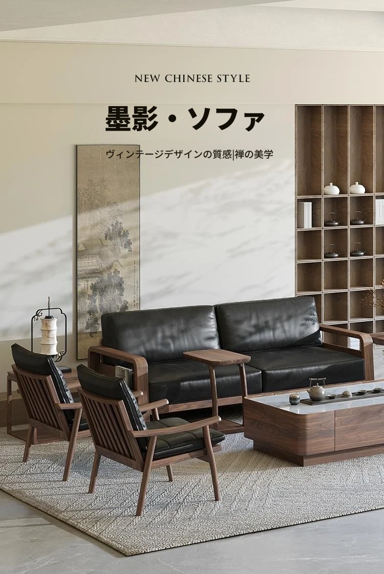 新中式デザイン全案!シンプルでモダンな実木製ソファ - 大黒牛を使用したラグジュアリーな北米産ブラックウォールナット製、別荘にぴったりの上質なアイテム!