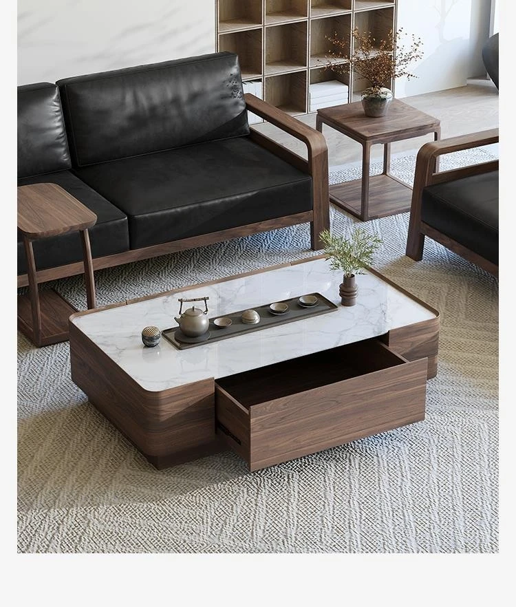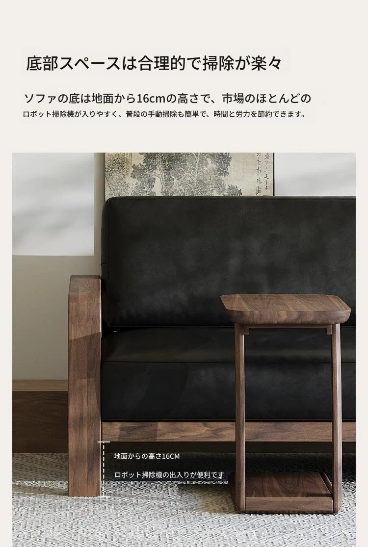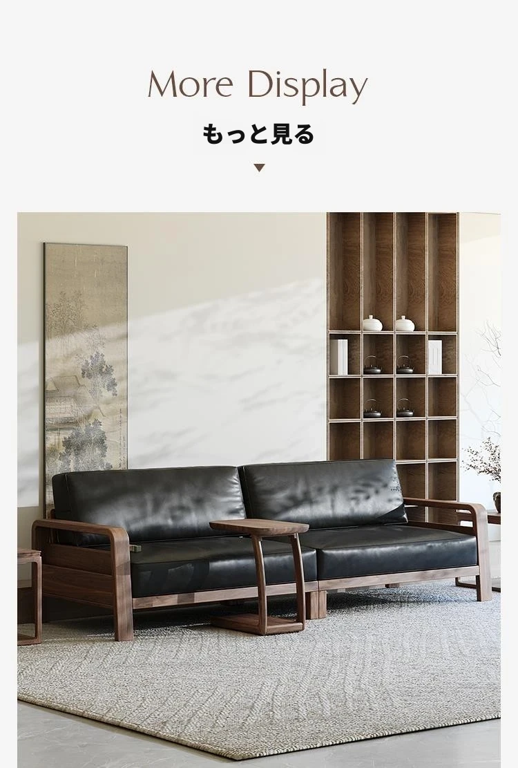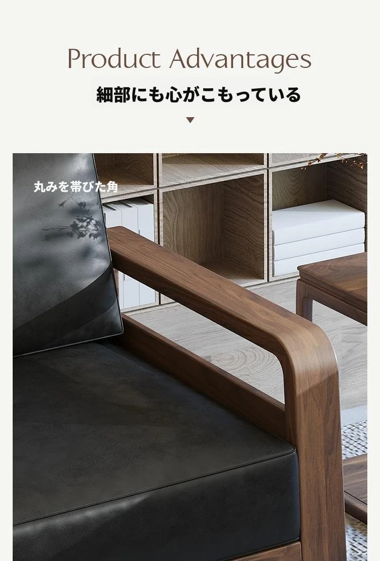 新中式デザイン全案!シンプルでモダンな実木製ソファ - 大黒牛を使用したラグジュアリーな北米産ブラックウォールナット製、別荘にぴったりの上質なアイテム!