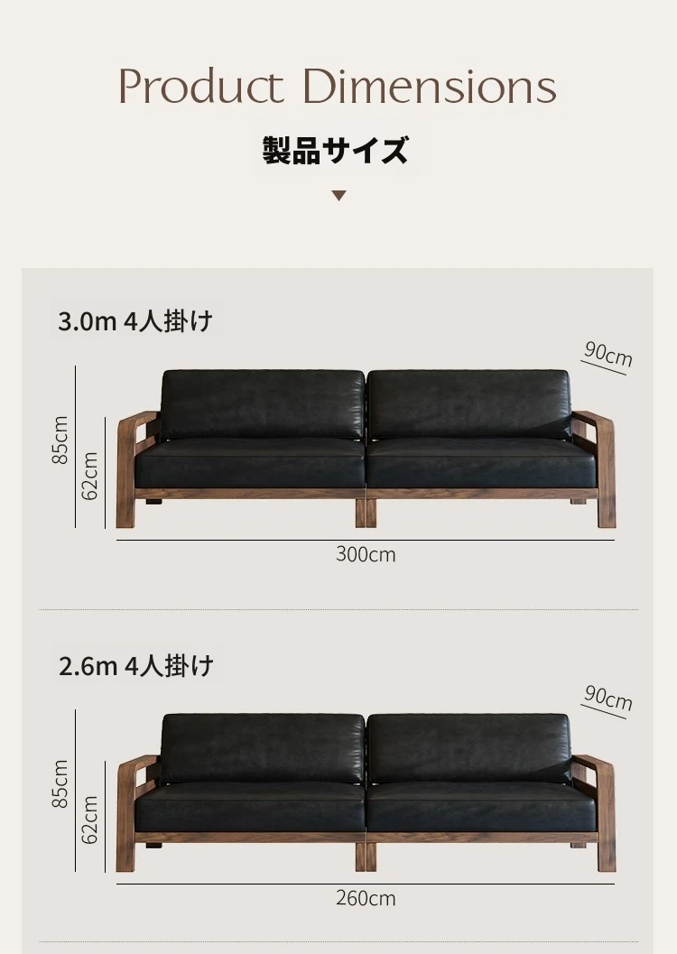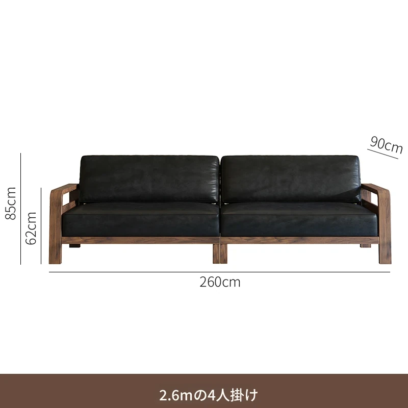 【北米ブラックウォールナット】2.6mフォースソファ 本革