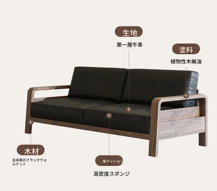 【北米ブラックウォールナット】3.0mフォースソファ 本革
