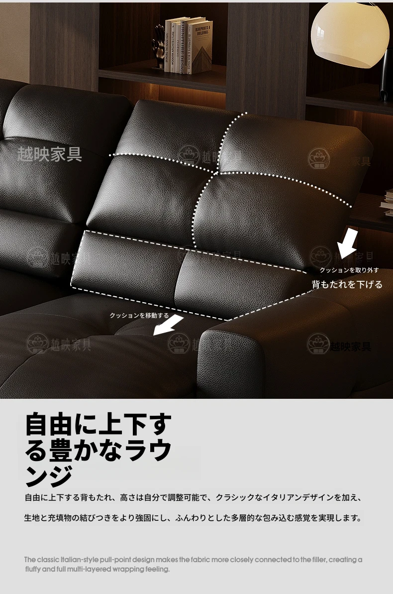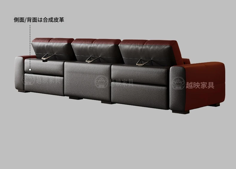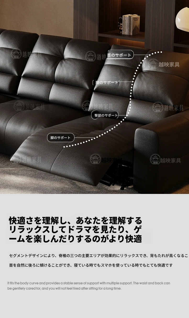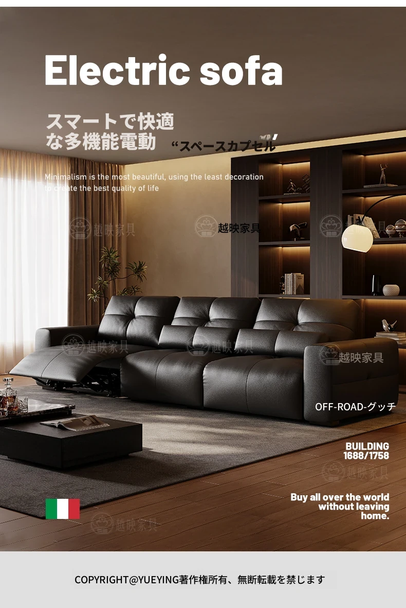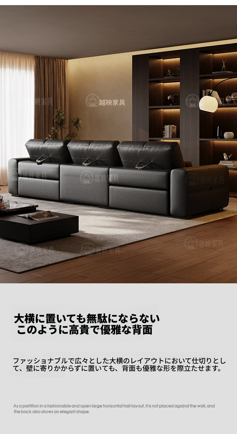 越映古池電動機能ソファ - イタリアンミニマルデザイン、ハイバック、半皮・フルレザー、広々としたラグジュアリーな平屋別荘に最適!快適な座り心地で、上質なリラックスタイムをお楽しみください。