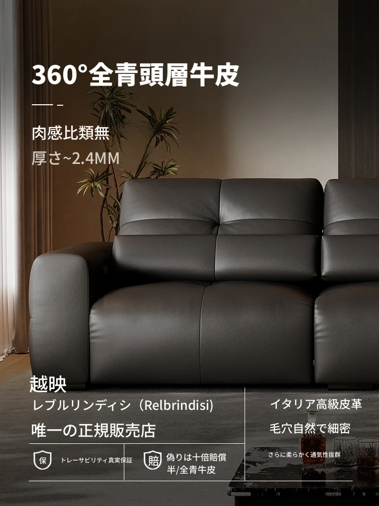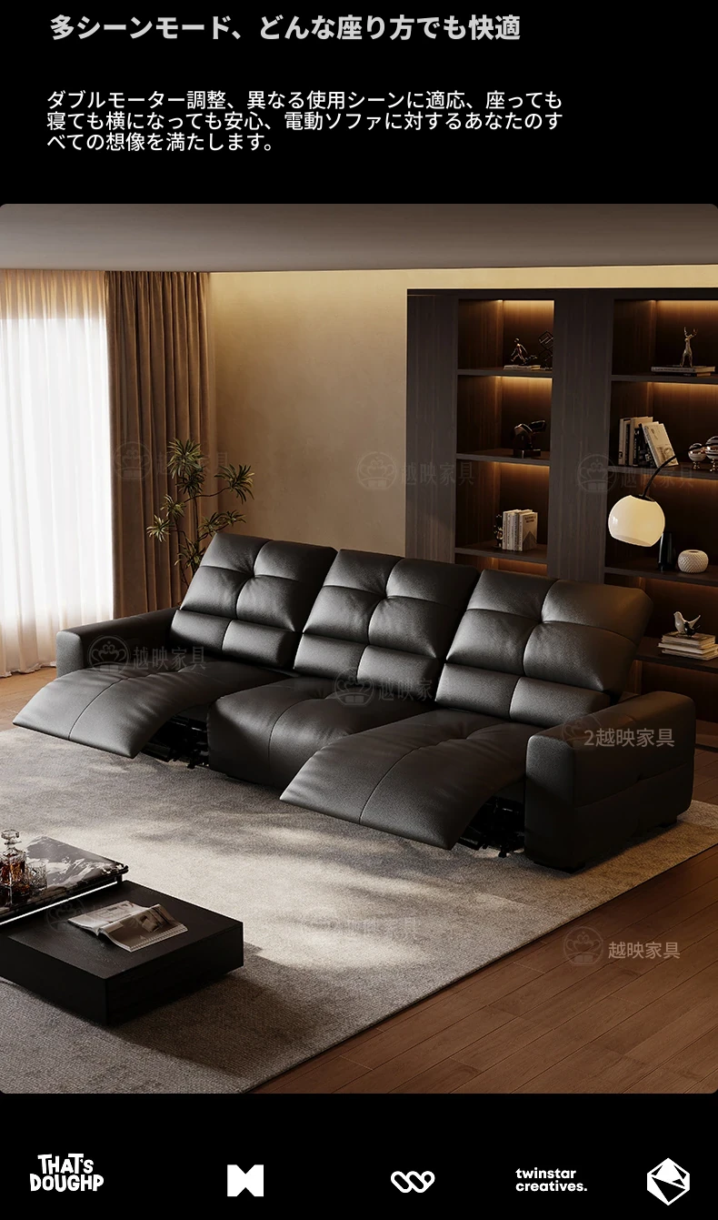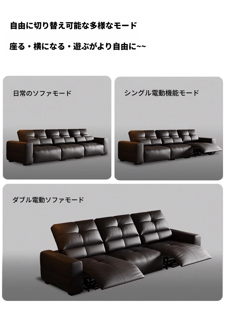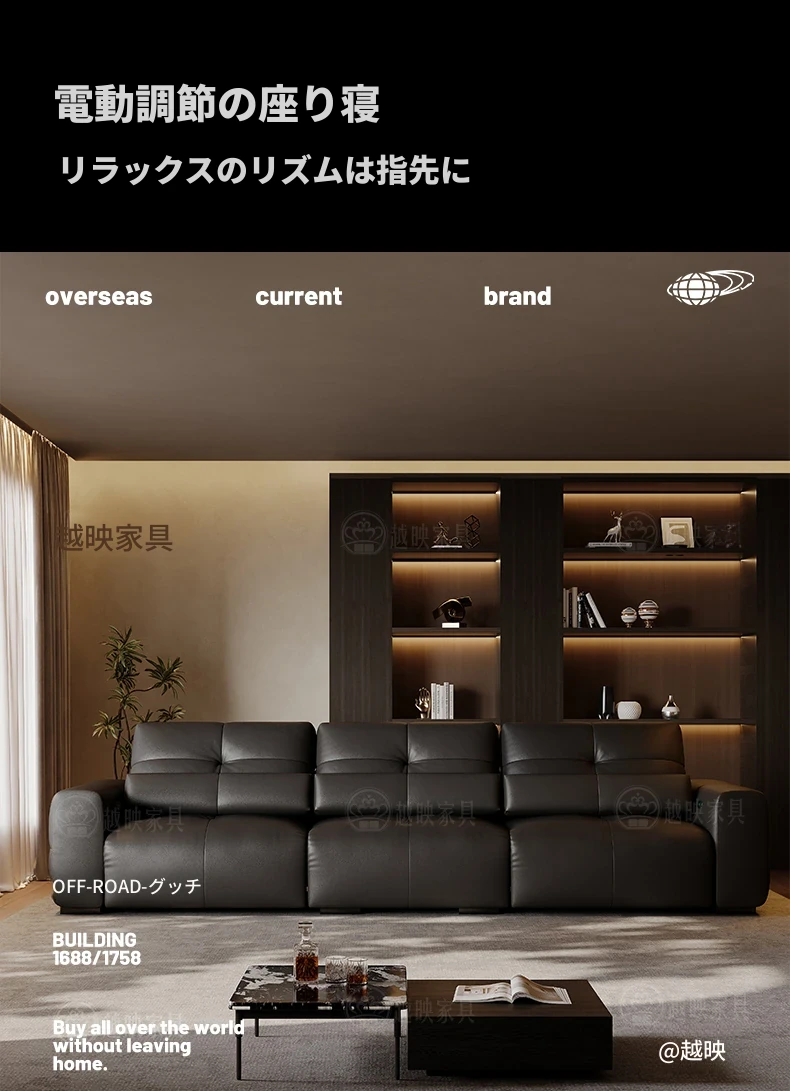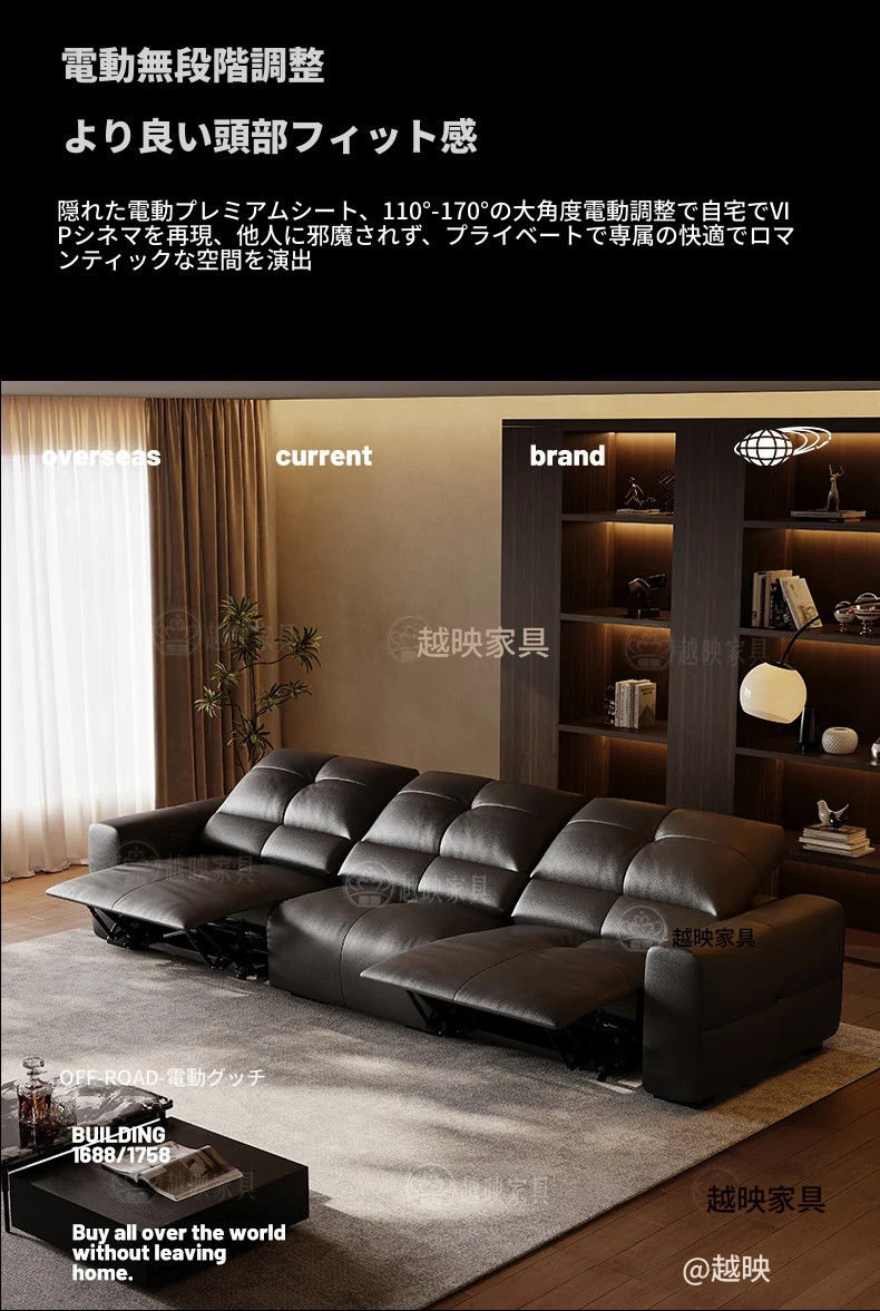 越映古池電動機能ソファ - イタリアンミニマルデザイン、ハイバック、半皮・フルレザー、広々としたラグジュアリーな平屋別荘に最適!快適な座り心地で、上質なリラックスタイムをお楽しみください。