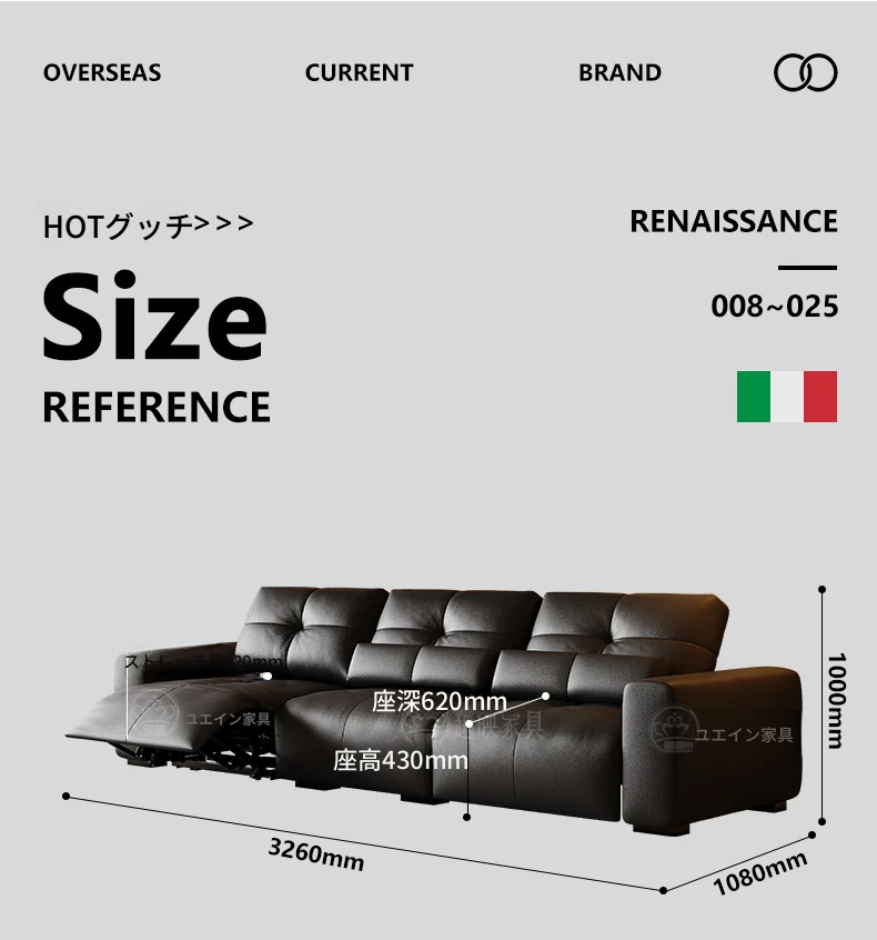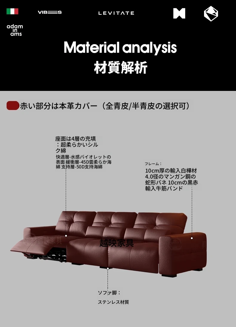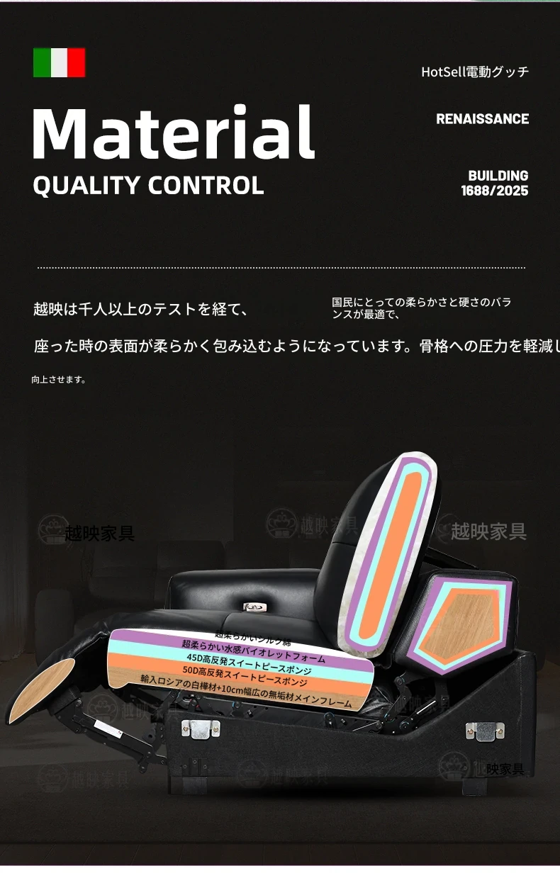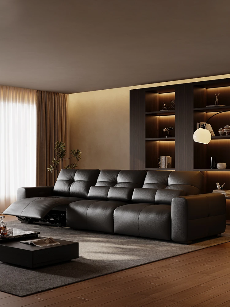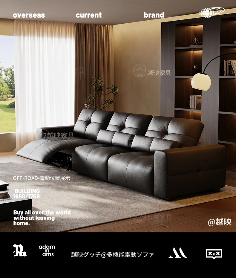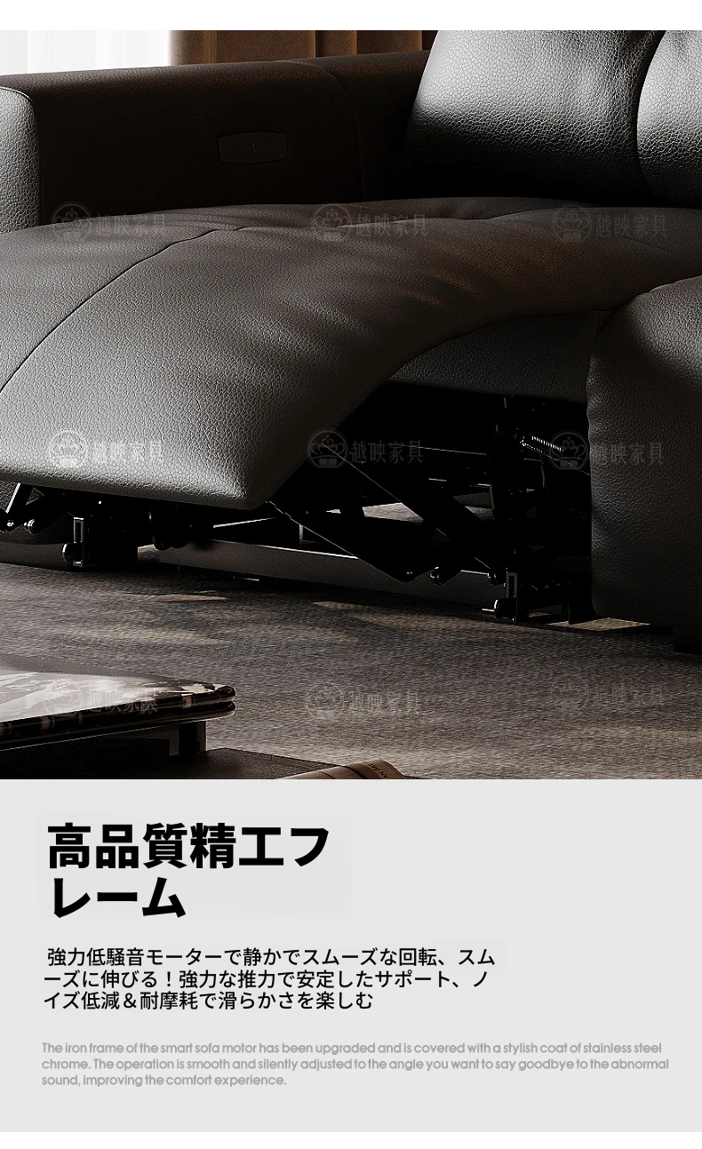 越映古池電動機能ソファ - イタリアンミニマルデザイン、ハイバック、半皮・フルレザー、広々としたラグジュアリーな平屋別荘に最適!快適な座り心地で、上質なリラックスタイムをお楽しみください。