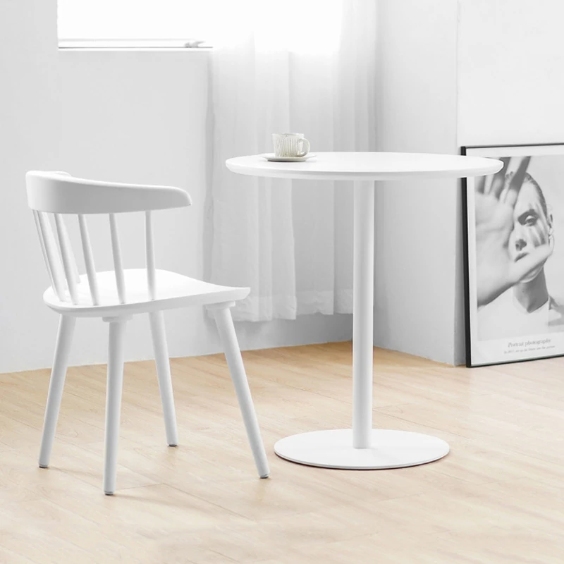 シンプルでスタイリッシュな円形テーブル|カフェやティールームに最適なホワイトのリラックスデザイン|コンパクトサイズでバルコニーや小スペースにもぴったり!商談や休憩に最適なテーブルセット。