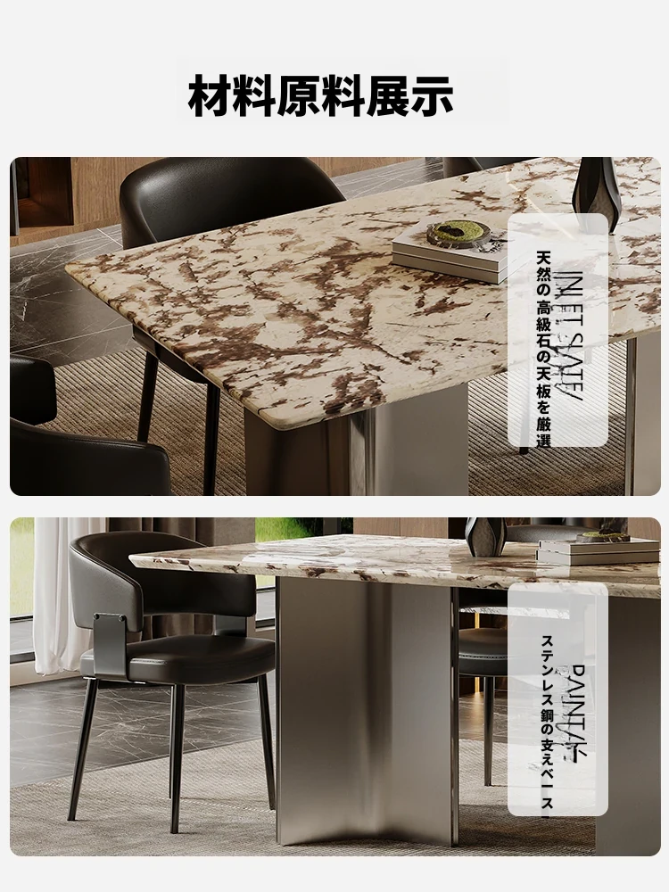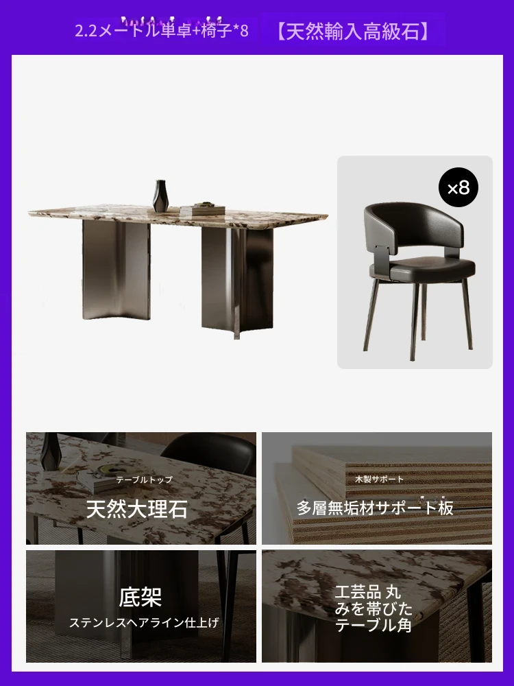 【36mm雪山飛狐大理石】2.2メートルダイニングテーブル+8椅子