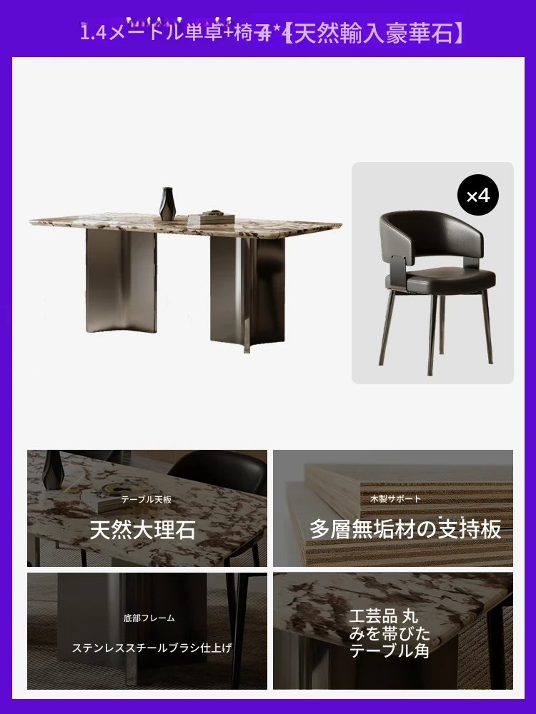 【36mm雪山飛狐大理石】1.4メートル単テーブル+4椅子