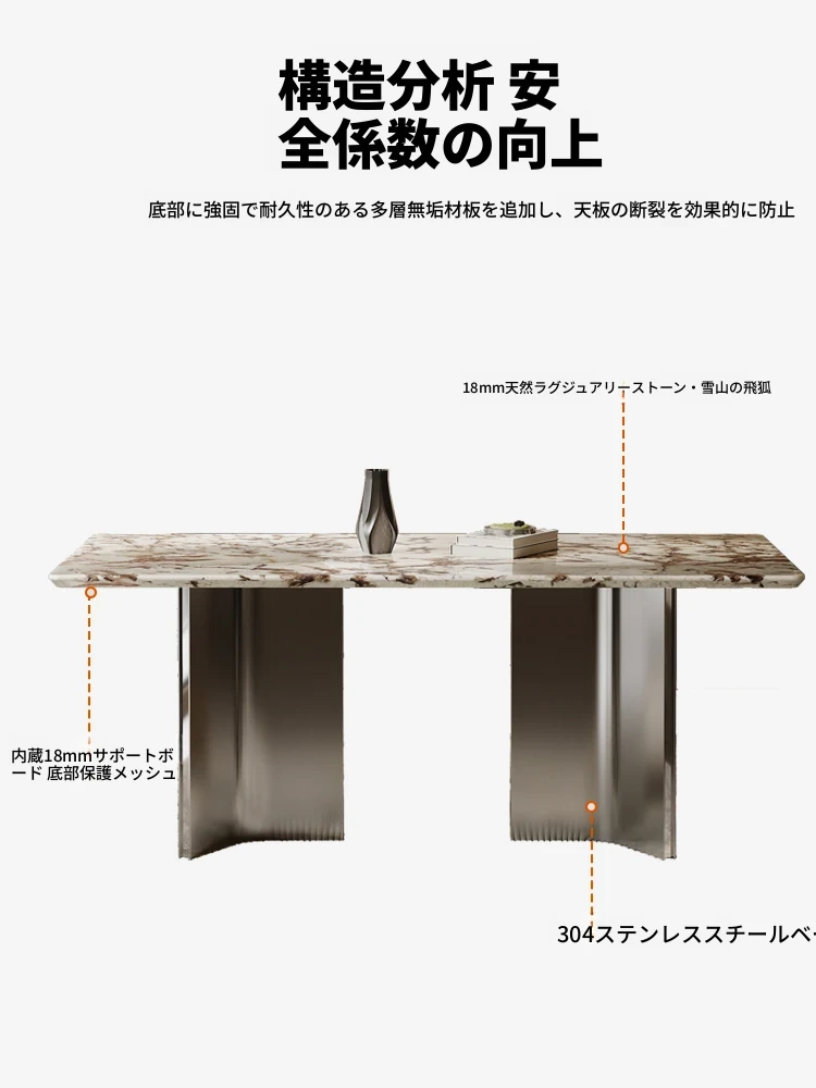 【36mm雪山飛狐大理石】1.8メートルダイニングテーブル