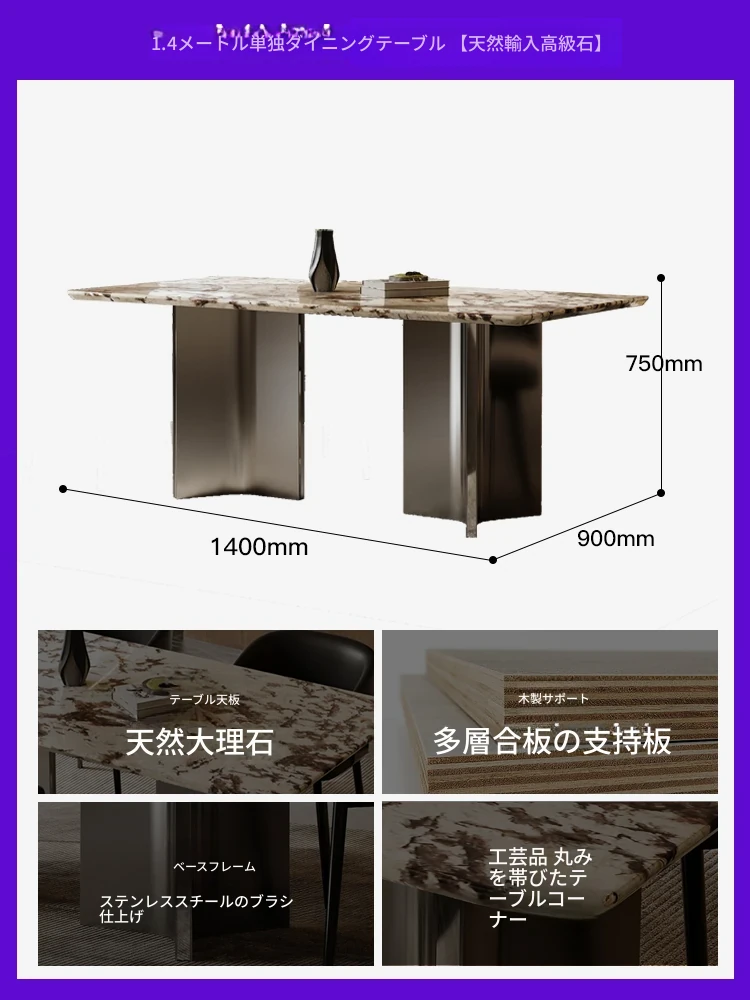 【36mm雪山飛狐大理石】1.4メートルダイニングテーブル