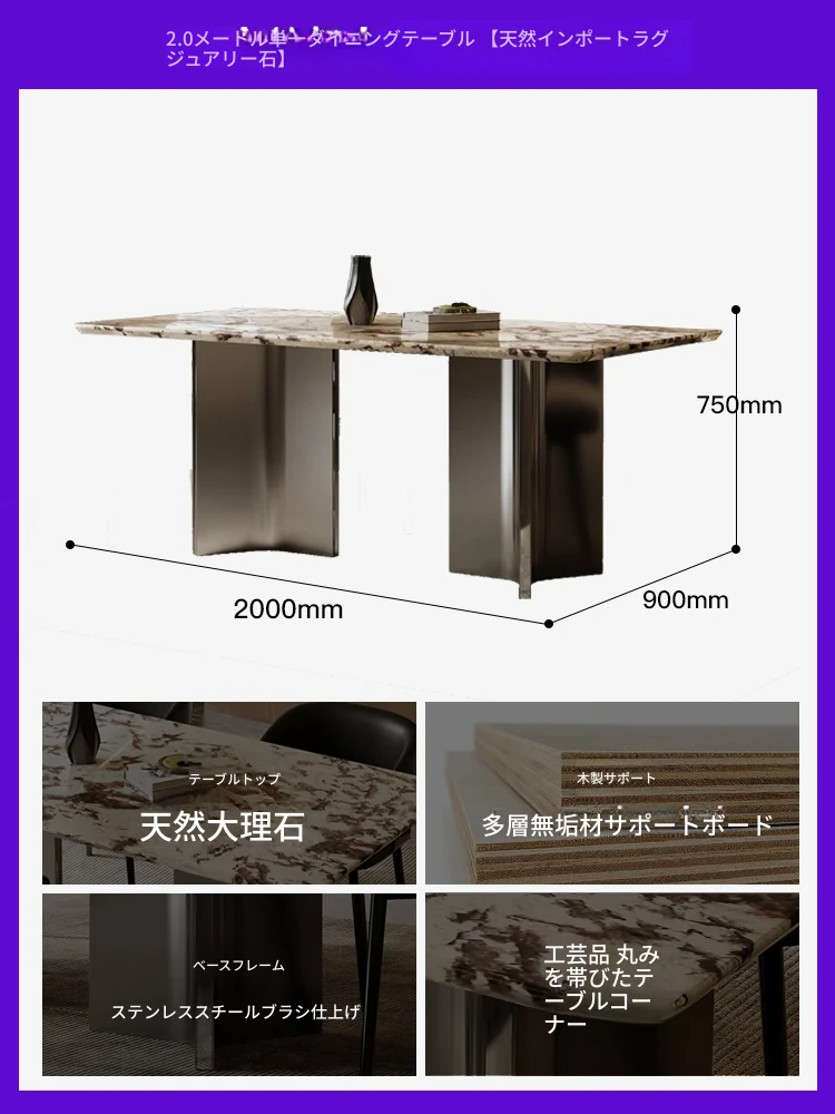 【36mm雪山飛狐大理石】2.0メートルダイニングテーブル